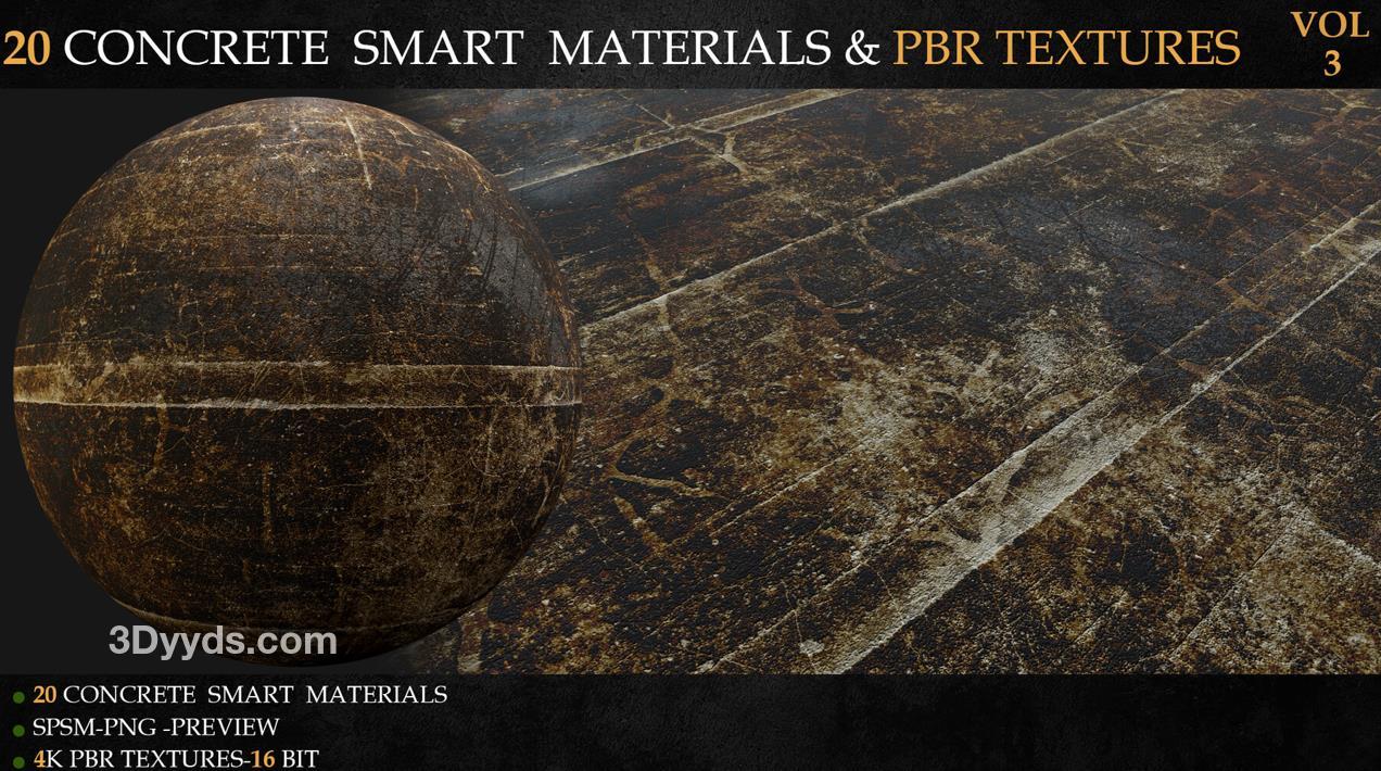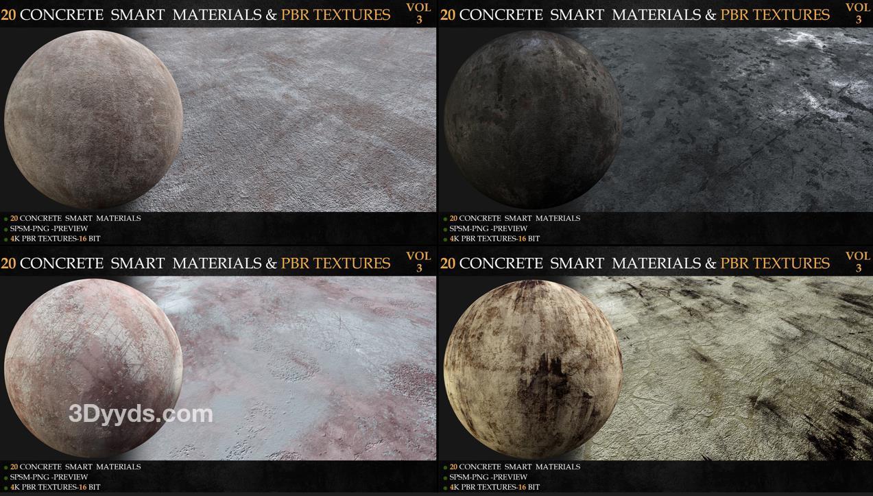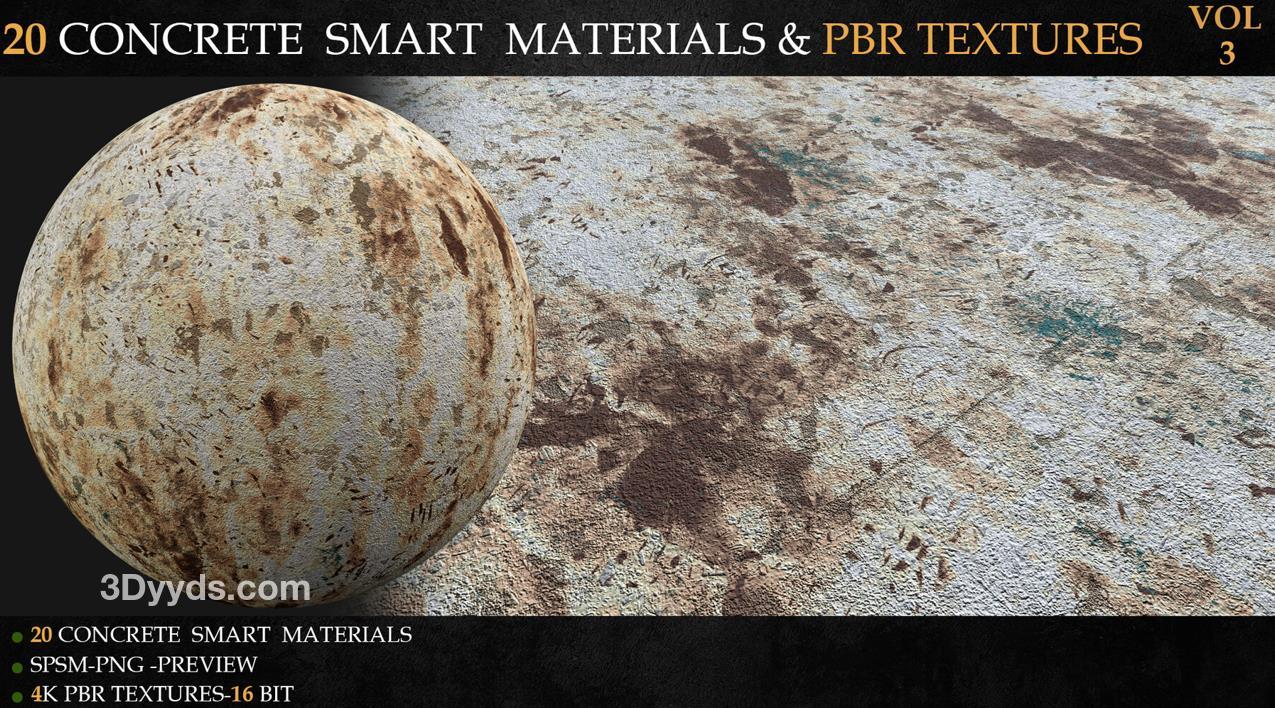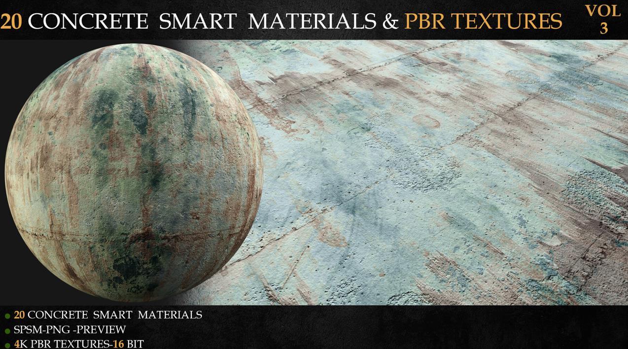 该产品包括 20 种用于物质油漆工的高细节混凝土智能材料