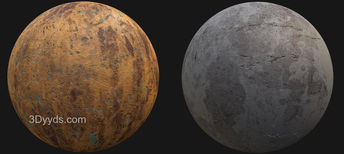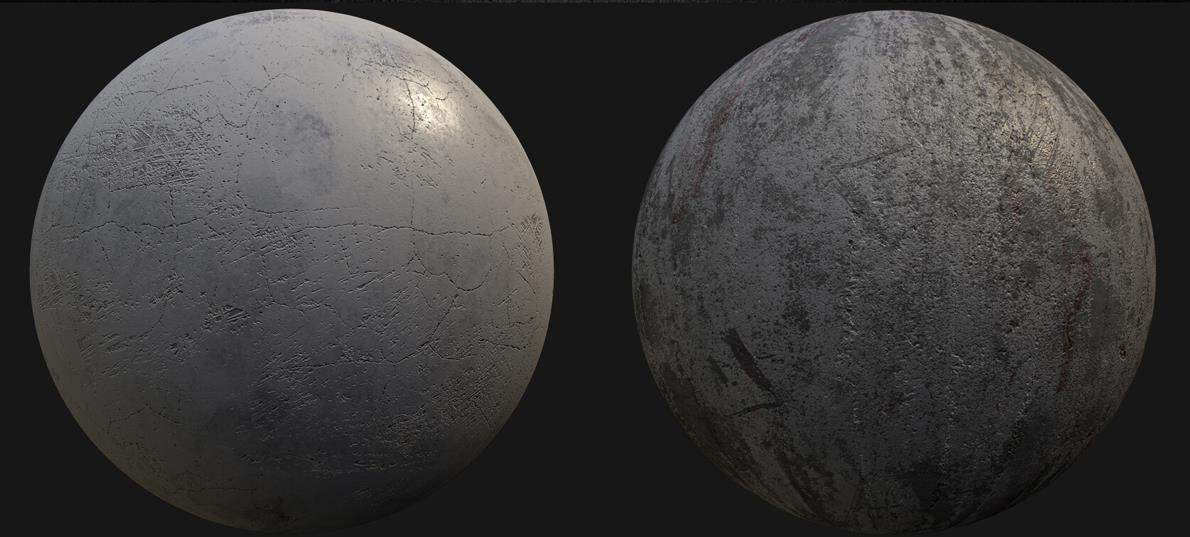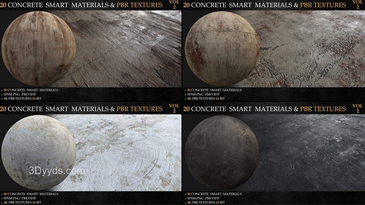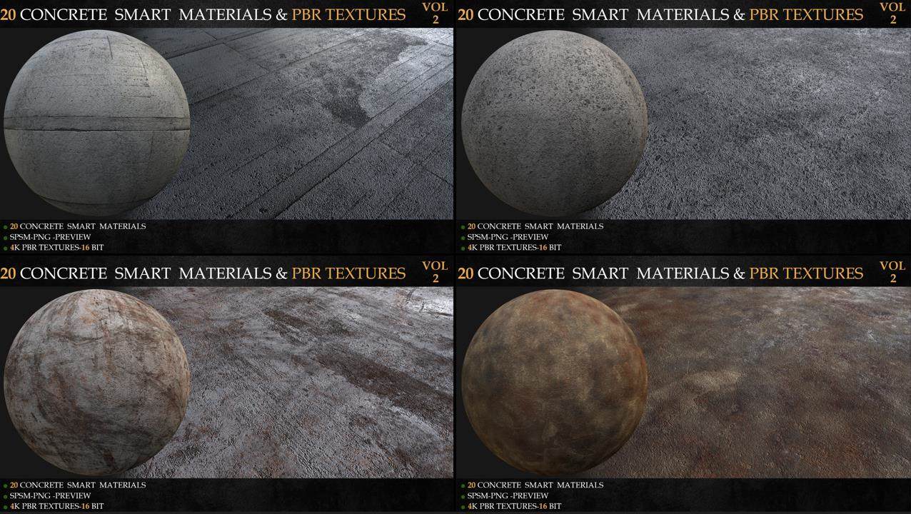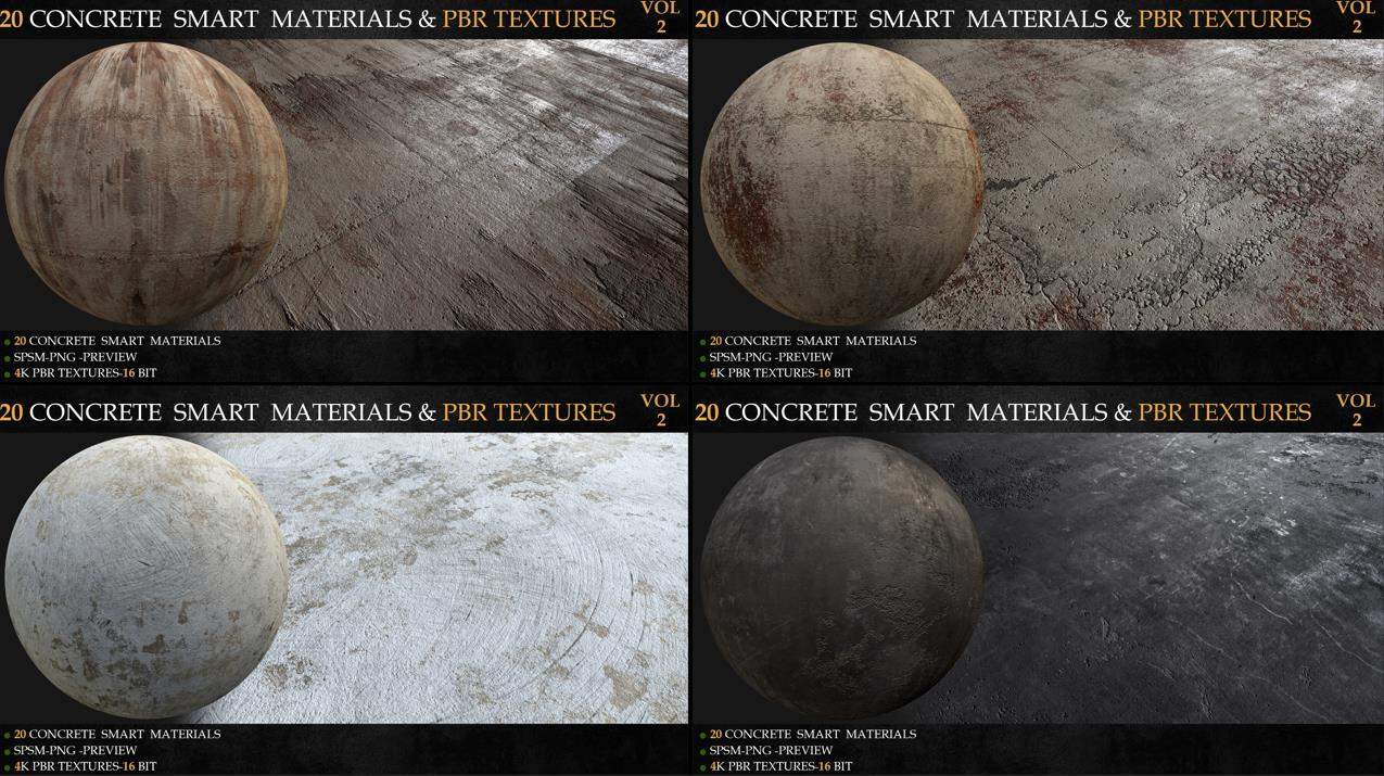 该产品包括 20 种用于物质油漆工的高细节混凝土智能材料