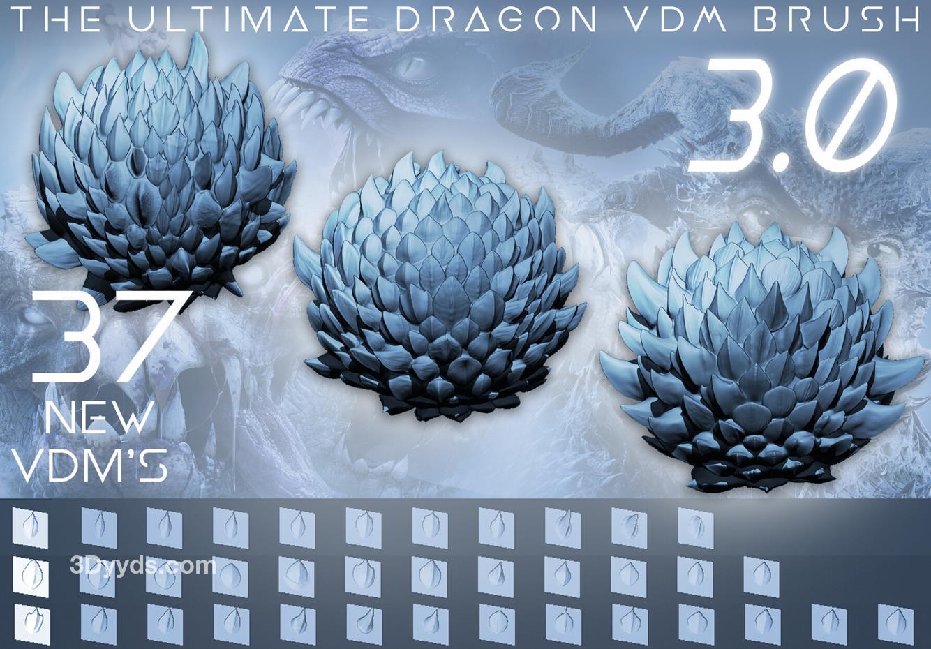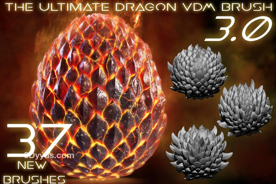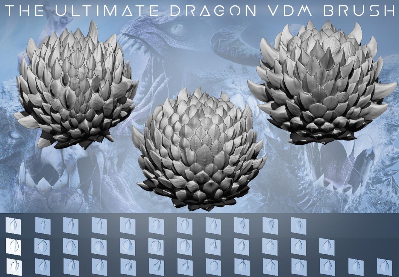 仅适用于 2018 或更高版本的 Zbrush。这是我可用的第 3 个龙鳞刷,也是最强大的:包括 37 种不同的 VDM。这就是我在我的许多生物身上创造鳞片的方式