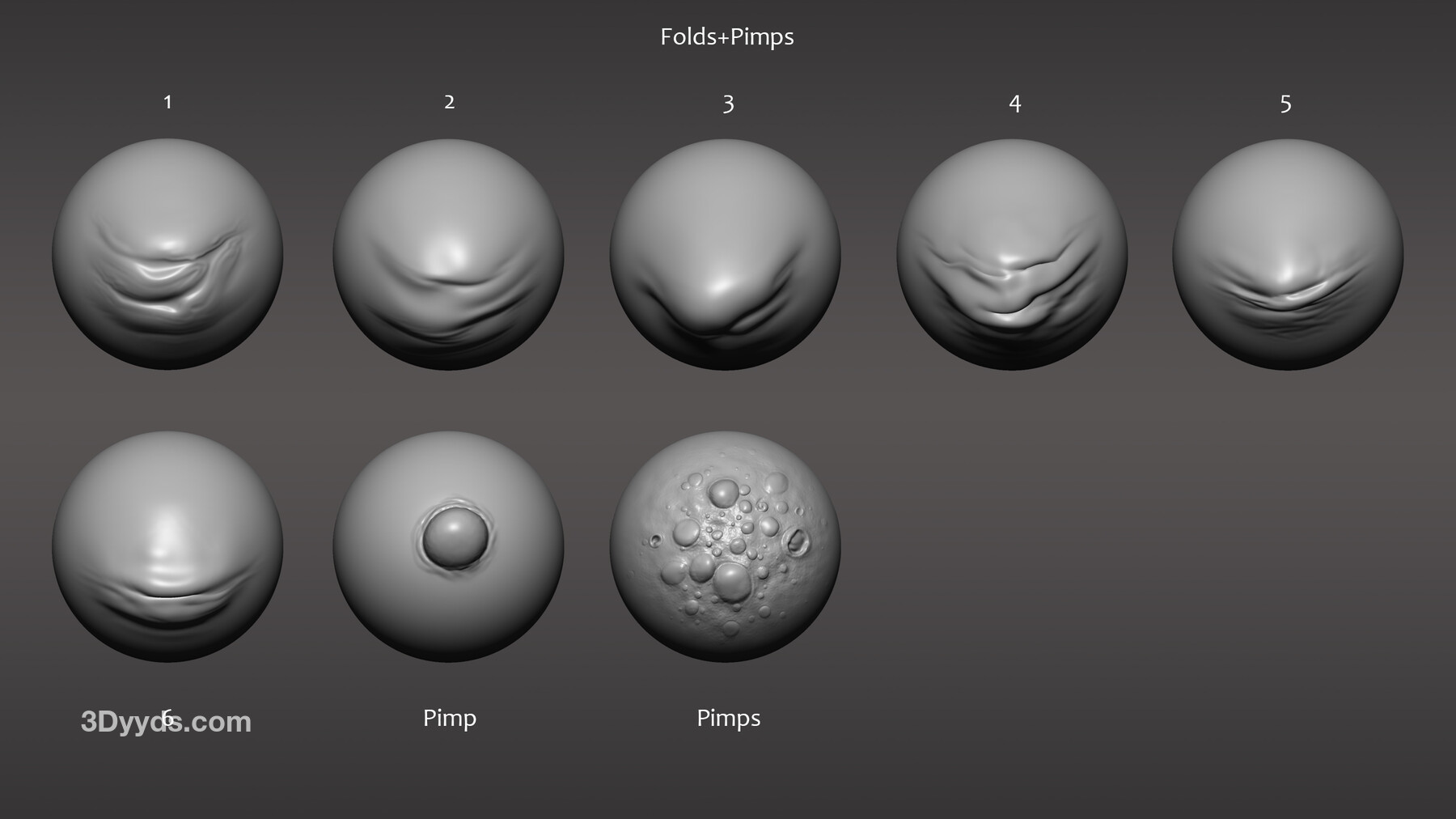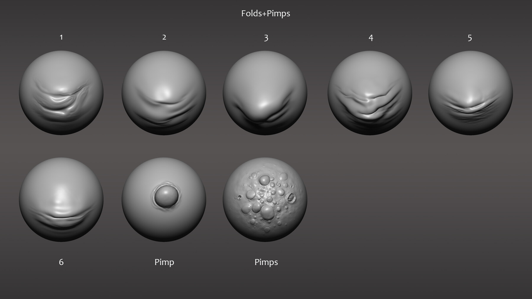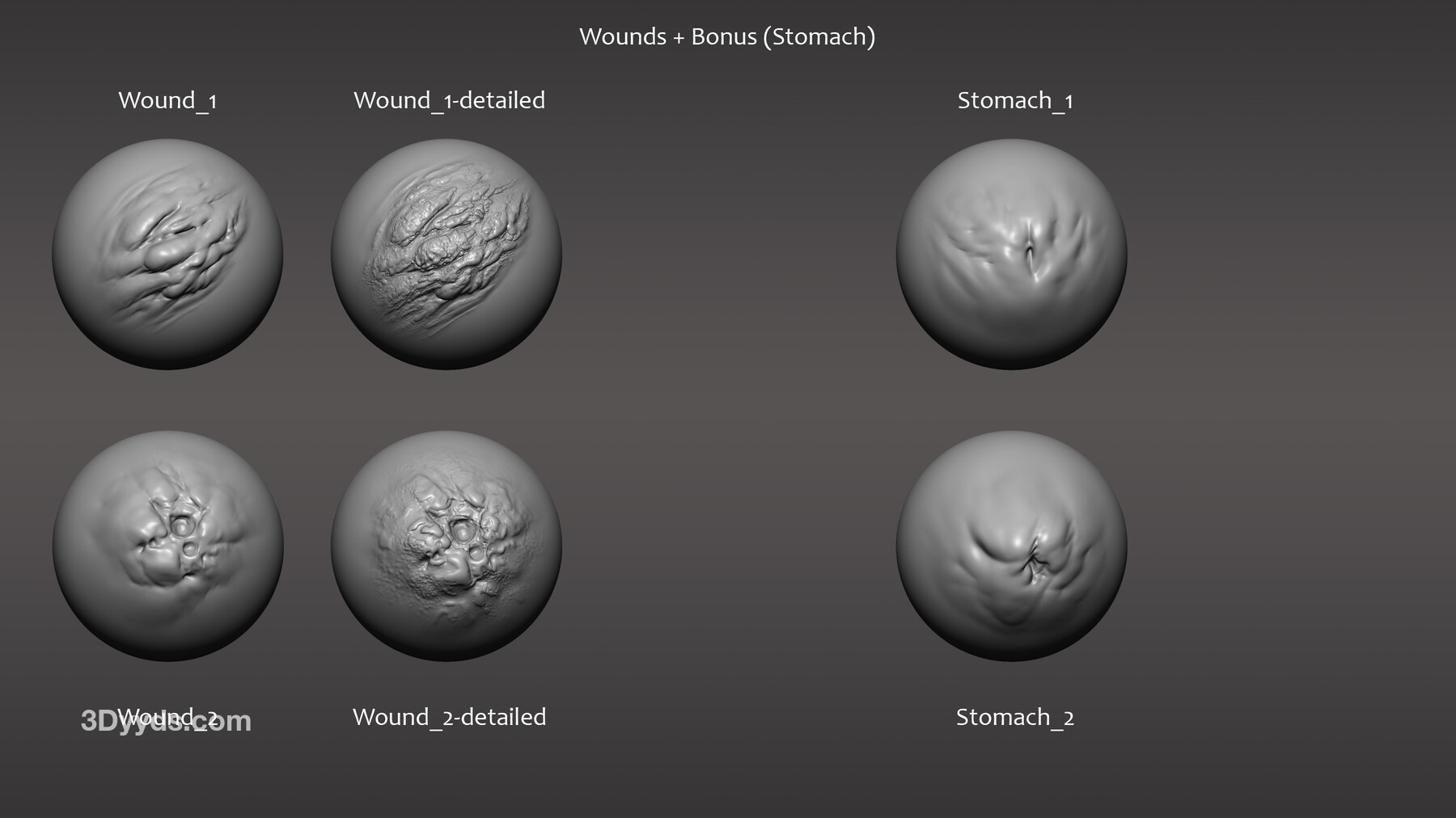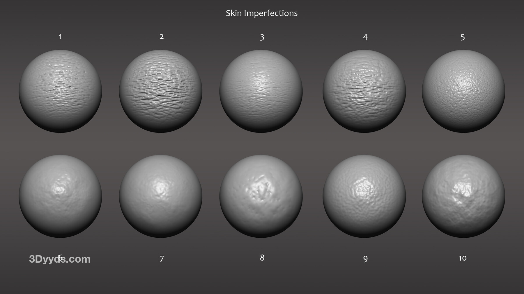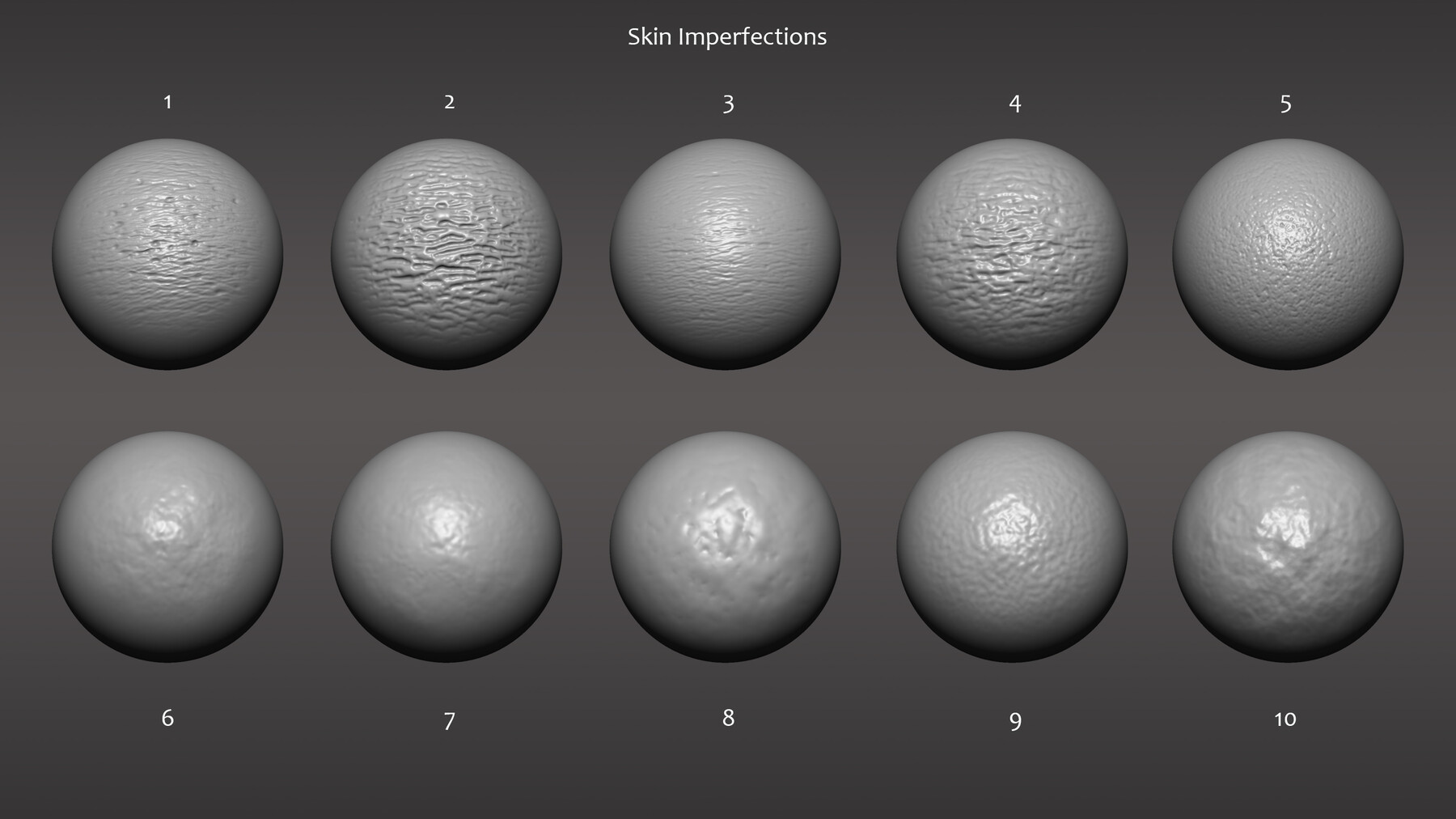 包含33个手工制作的生物皮肤Alpha贴图,用于在ZBrush中为模型创建基础细节,之后可以通过手工进一步精细调整和打磨。