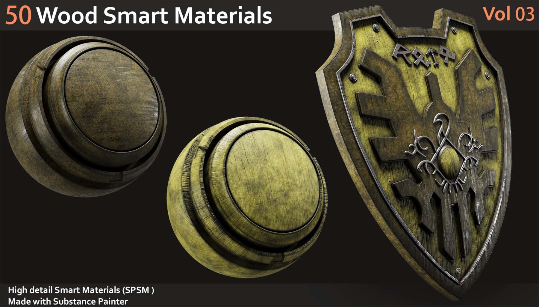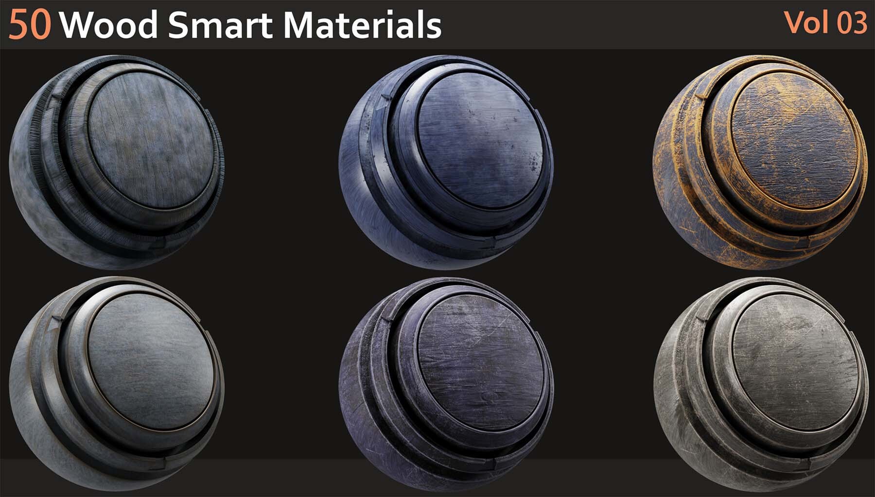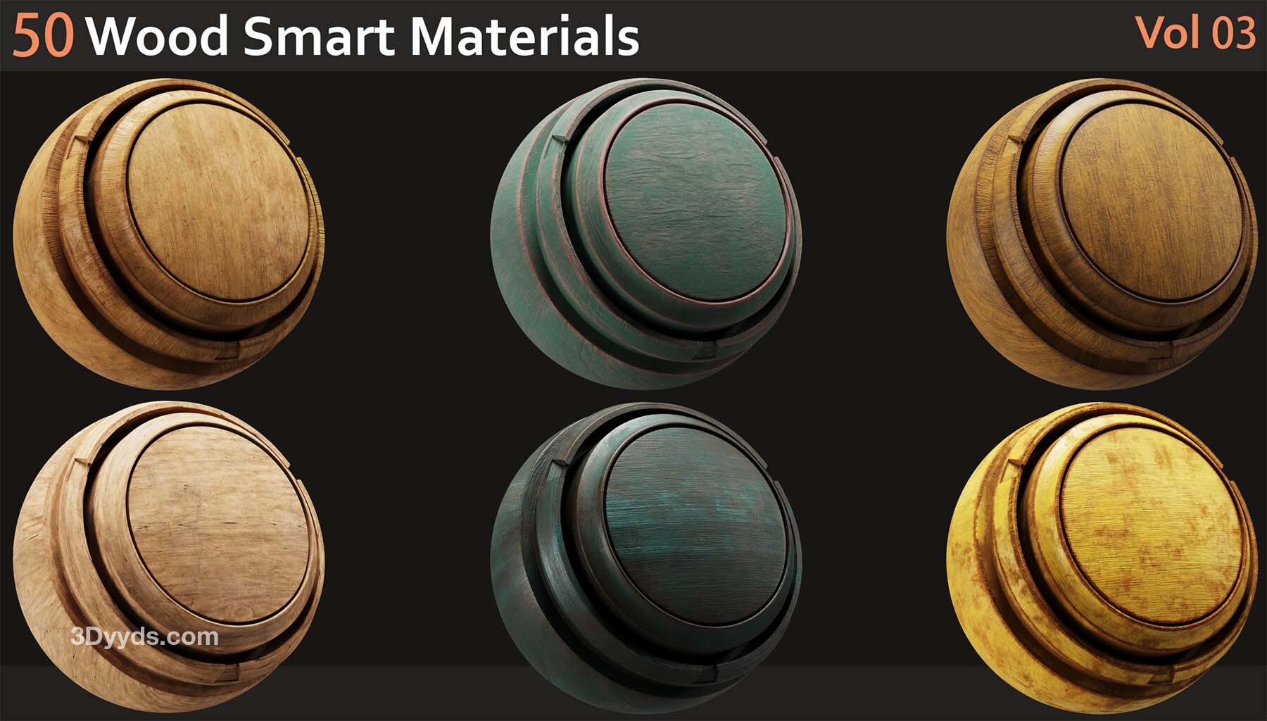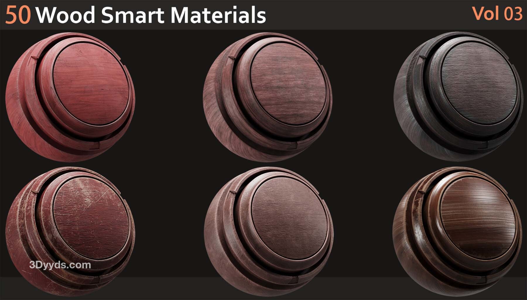 本产品包含50款木材智能材质(Smart Material),适用于Substance Painter。