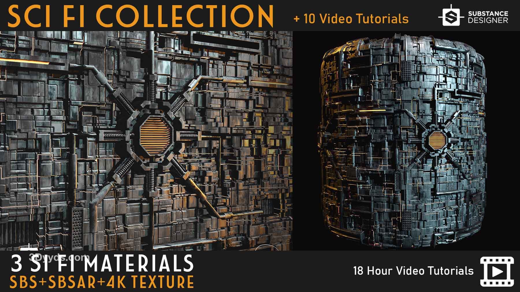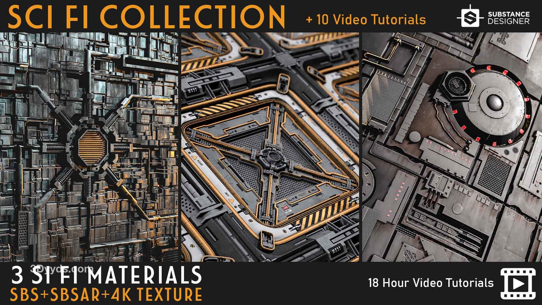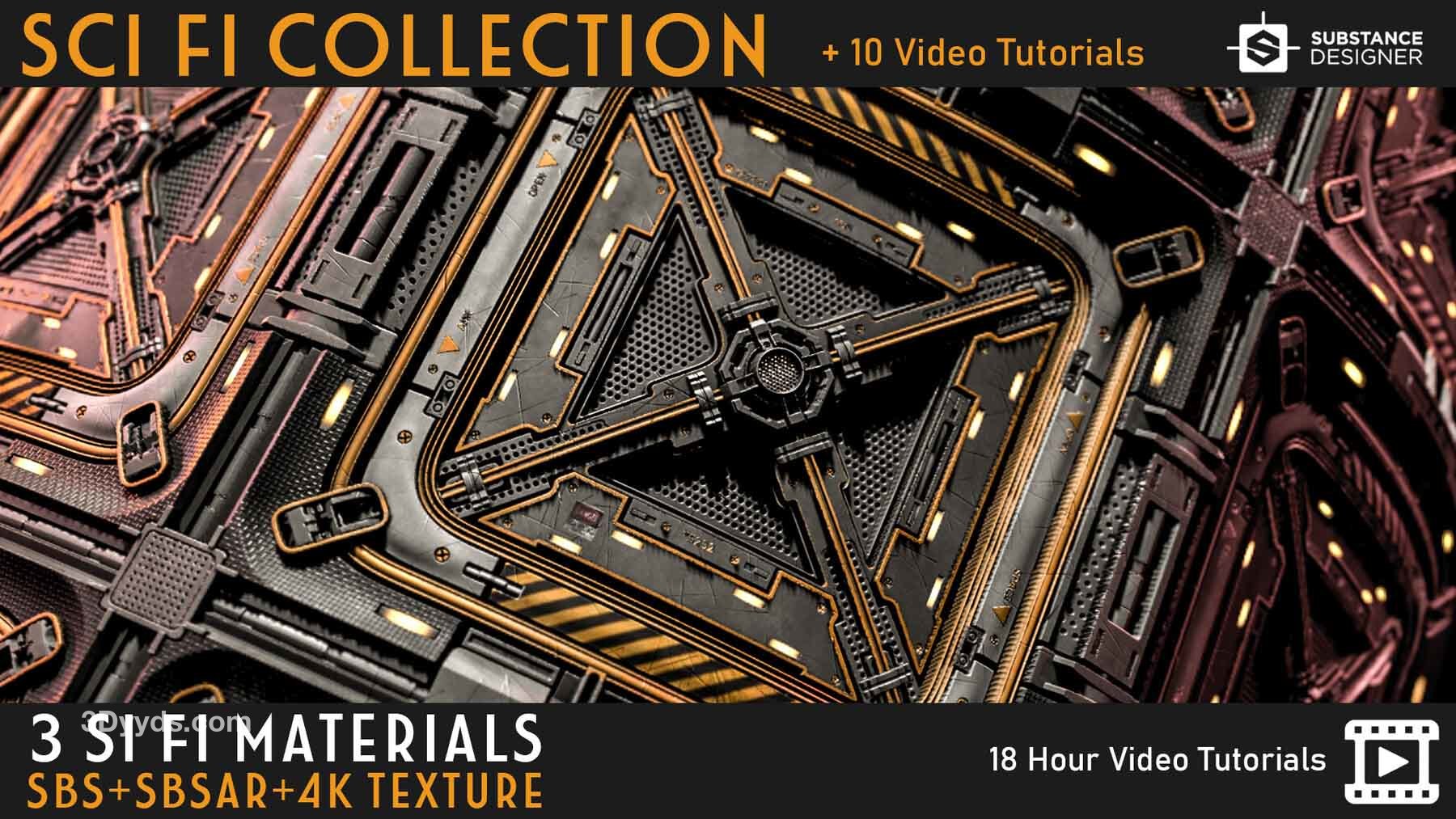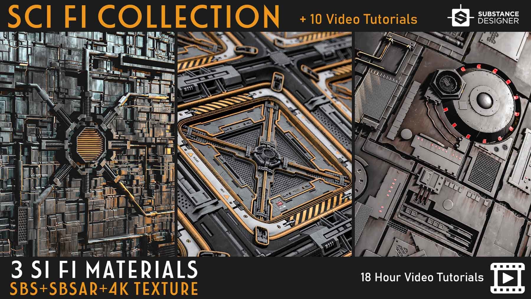 这个产品包括三种科幻材质设计师材料和4K PBR纹理。您可以在支持PBR工作流程的任何程序中使用这些PBR纹理!