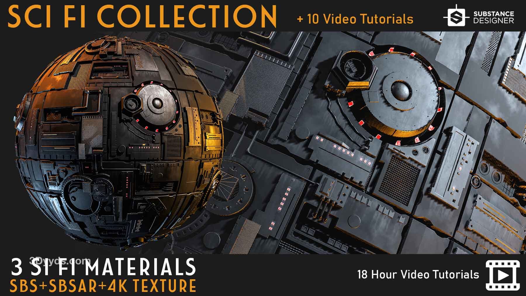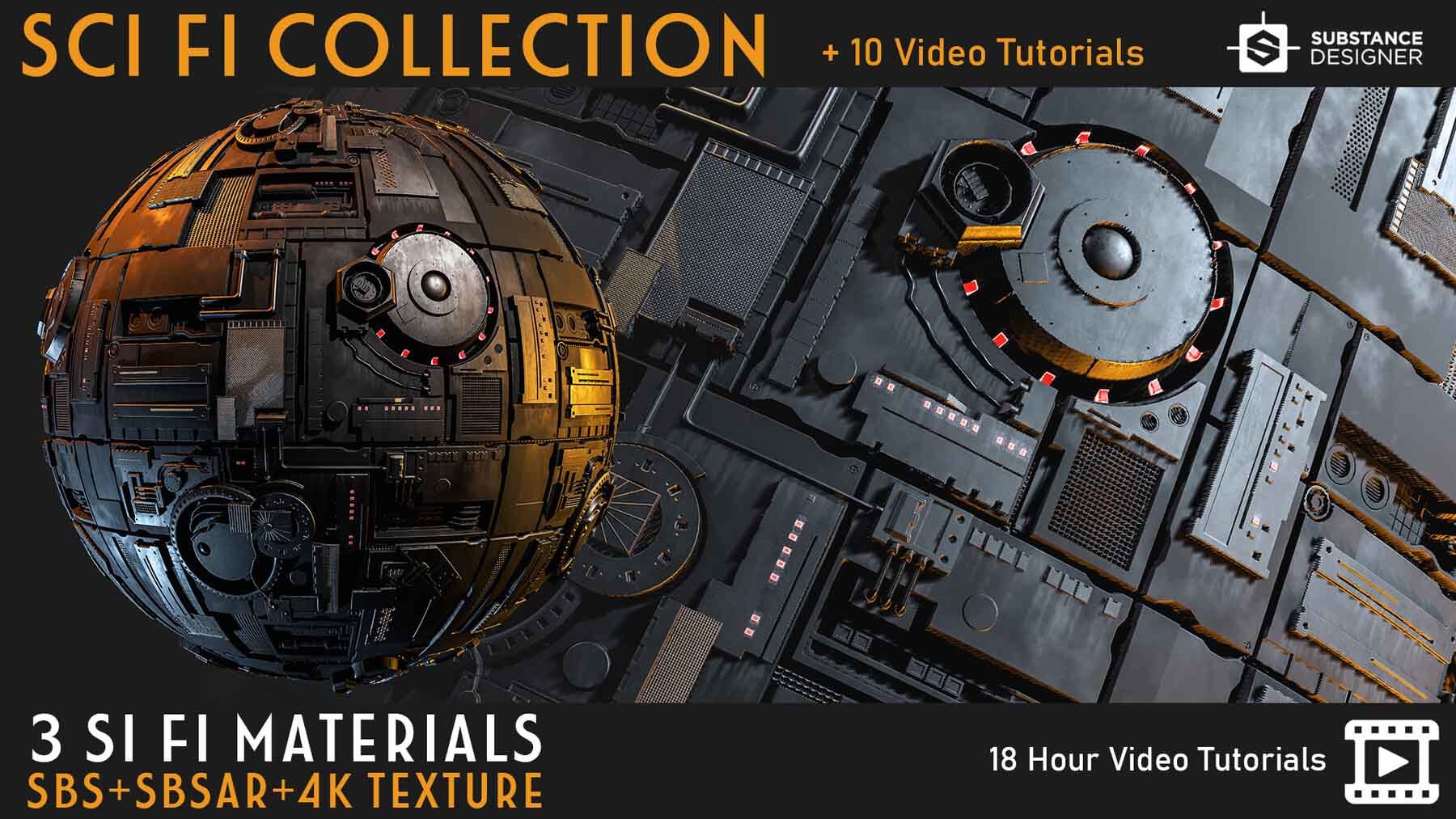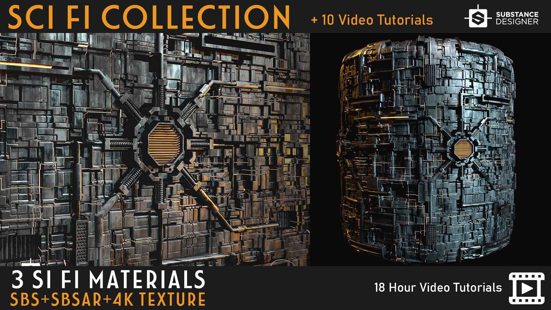 sp材质206高质量科幻太空间站面板材质球&贴图笔刷视频