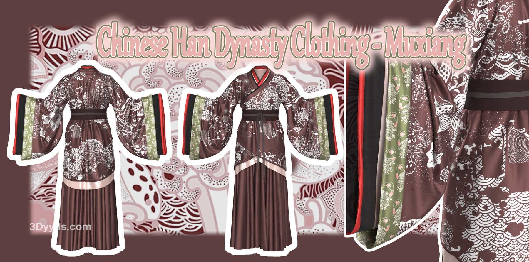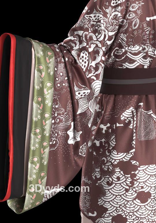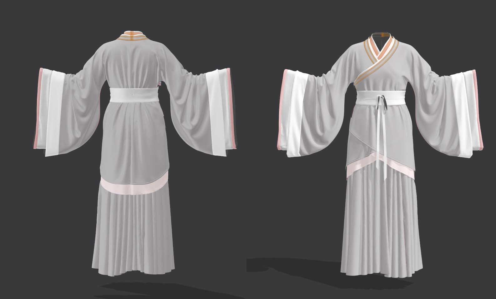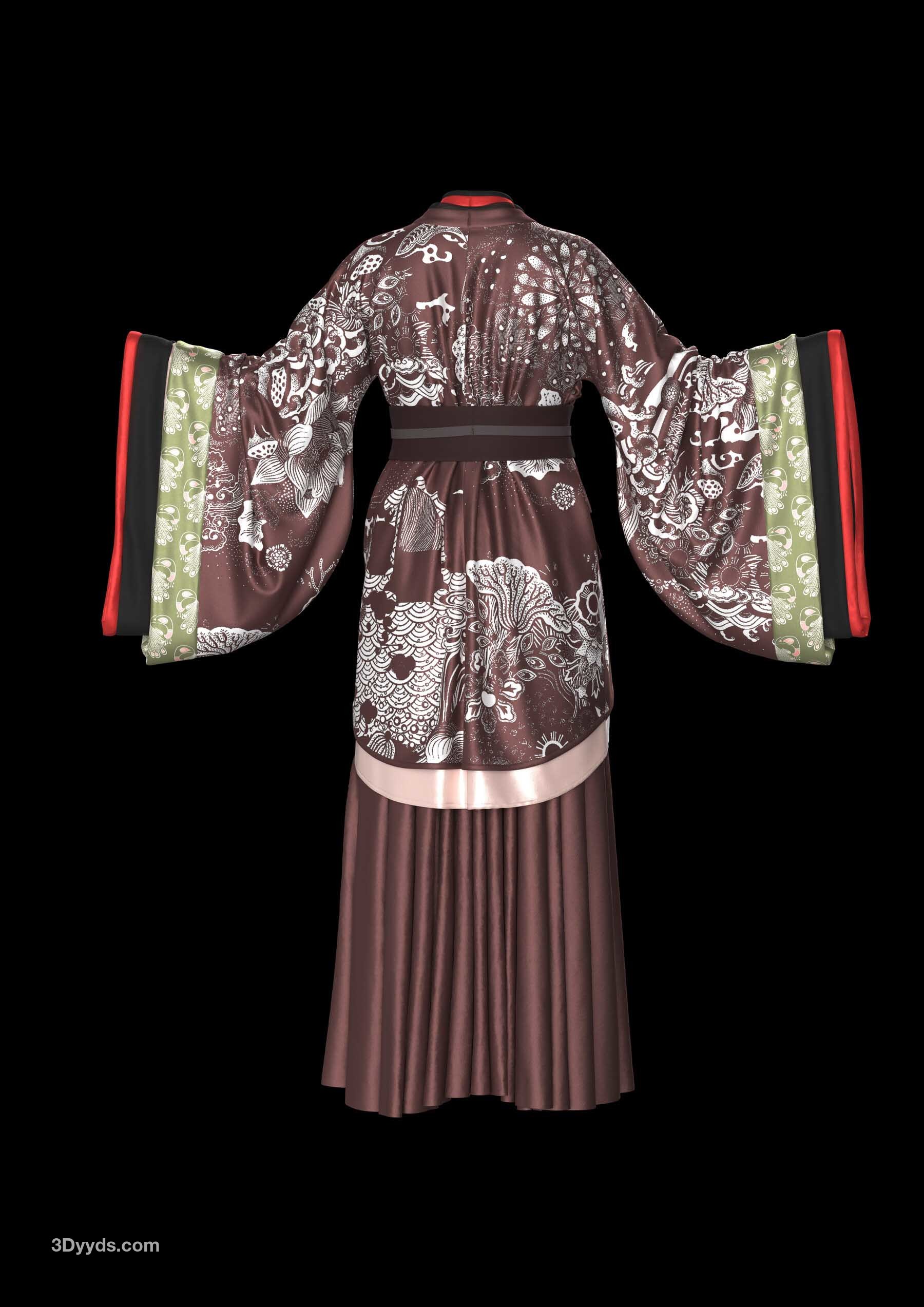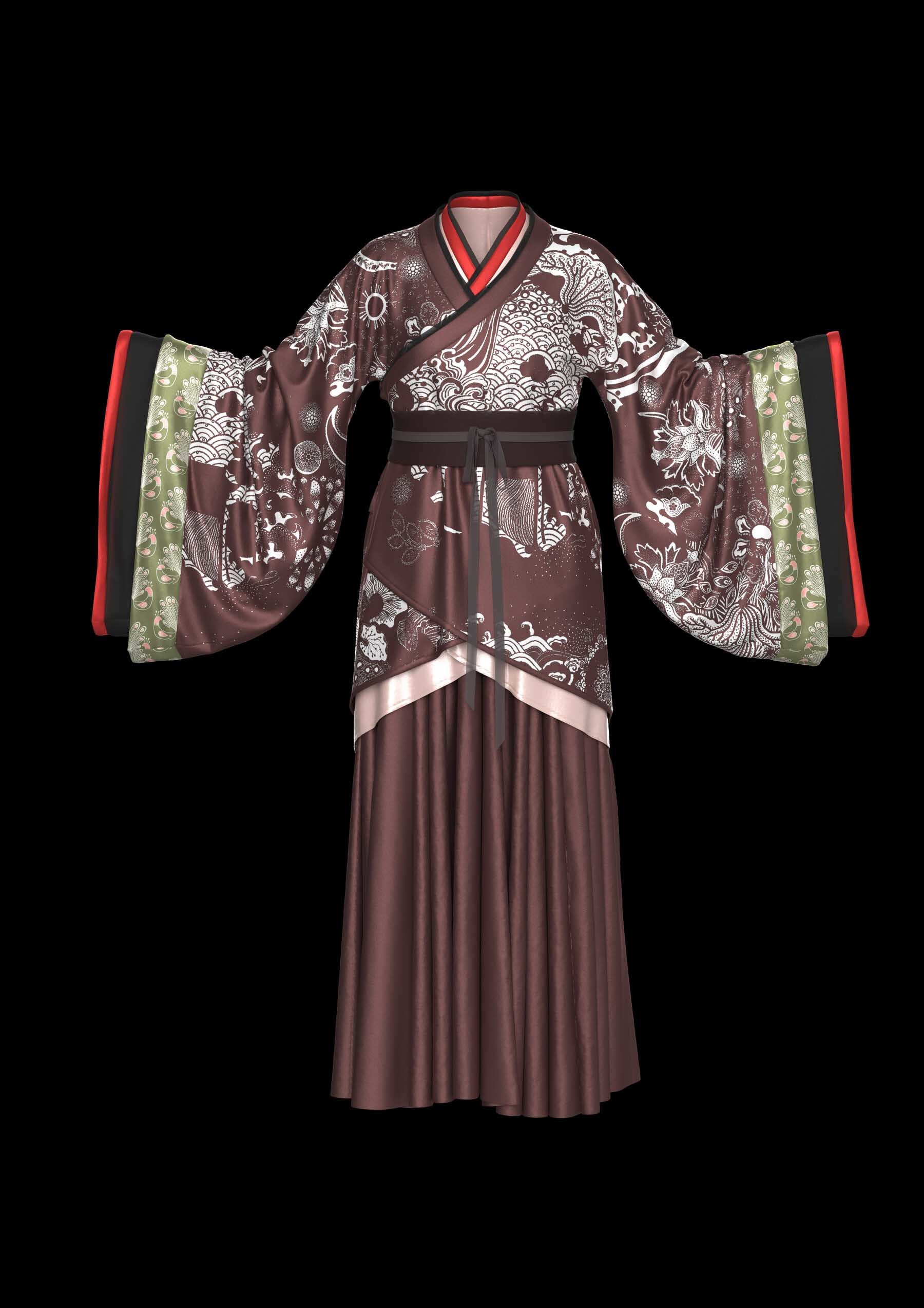 这件服装的设计灵感源自中国汉代的传统服饰。整件服装采用三角形格子面料,没有拓扑结构。整件服装使用丝绸制成,MD文件 + OBJ UV已经展开。