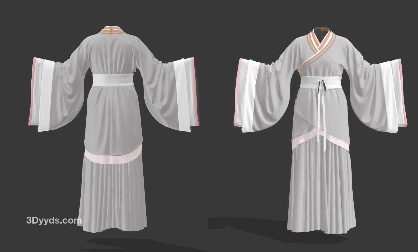 MD02宫殿汉服女装长袍3d模型&宫女服饰服装