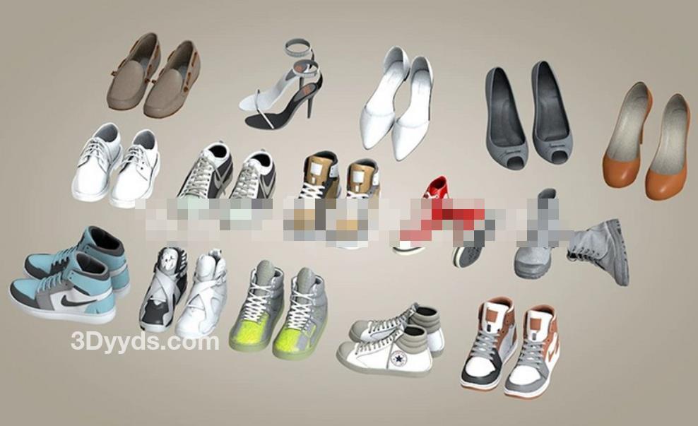 MD03运动鞋子皮鞋3D模型&c4d帆布鞋高跟鞋篮球鞋max