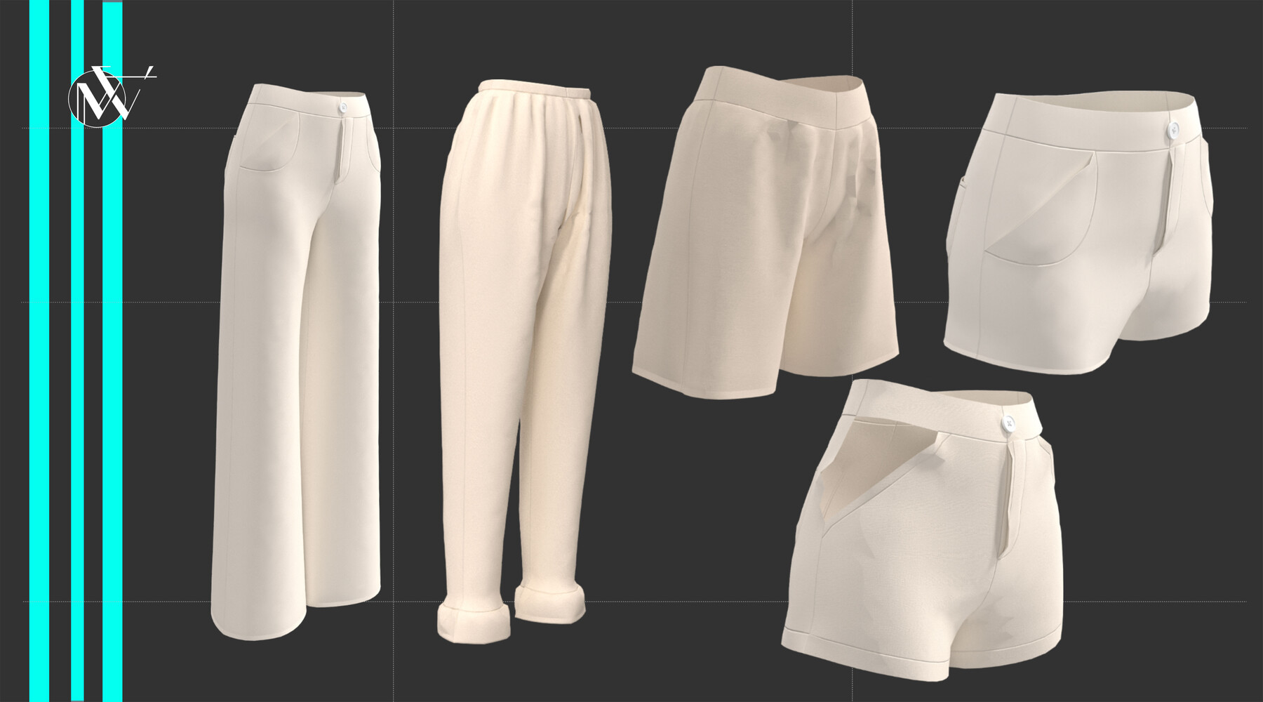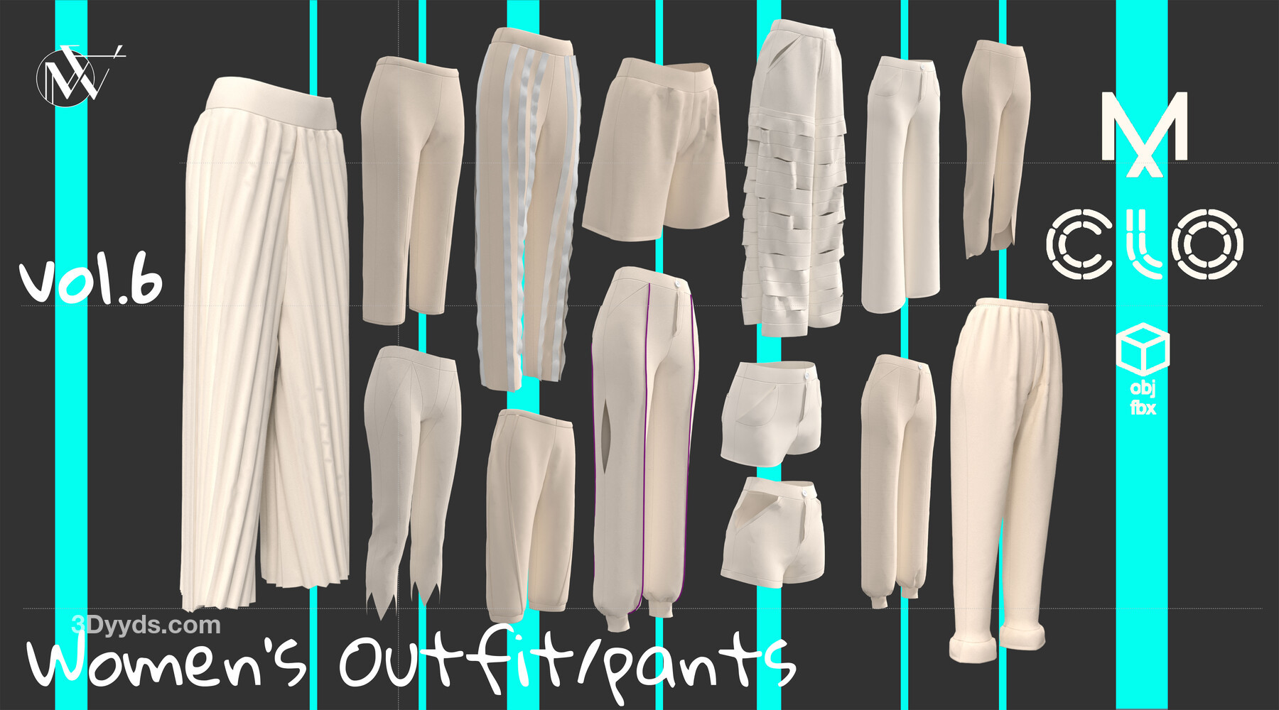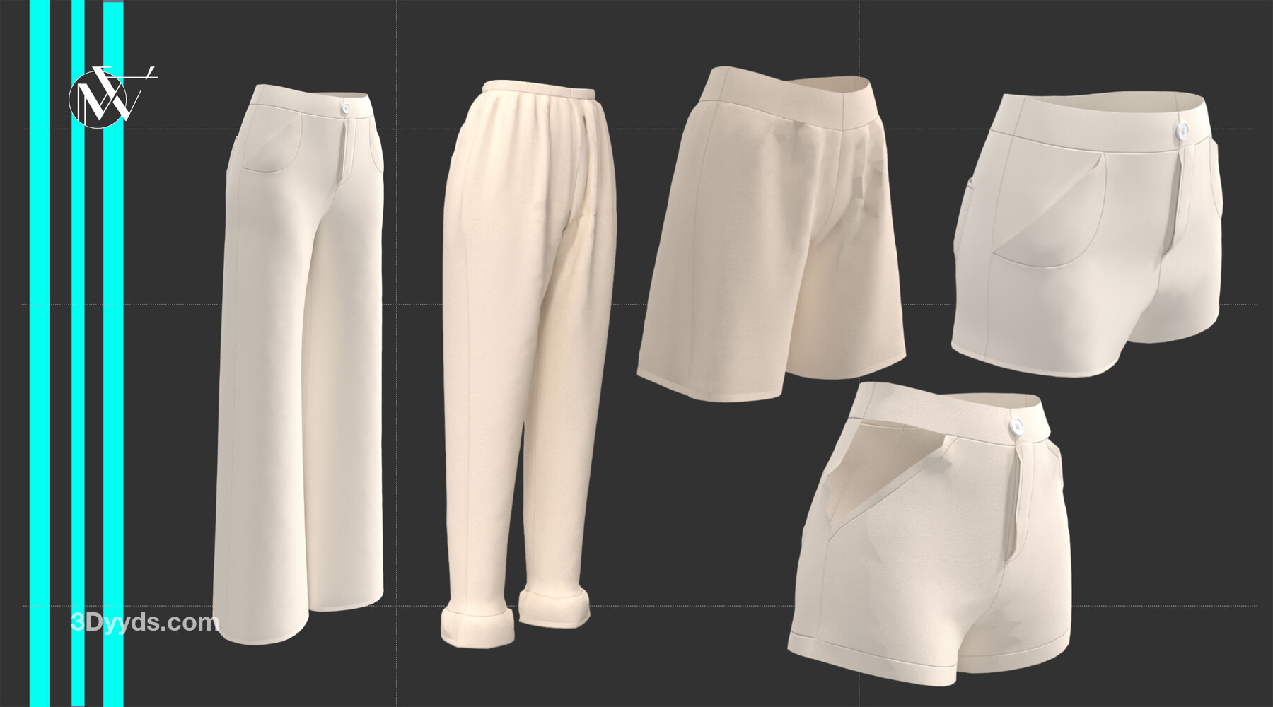 MD09女式衣服裤子短裤长裤直筒裤模型FBX、OBJ