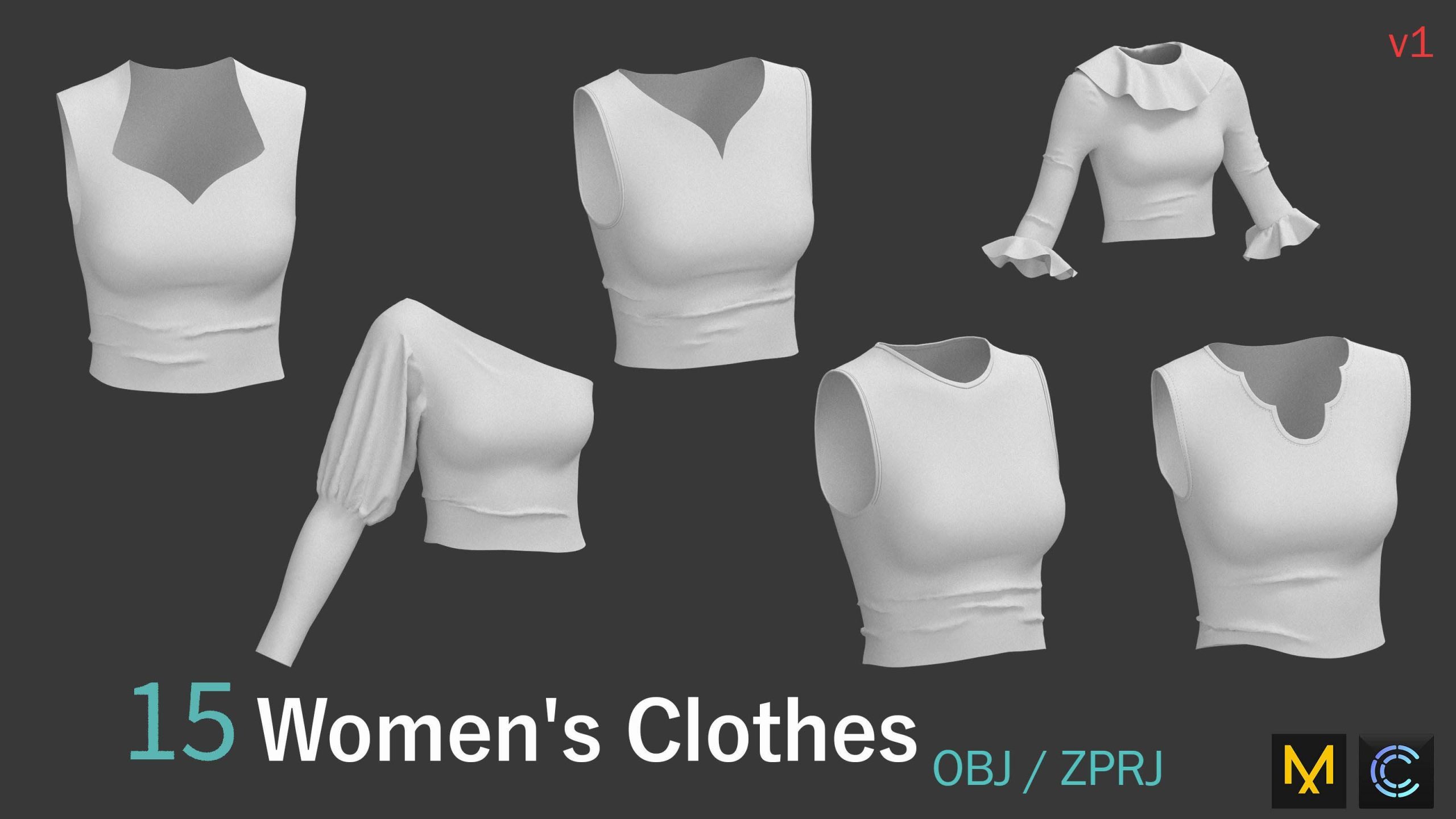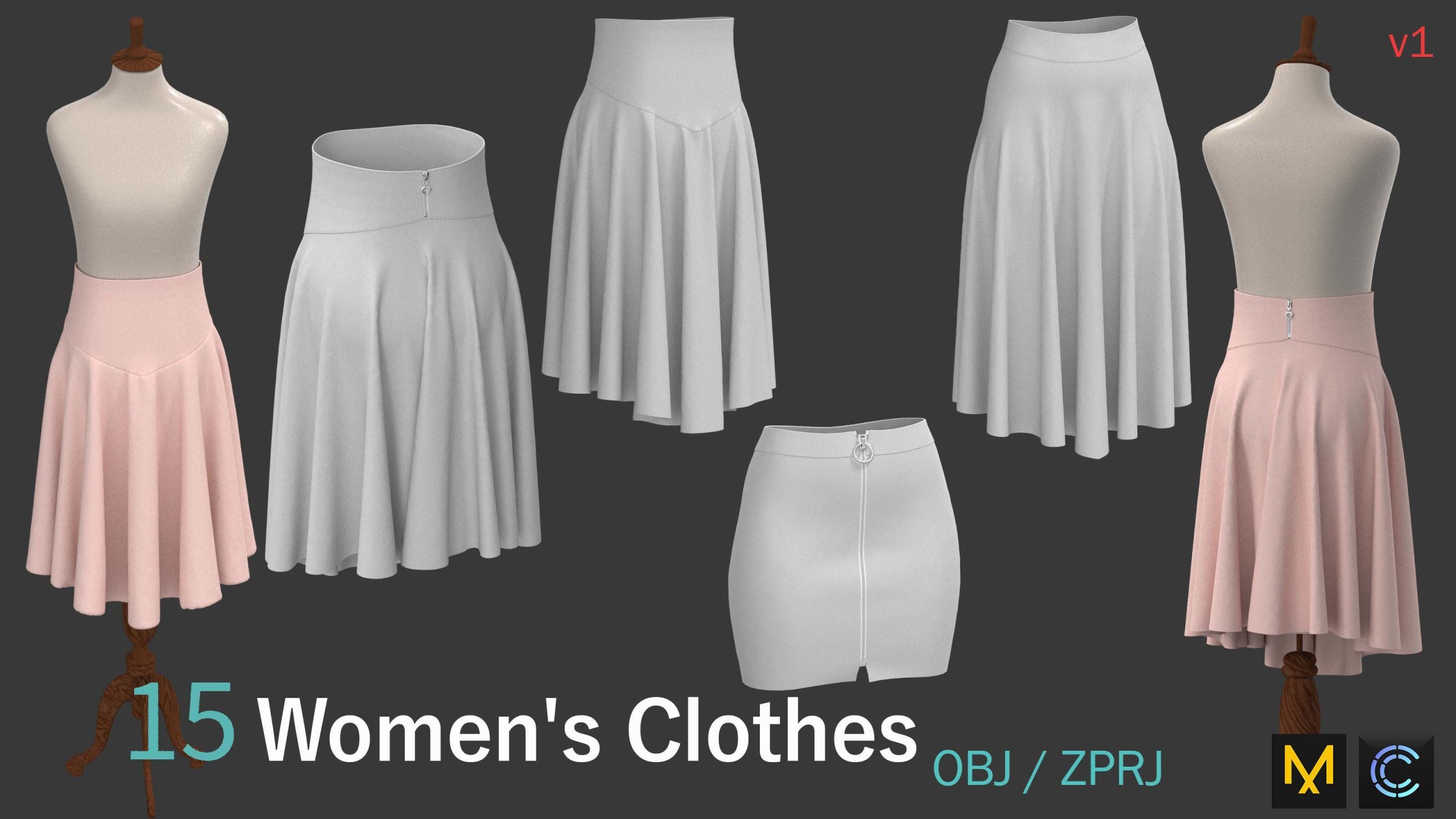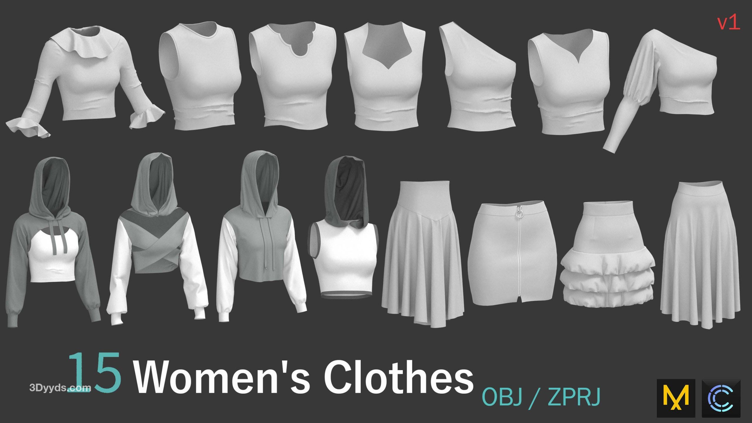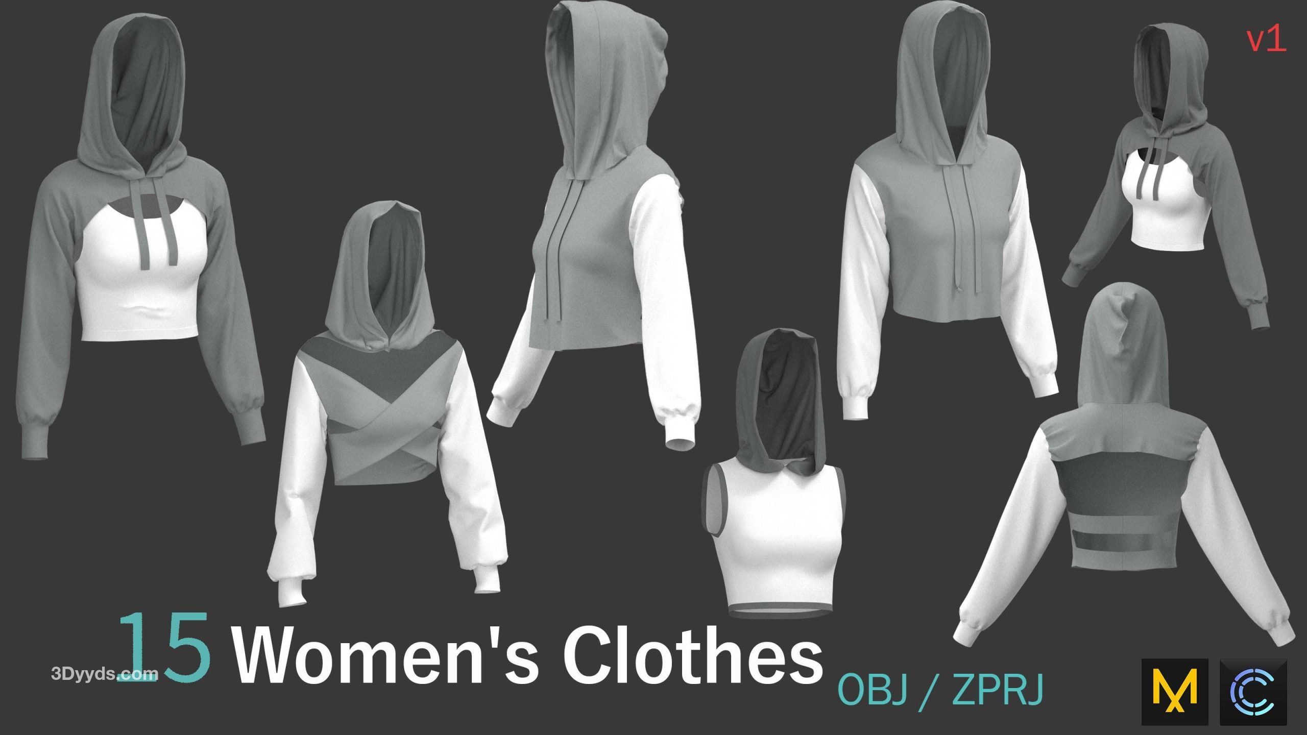 15款女装模特,包括短款上衣、带帽短款上衣和裙子。通过这些精心打造的短款上衣、带帽短款上衣和裙子,提升您的角色设计和时尚项目。