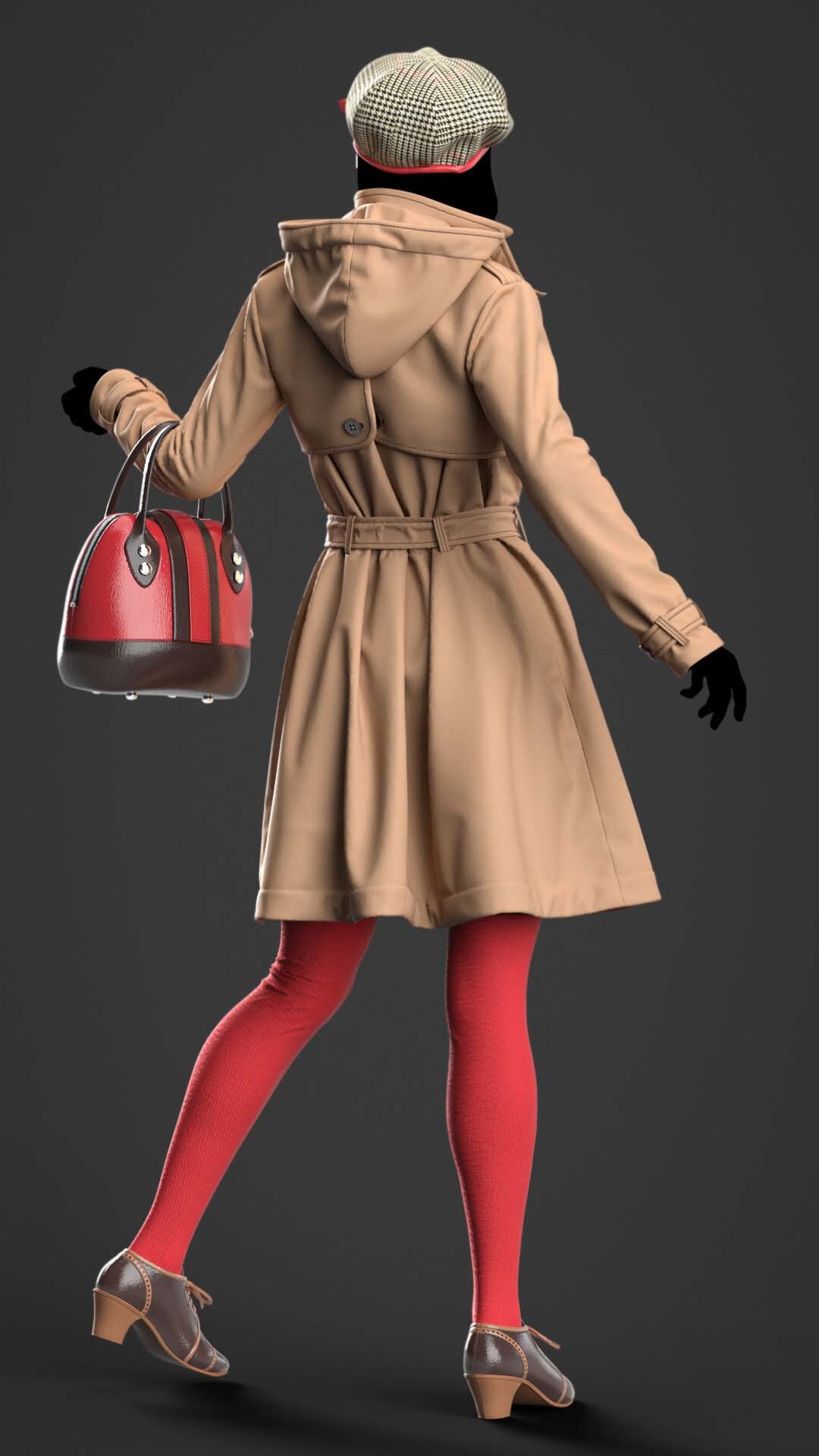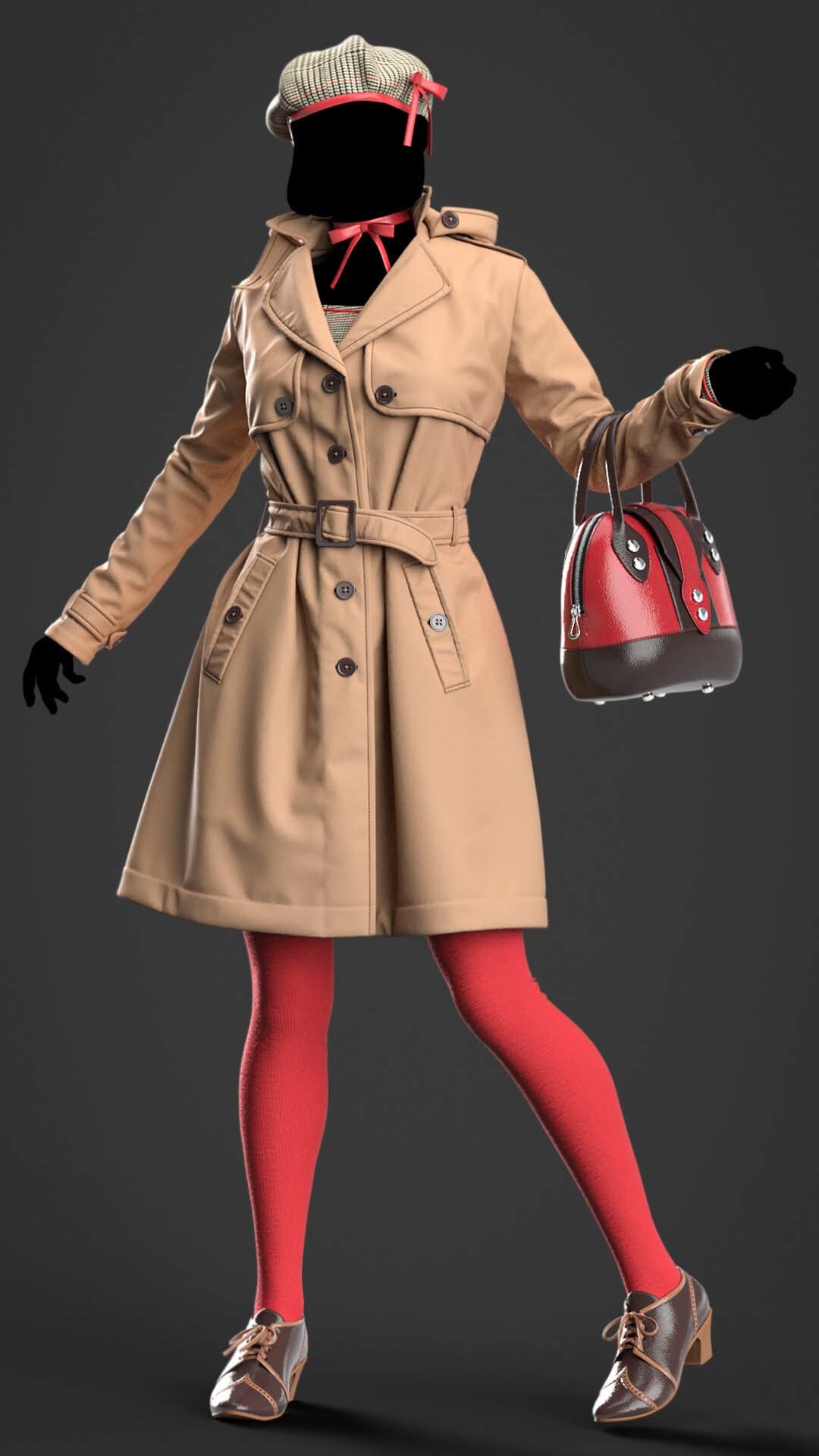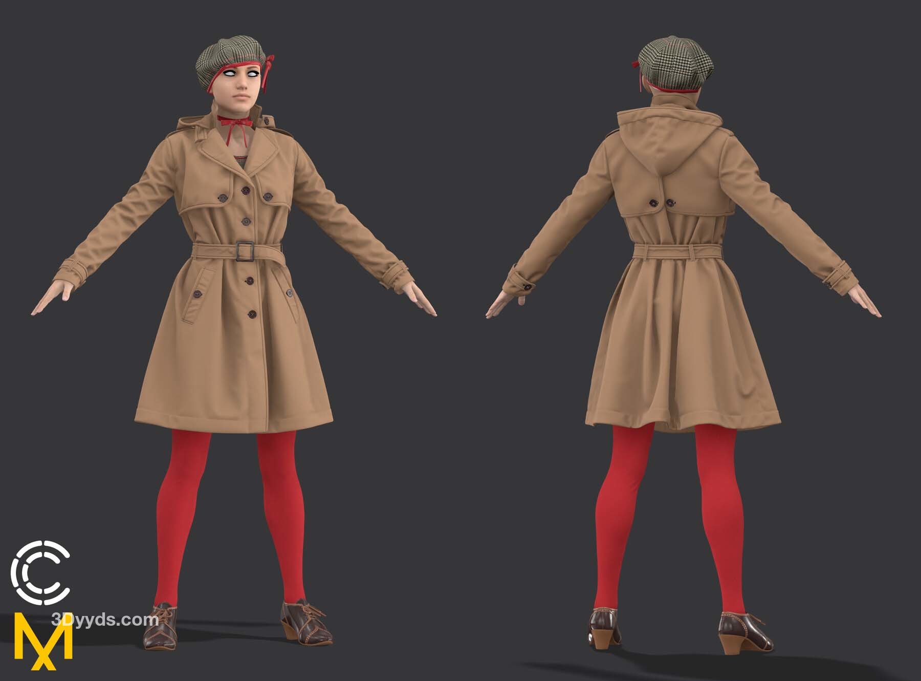 MD27女式中长款风衣英式风衣服饰3d模型&英伦士兵卡其色风衣