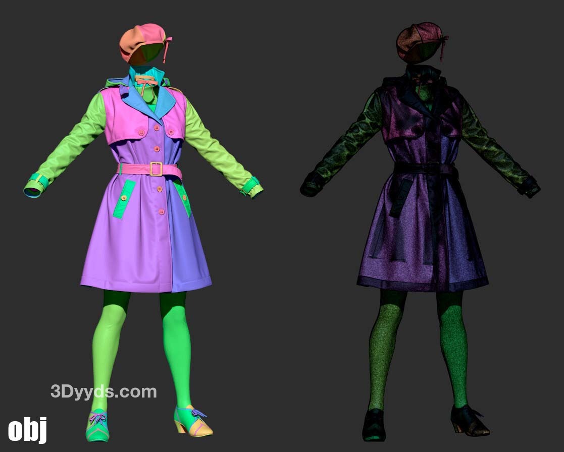(从Marvelous Designer导出的高面数三角网格),不包含贴图和顶部缝线。