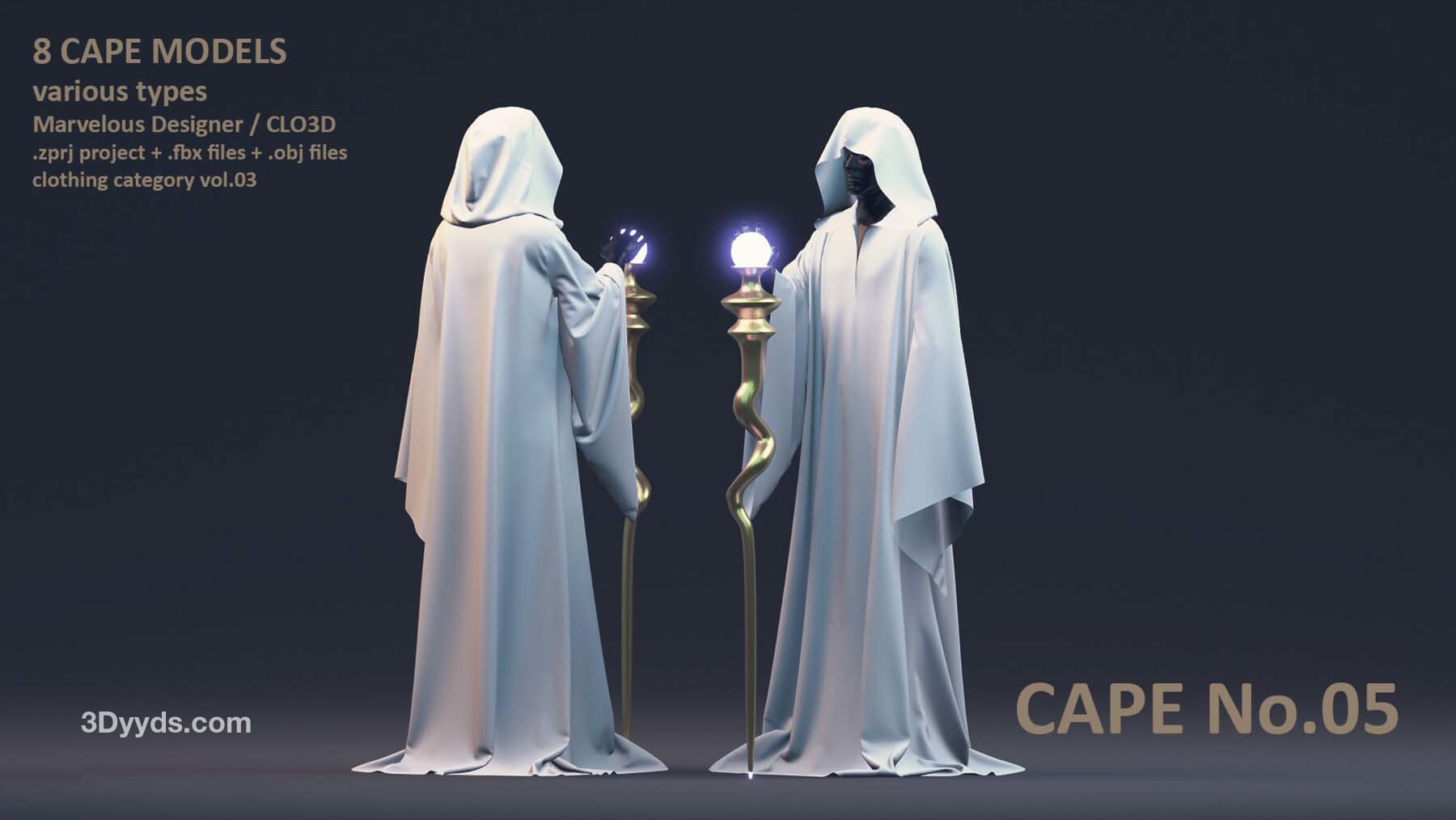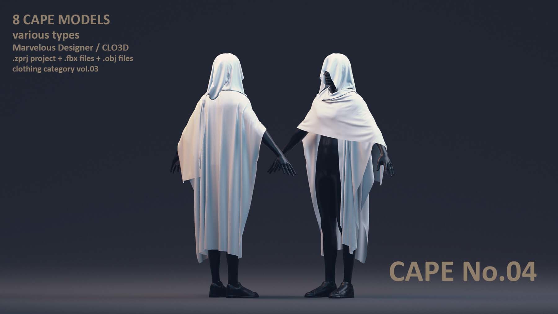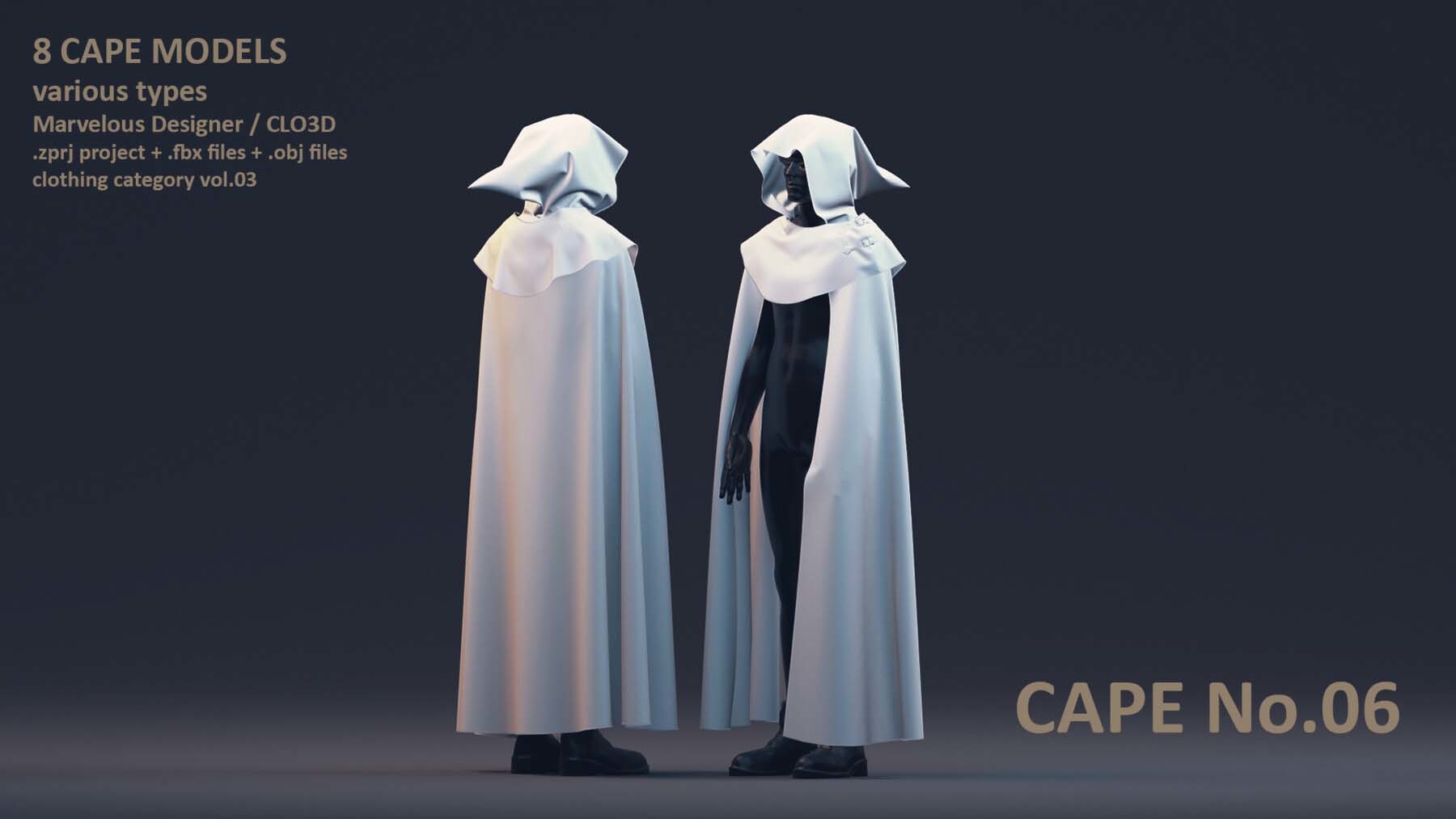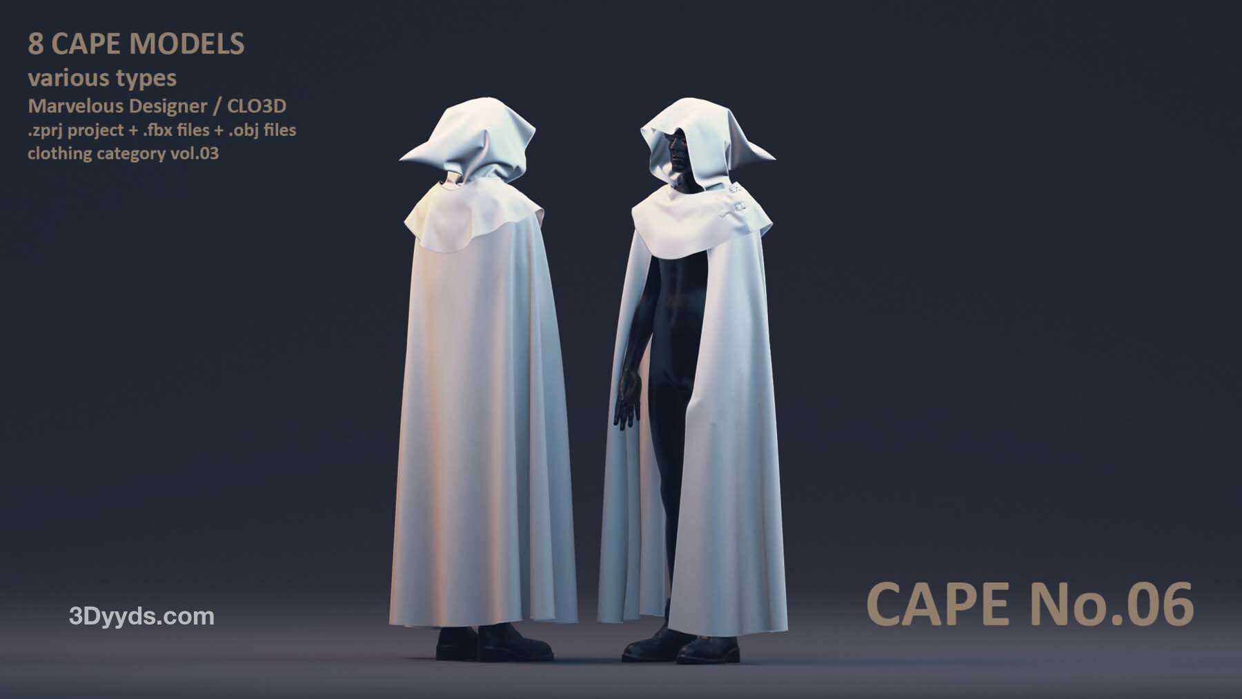每位艺术家都需要一个合适的模型库,以加速创作艺术作品的过程。这个套装包括了男性和女性风格各异的8 件披风模型。这些模型具有清晰的四边形网格和 UV 映射。这些披风可以轻松地用来加快角色服装的制作过程。