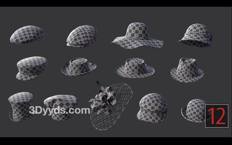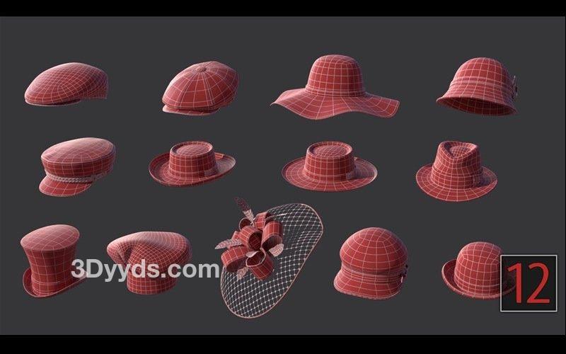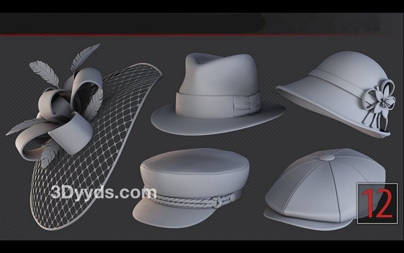 zbrush285男女帽子雕刻笔刷&边沿帽礼服帽模型Blender