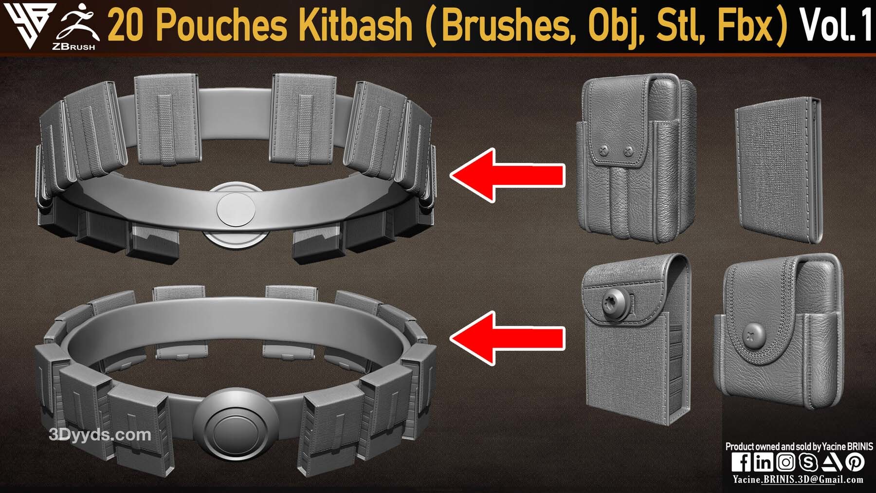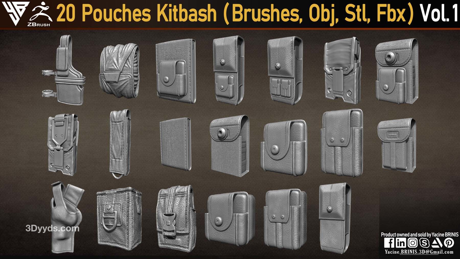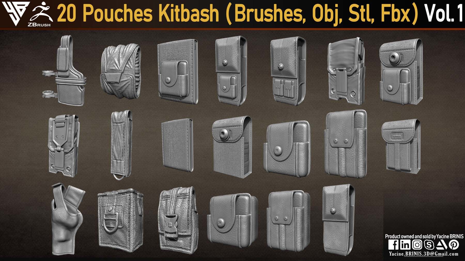 20 个包袋套件(IMM 笔刷,Obj,Stl,Fbx)