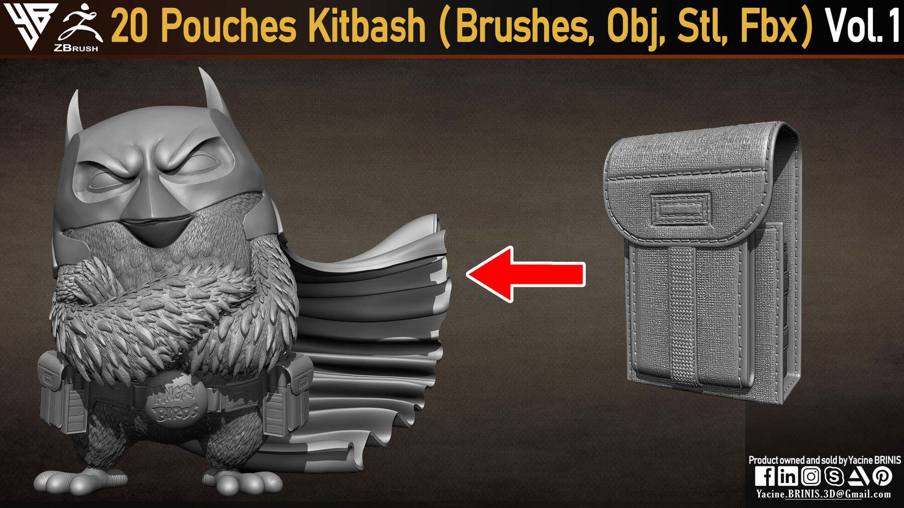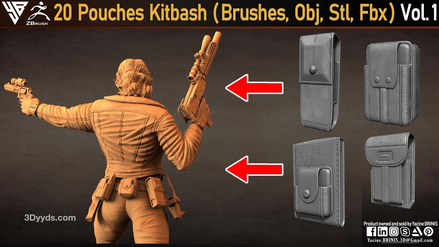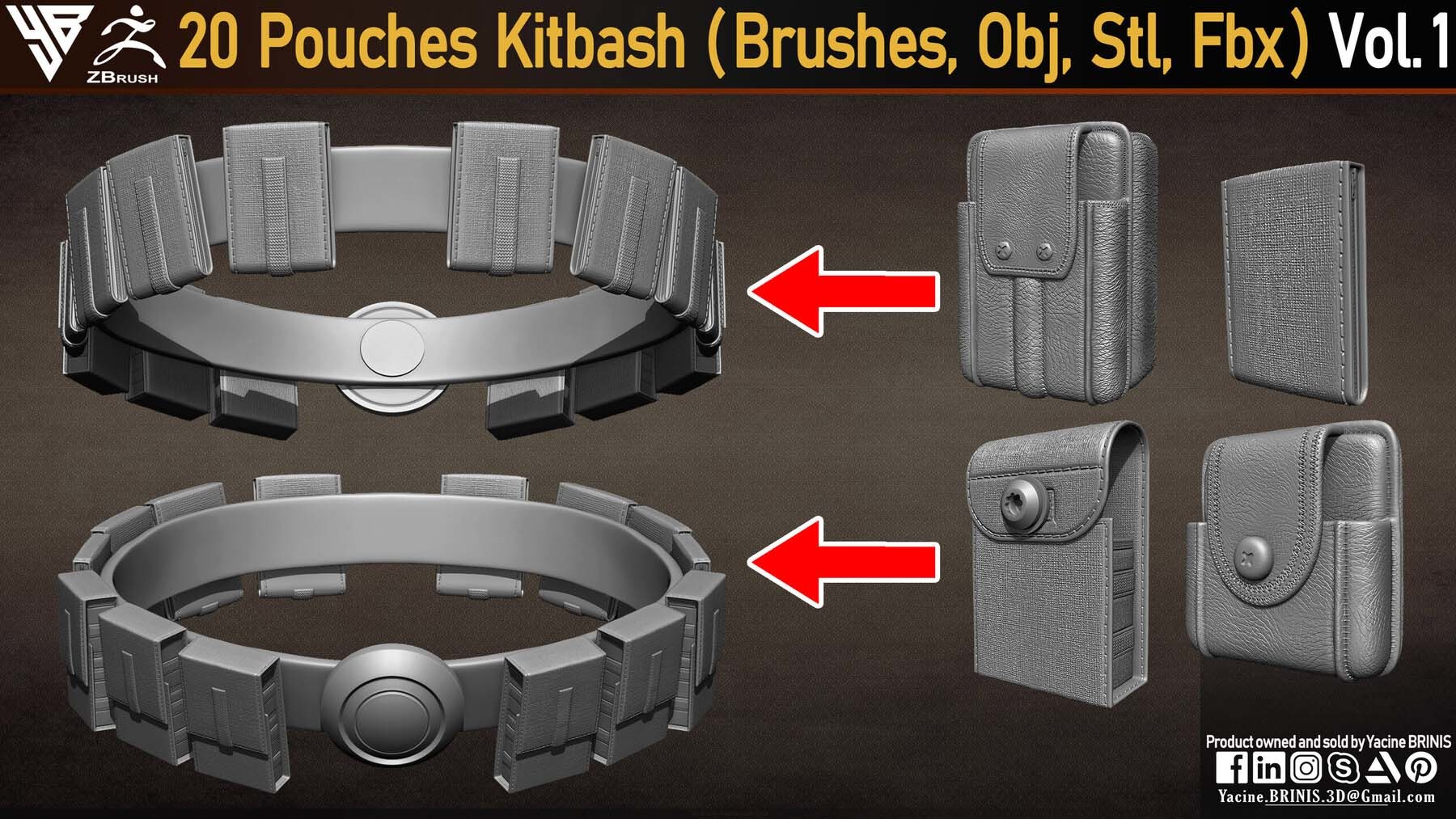zbrush286口袋背包IMM笔刷&手枪皮包模型雕刻ZBP