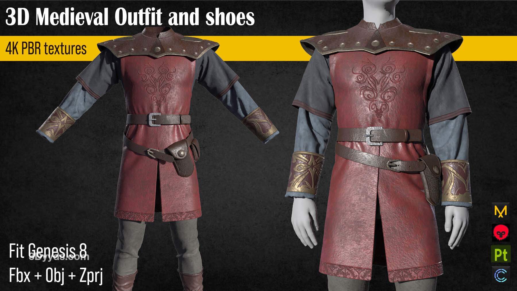 这个模型是在Marvelous Designer中创建,并在Adobe Substance Painter中进行纹理贴图的。纹理为4K PBR。