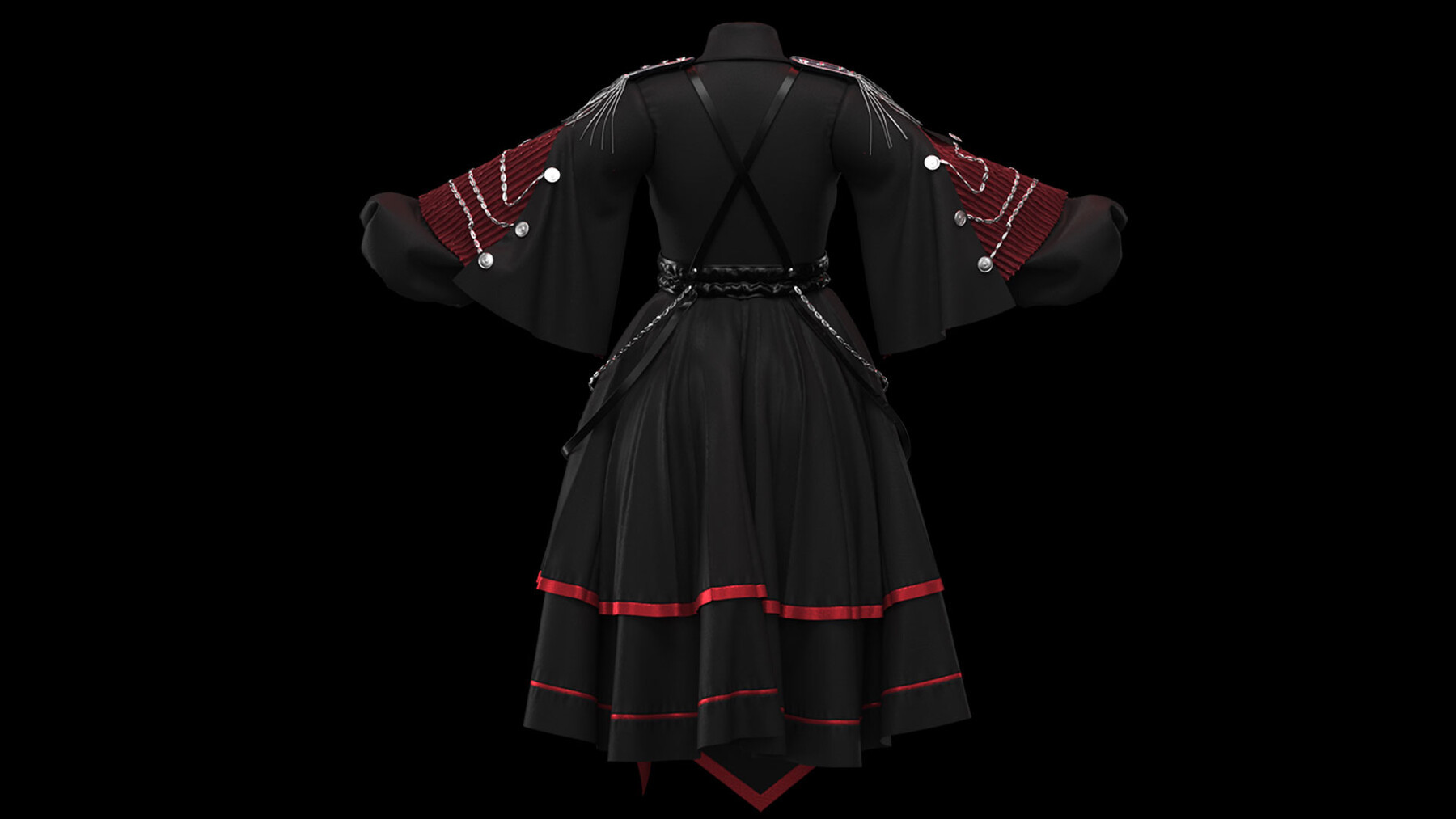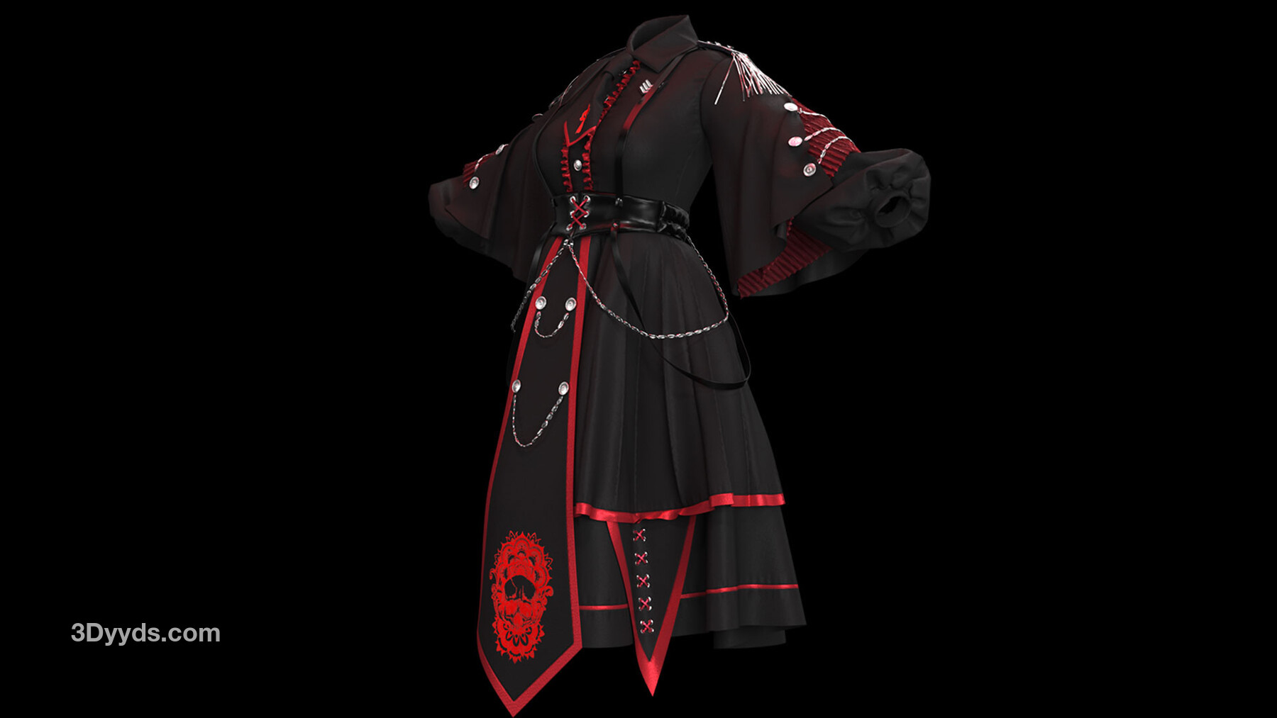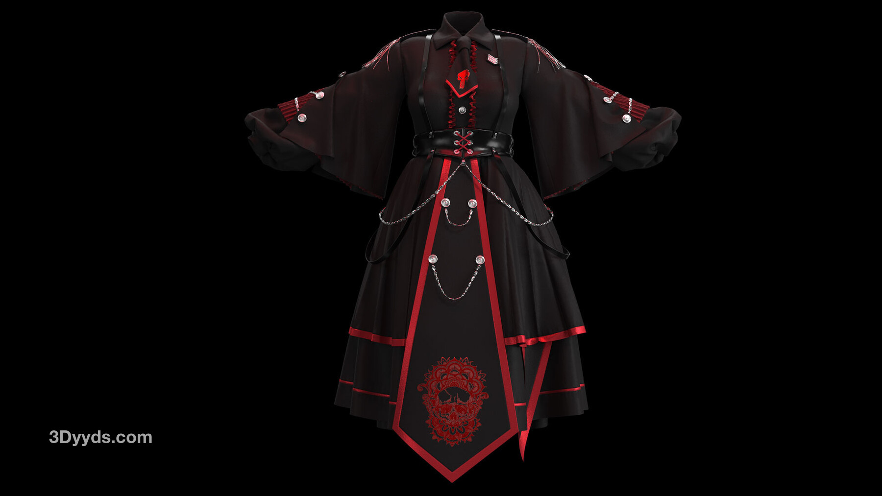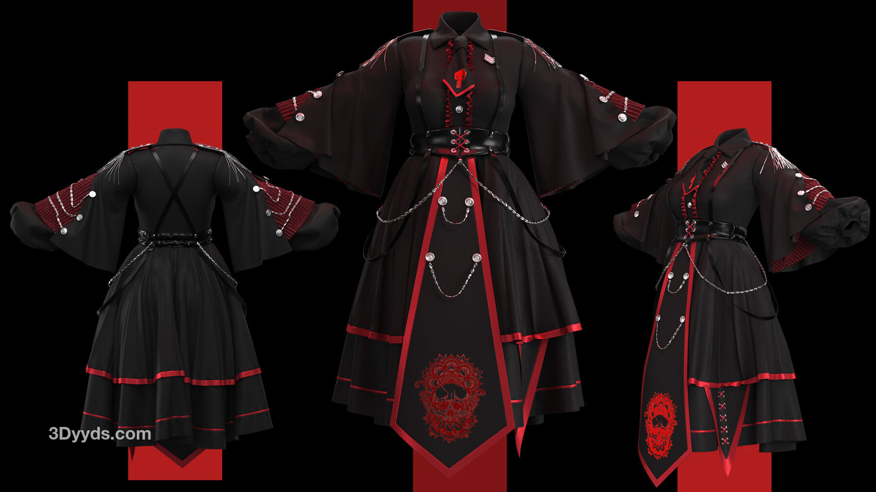 女性二次元服装/Marvelous Designer/哥特风十字架连衣裙+皮革束腰