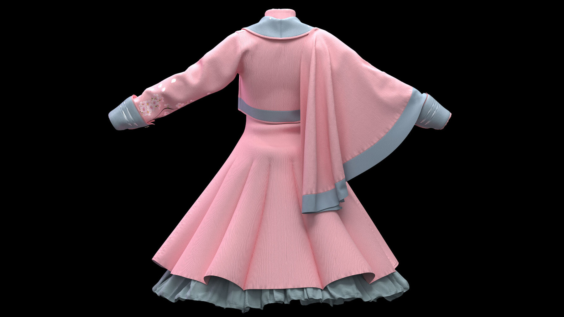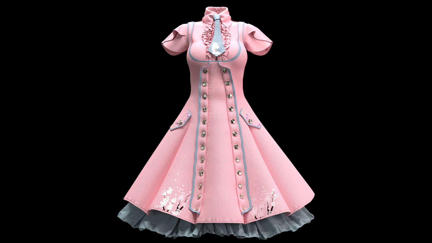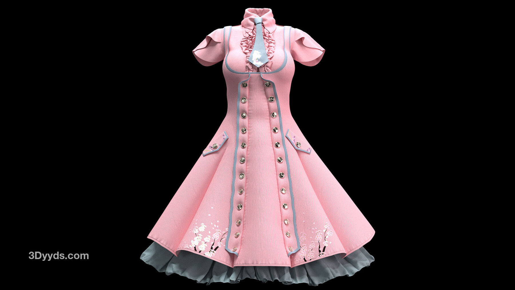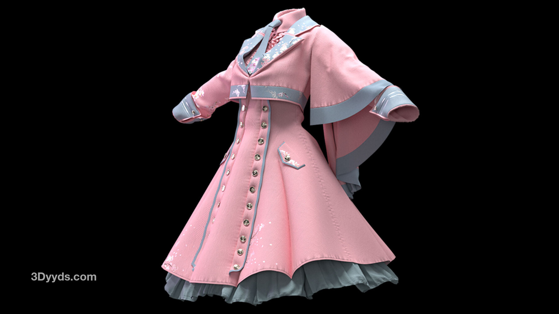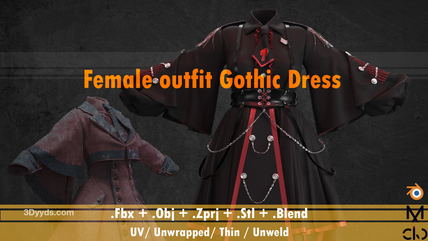 女性二次元服装/Marvelous Designer/哥特风十字架连衣裙+皮革束腰