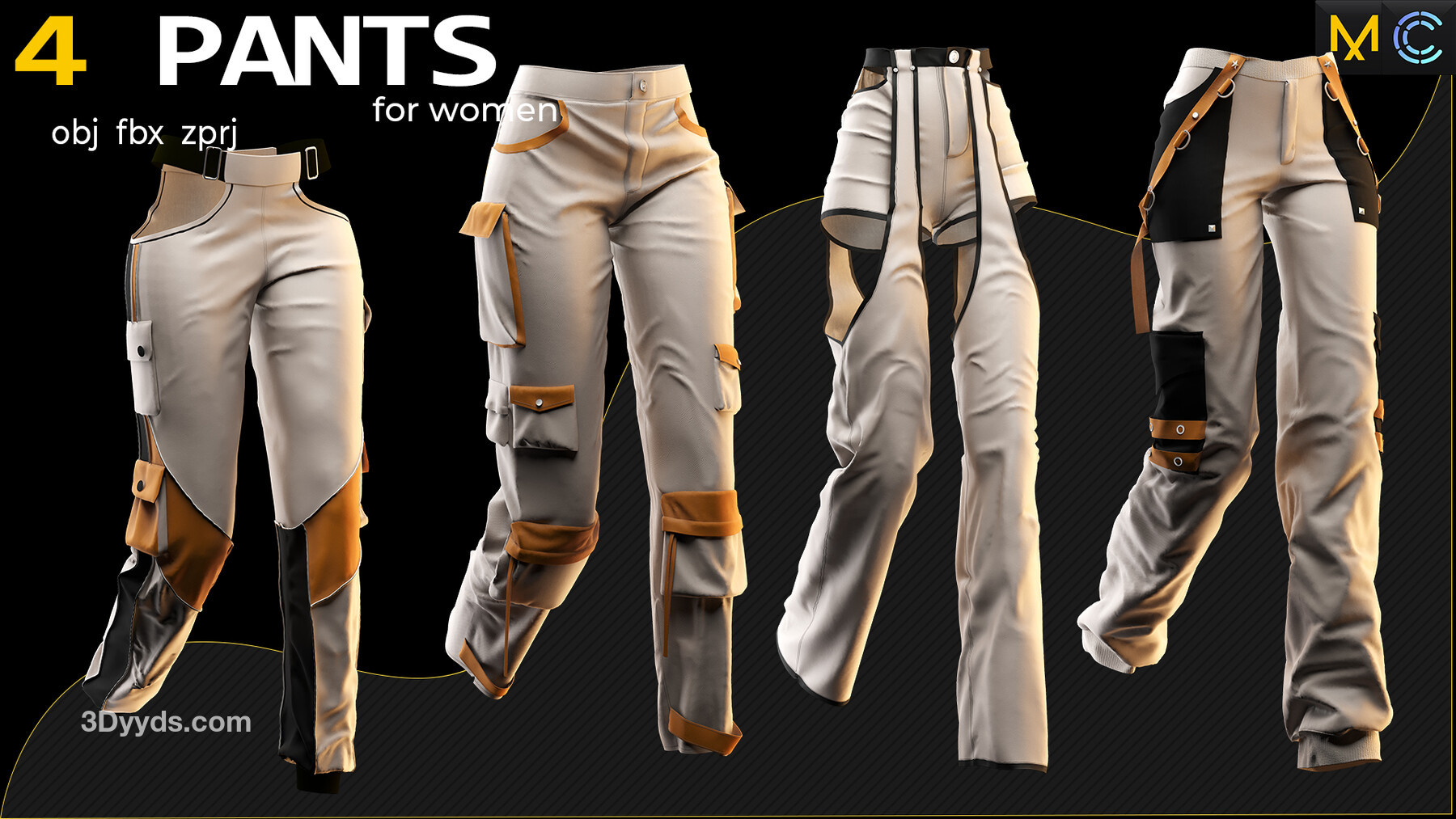 在此包中,我们为您准备了4款女性裤子模型,您可以轻松将其用作其他项目的基础模型,以提高生产效率。