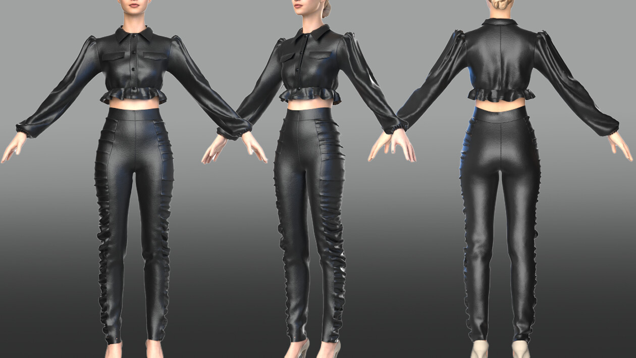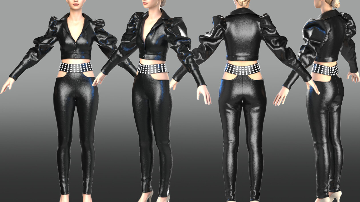 MD47女性皮革衣服套装女装皮衣皮裤四套