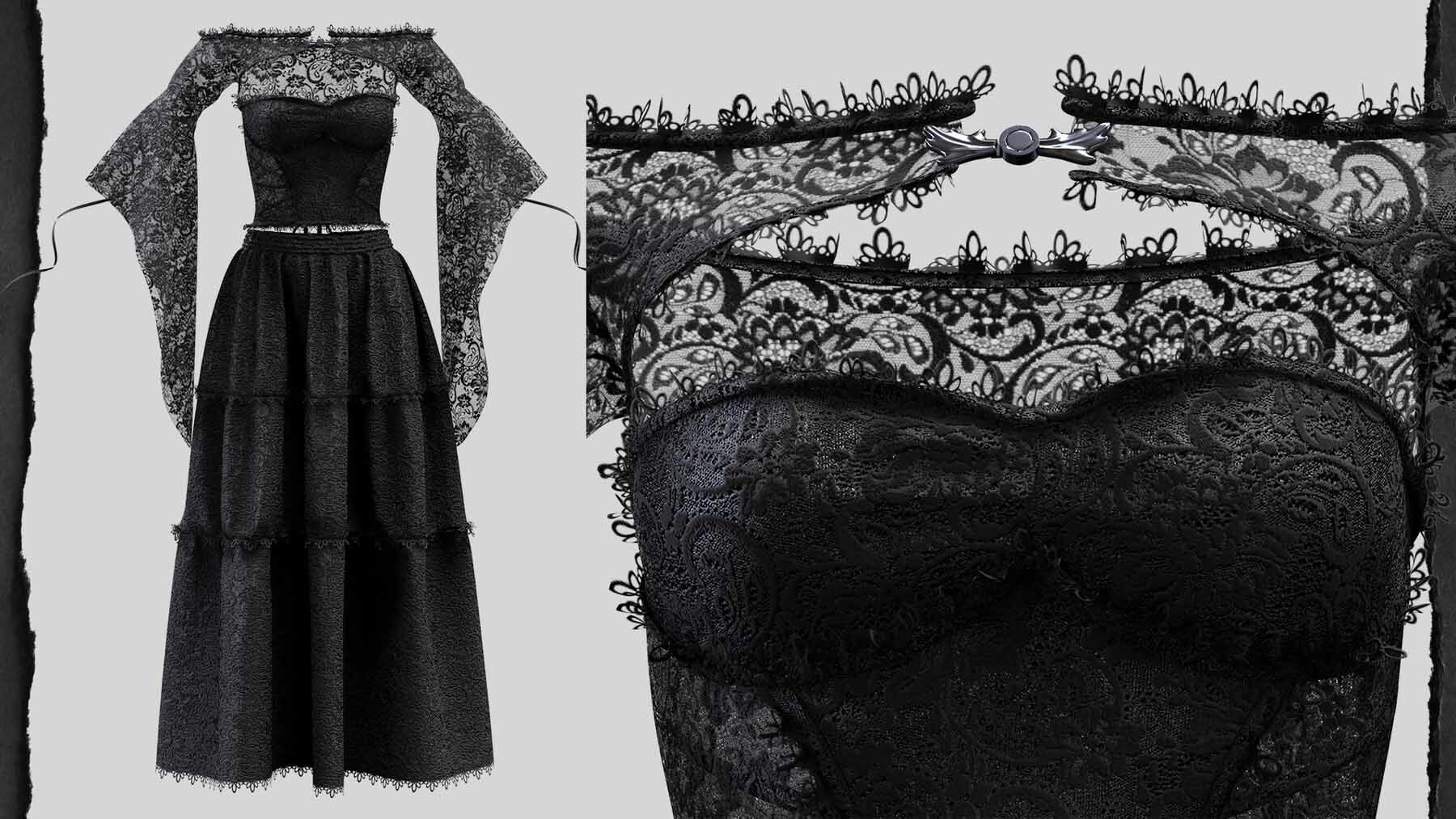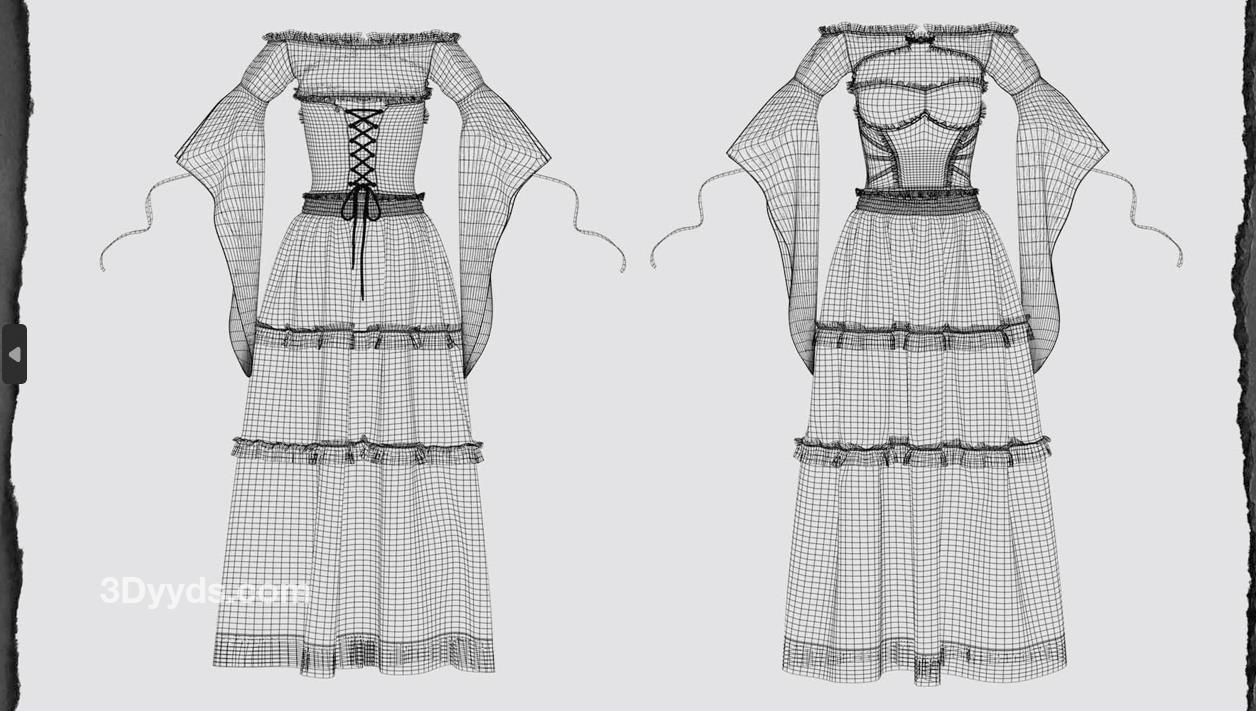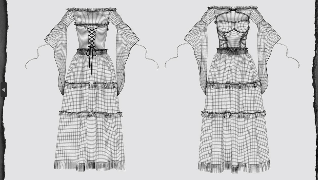 此服装由 Marvelous Designer 制作,随后在 3ds Max 中重新网格化并完成。