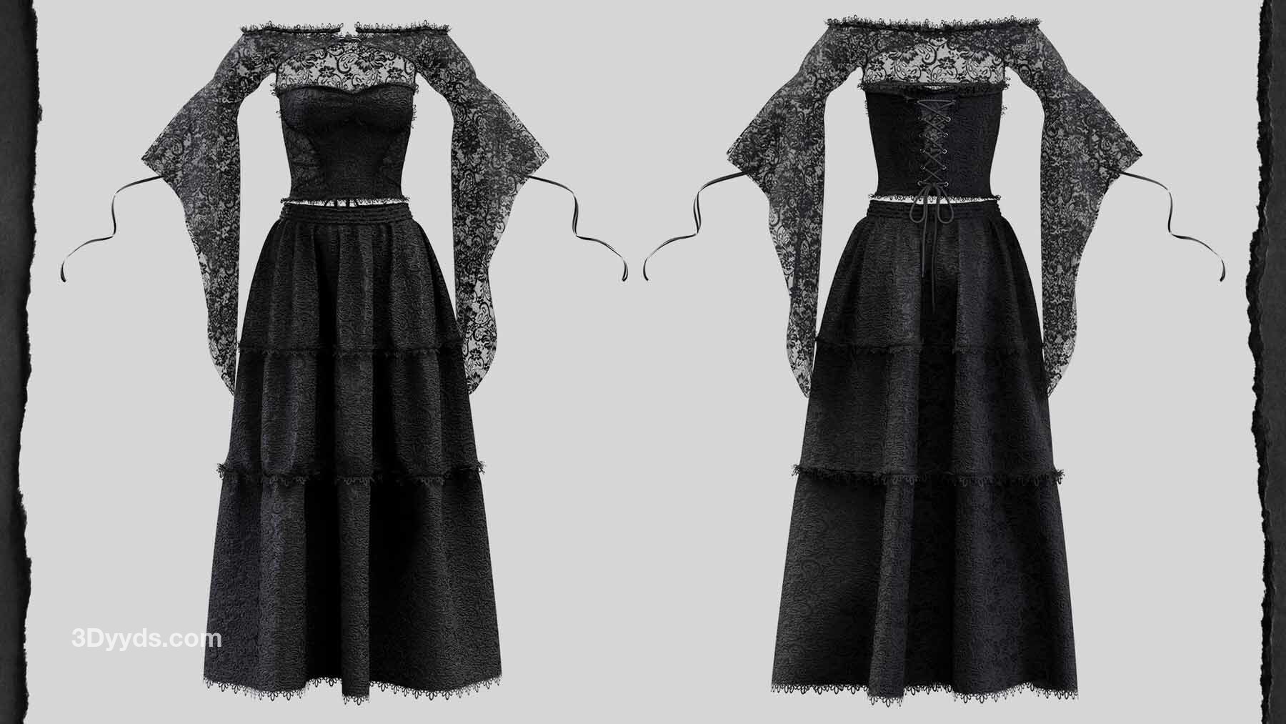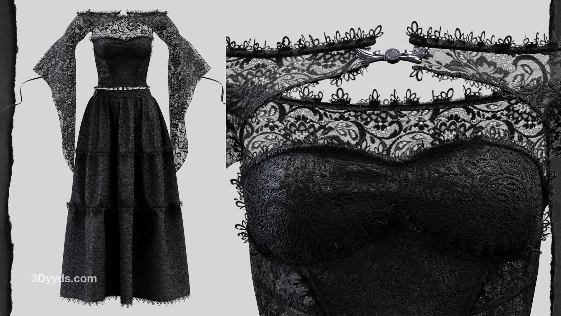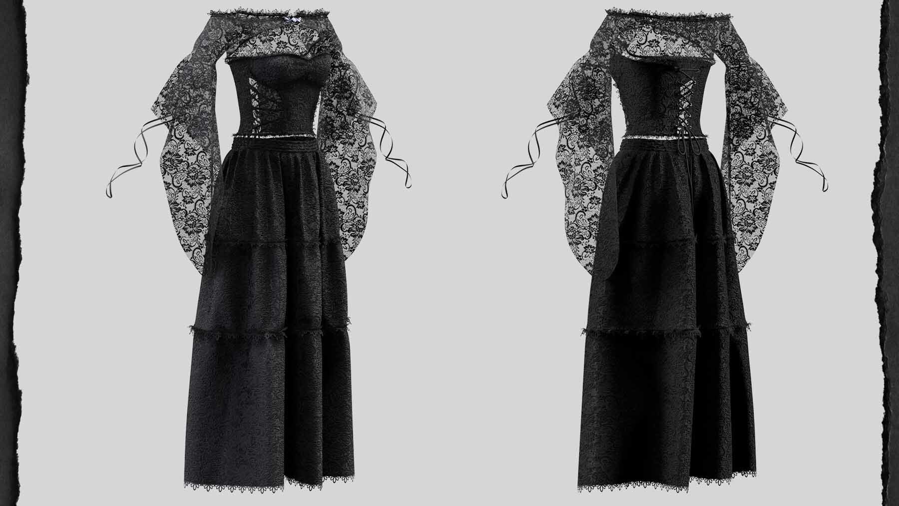此服装由 Marvelous Designer 制作,随后在 3ds Max 中重新网格化并完成。