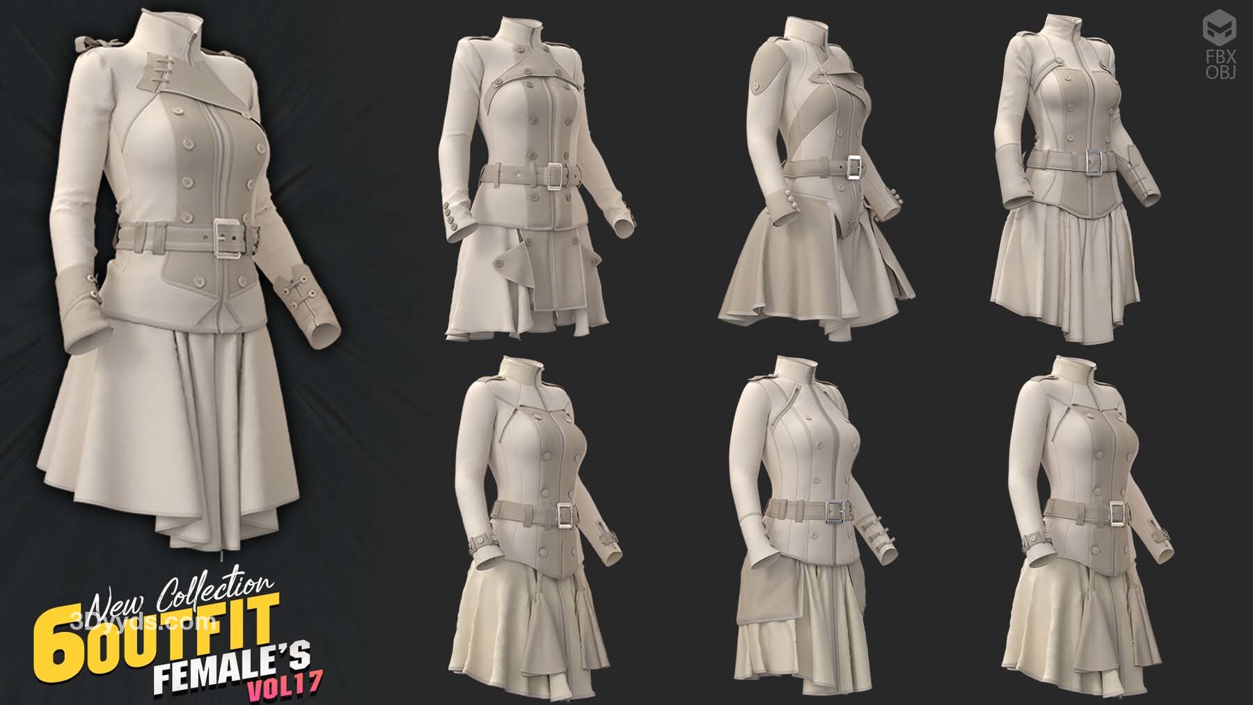 6款女性服装模型,您可以轻松将其用作其他产品的基础模型。