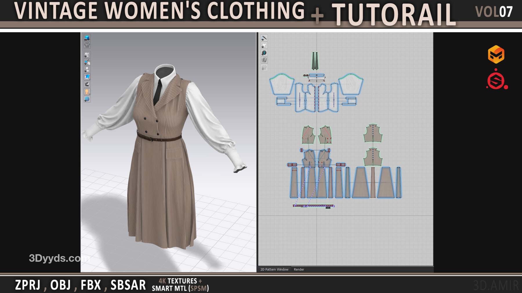 fbx-obj-zprj-女士复古长裙