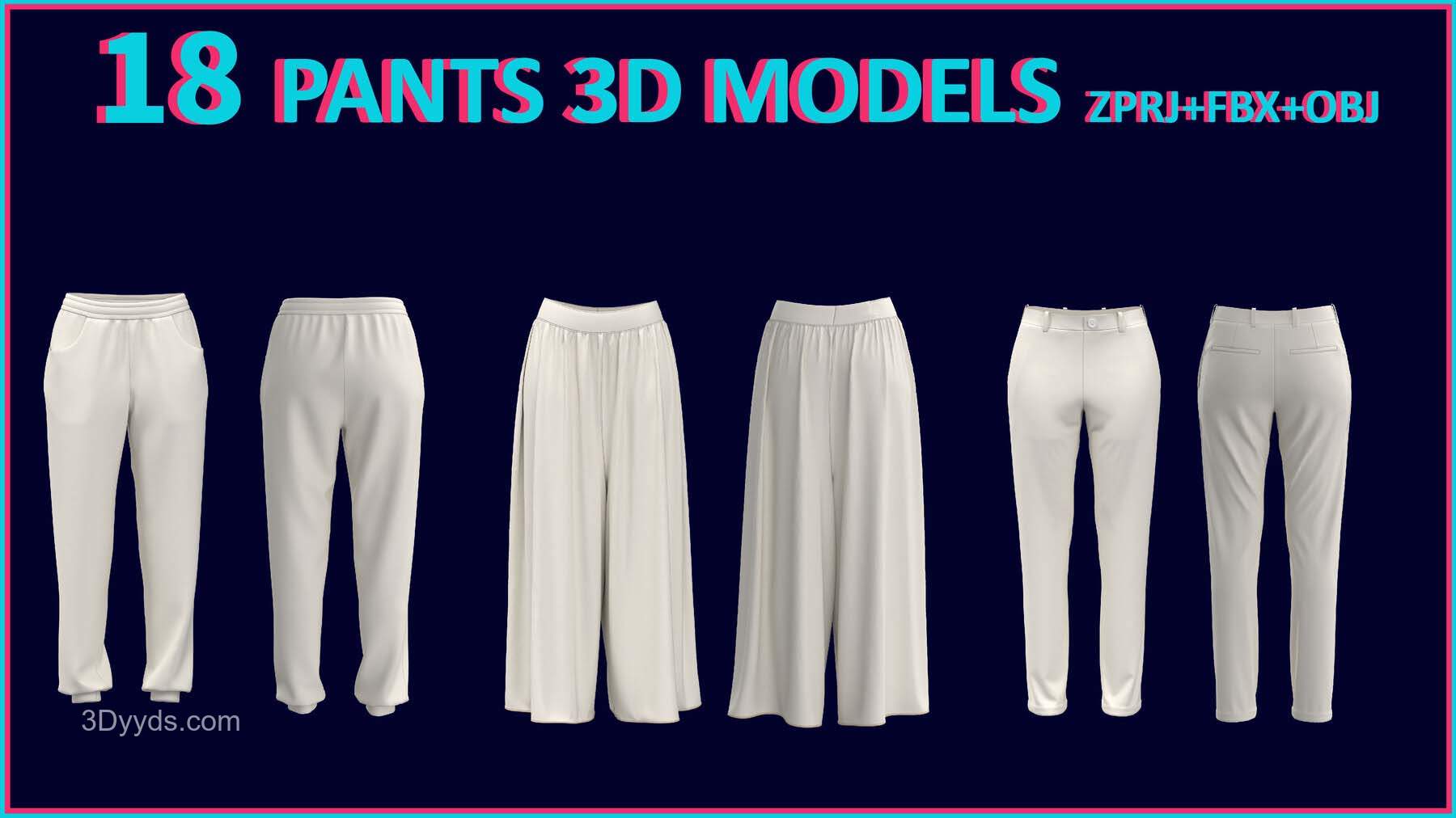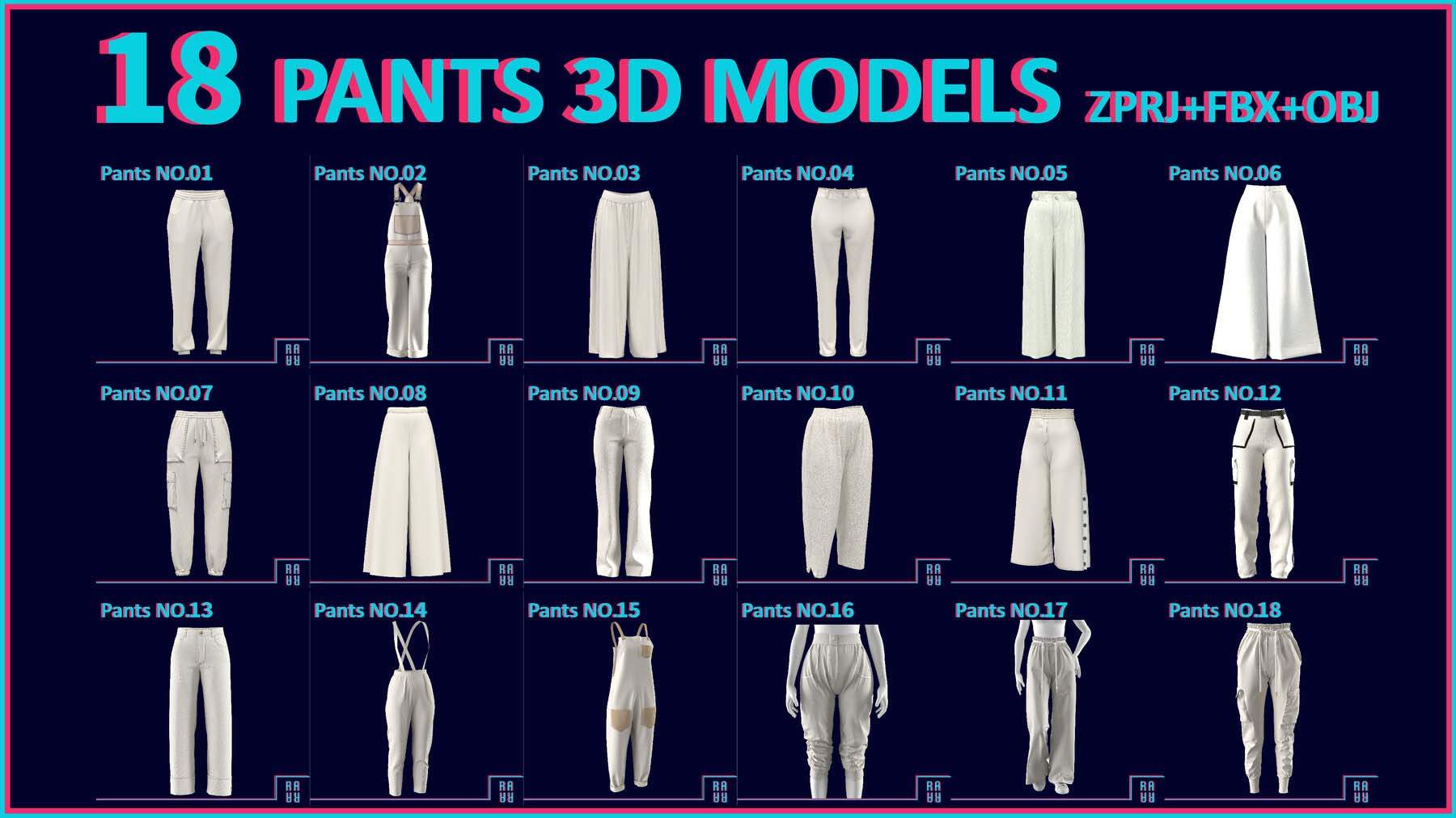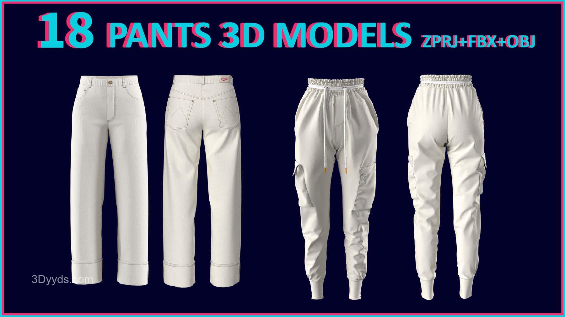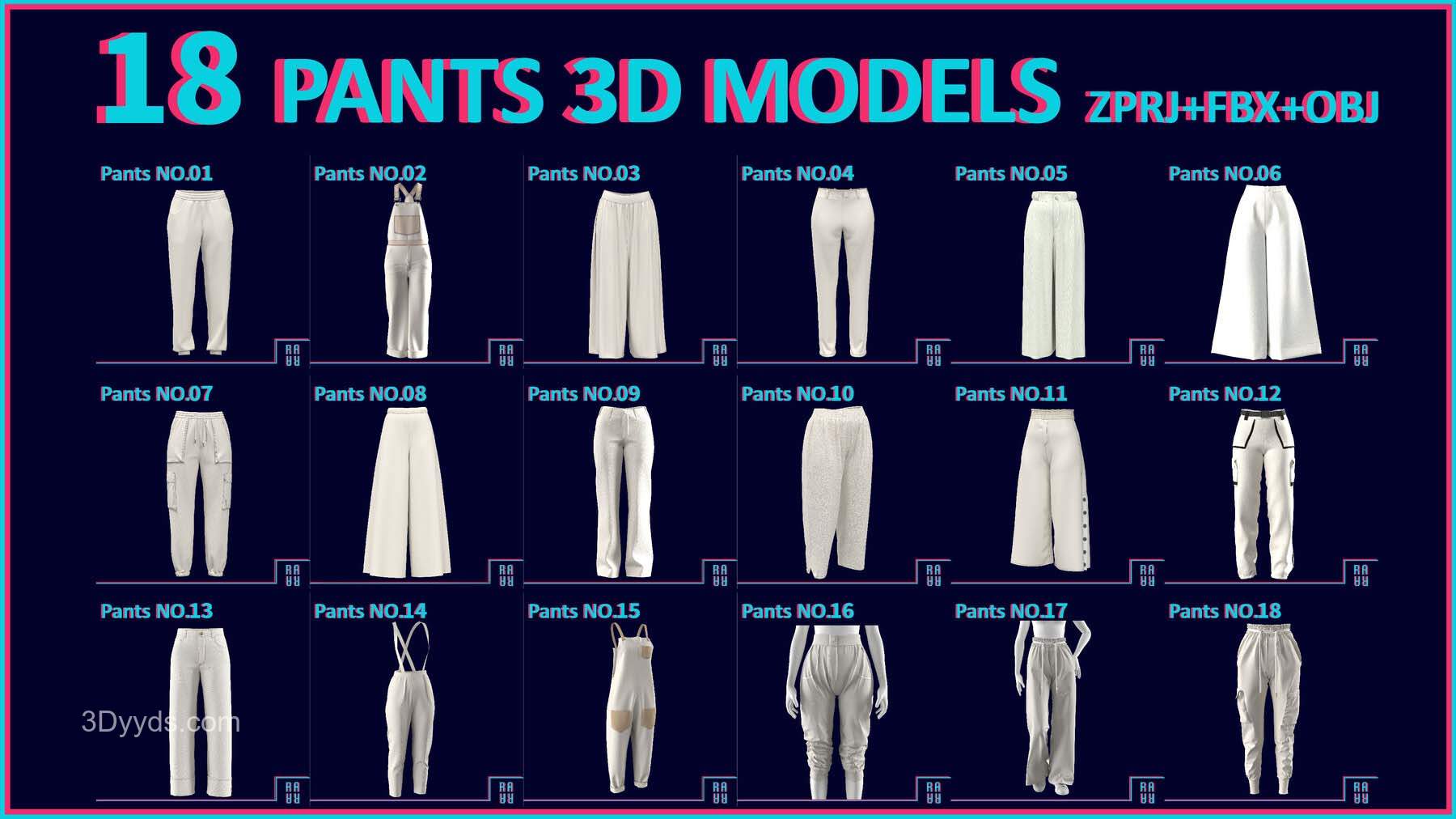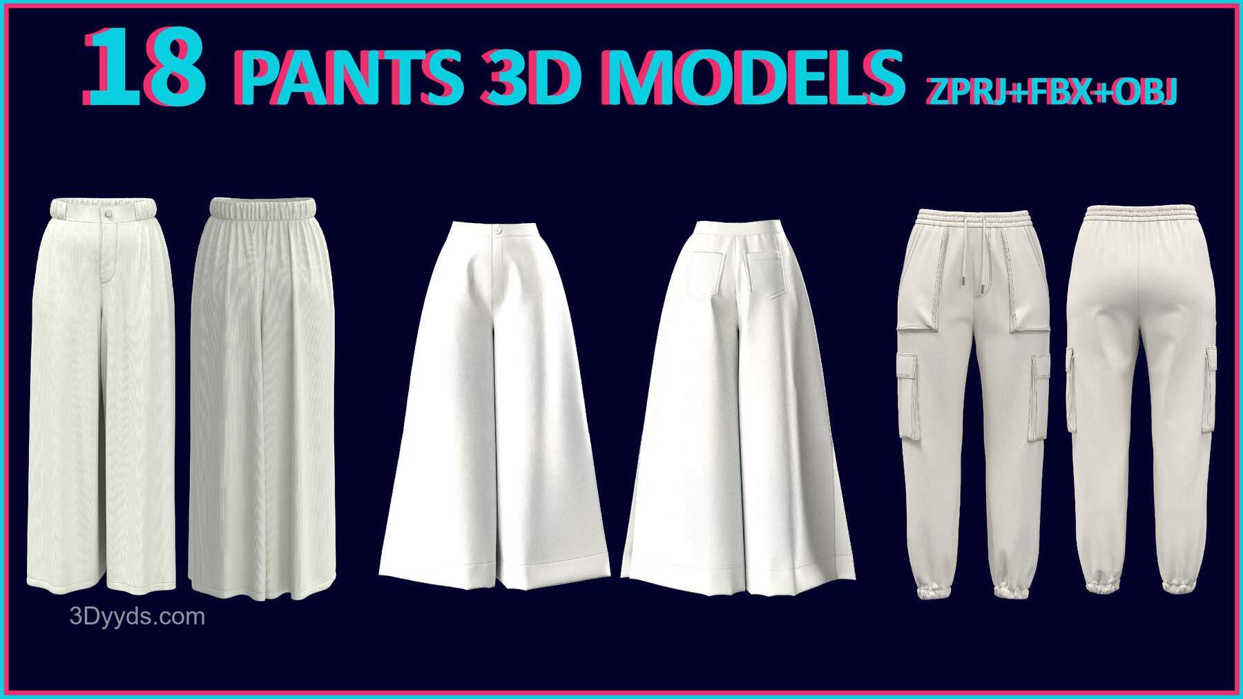 18个Marvelous Designer / CLO3D .ZPRJ项目文件(包括四边形网格和UV映射)