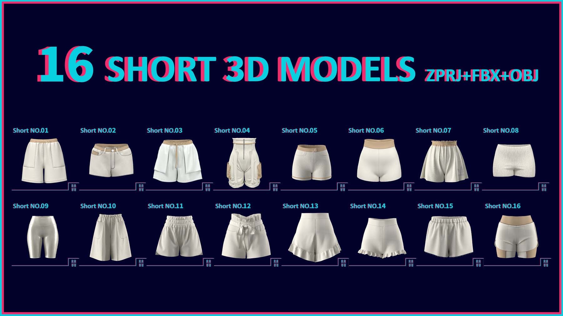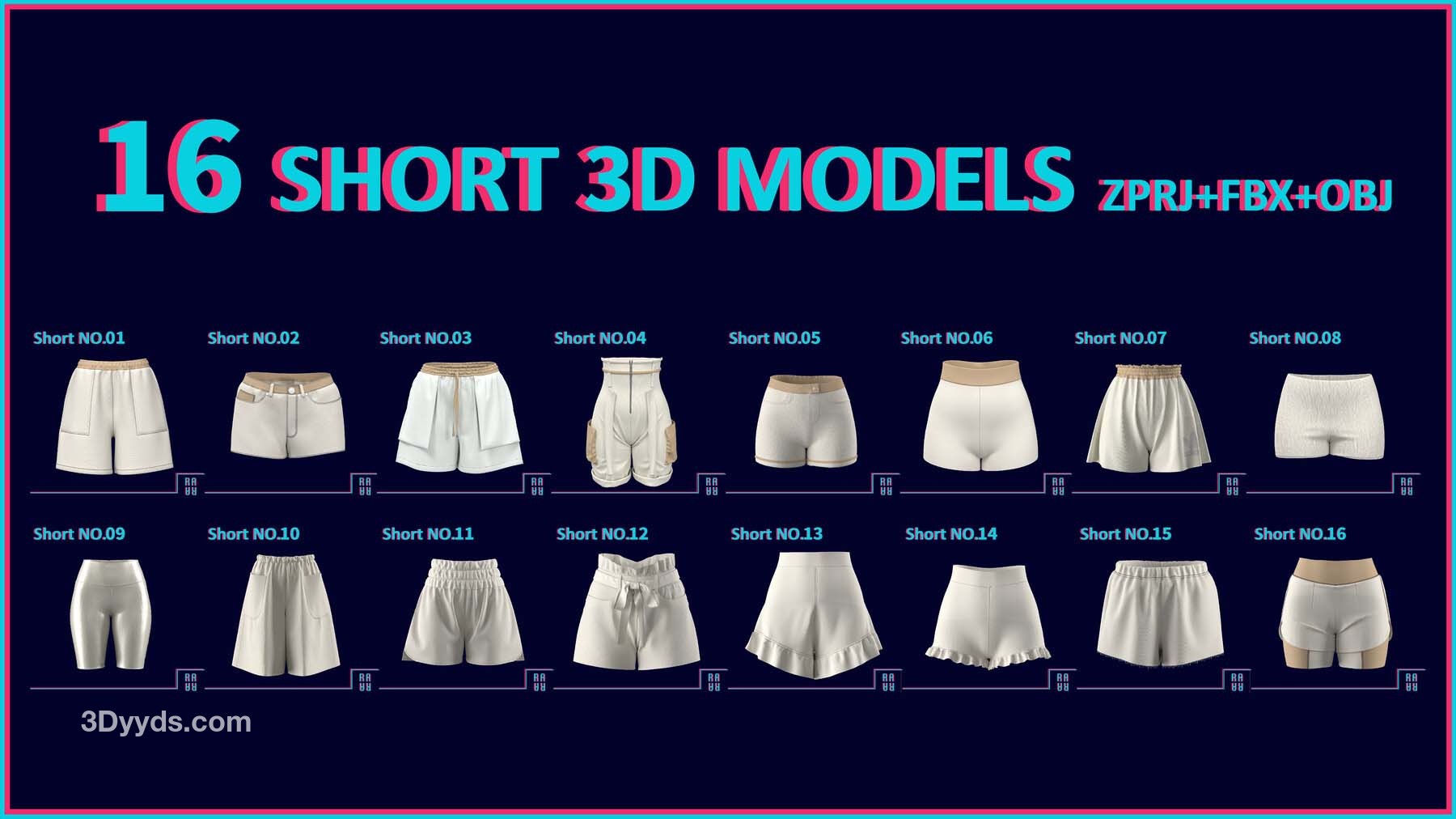 16个Marvelous Designer / CLO3D .ZPRJ项目文件(包括四边形网格和UV映射)