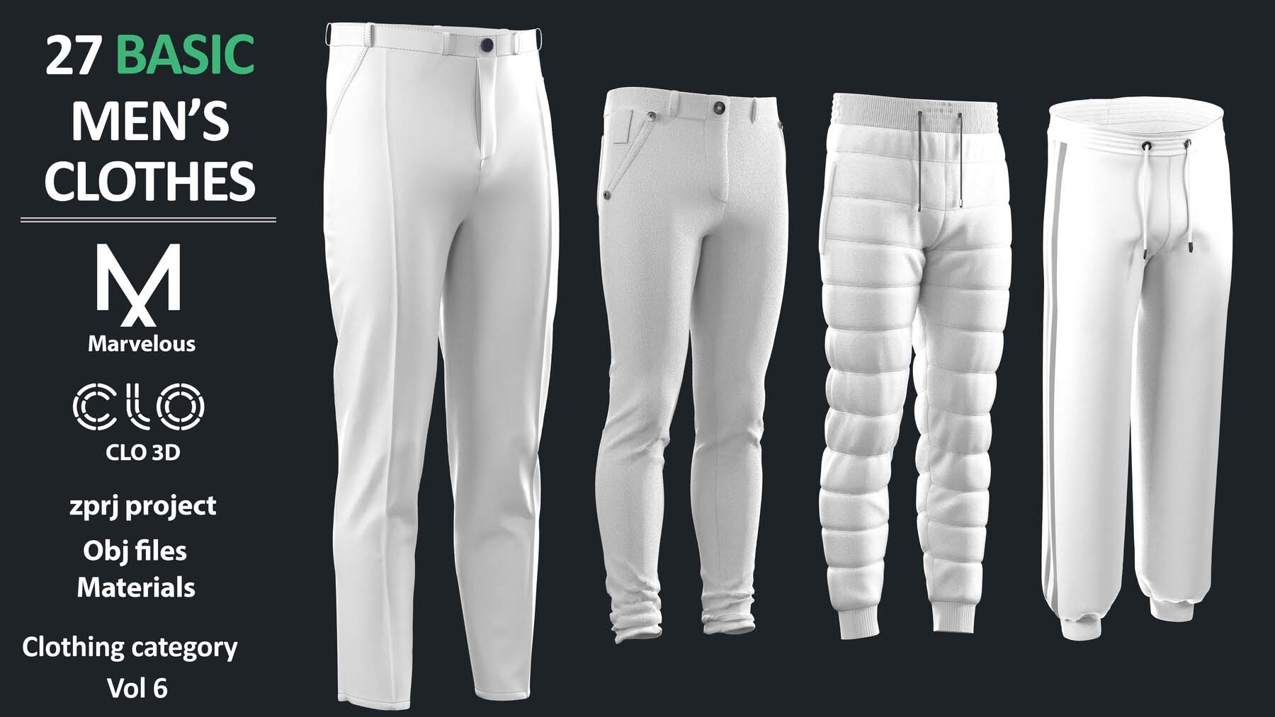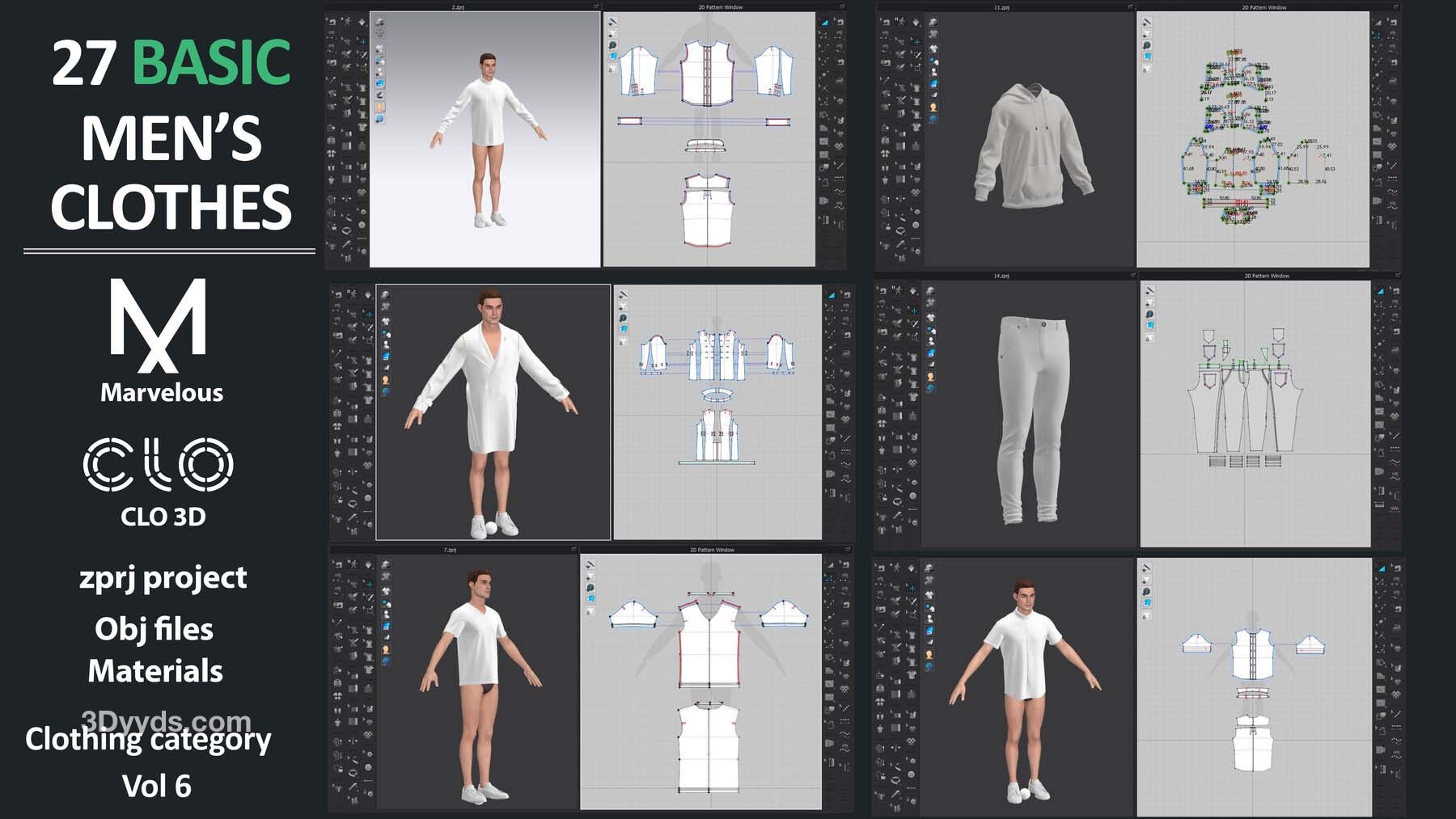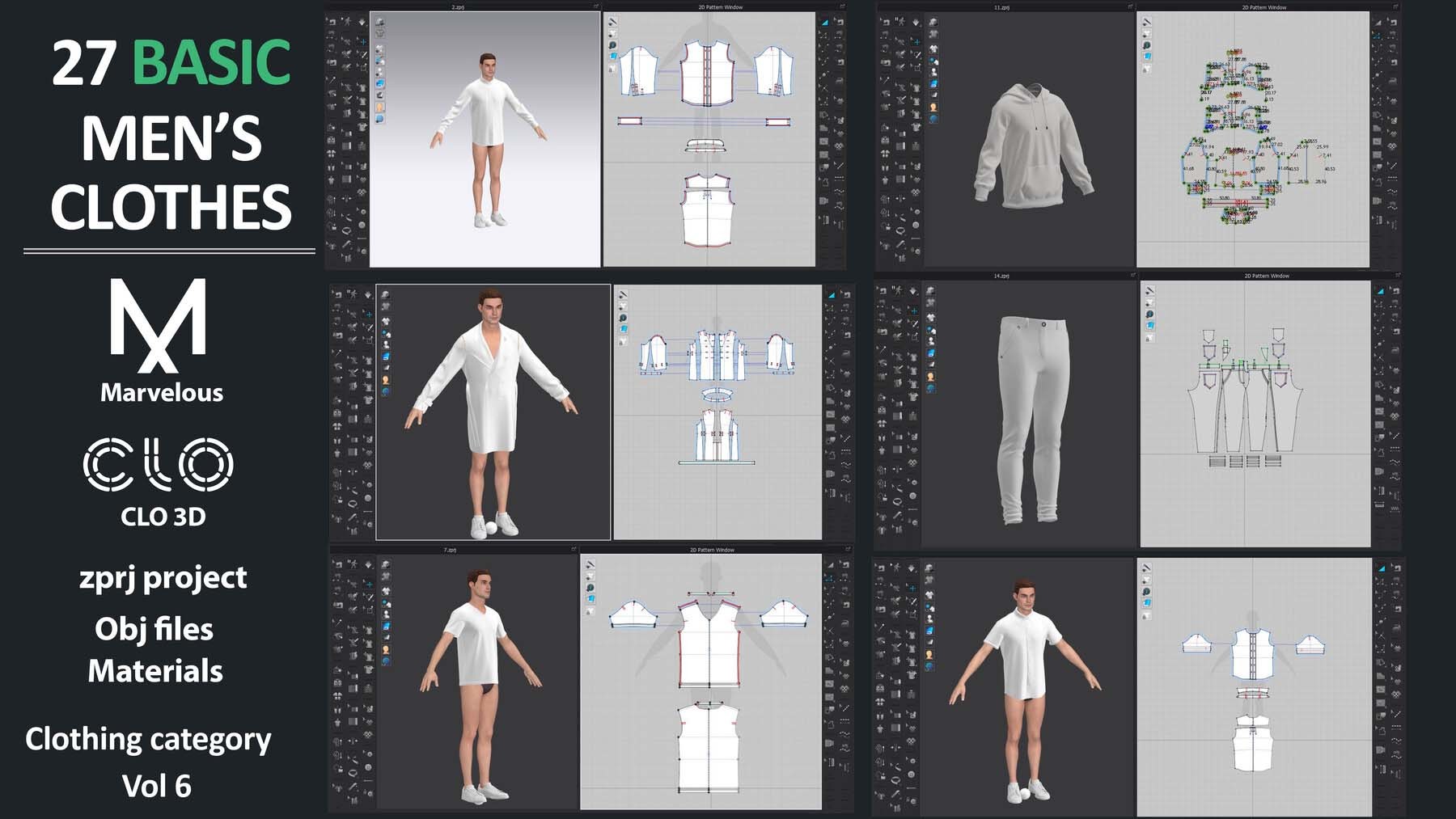 27个Marvelous Designer或Clo3D项目文件ZPRJ(A Pose)+ 材质