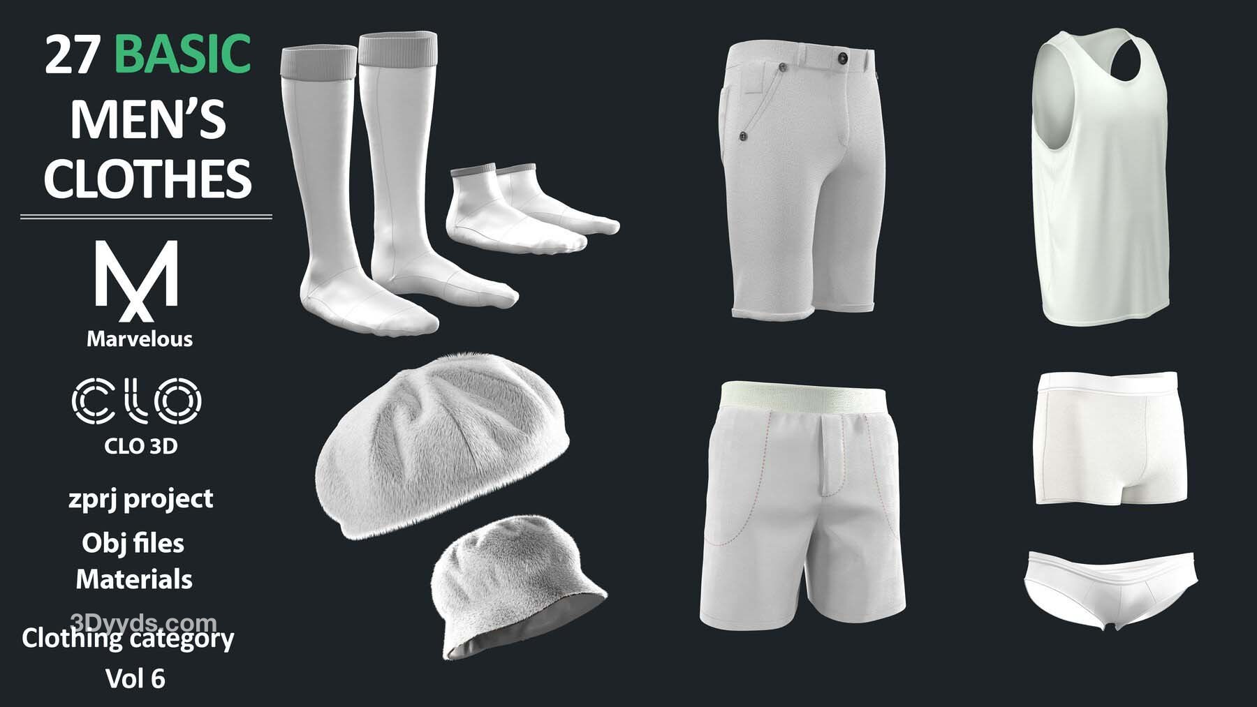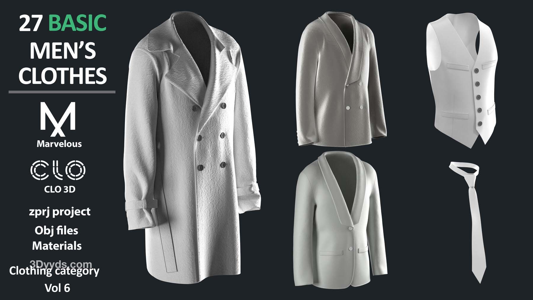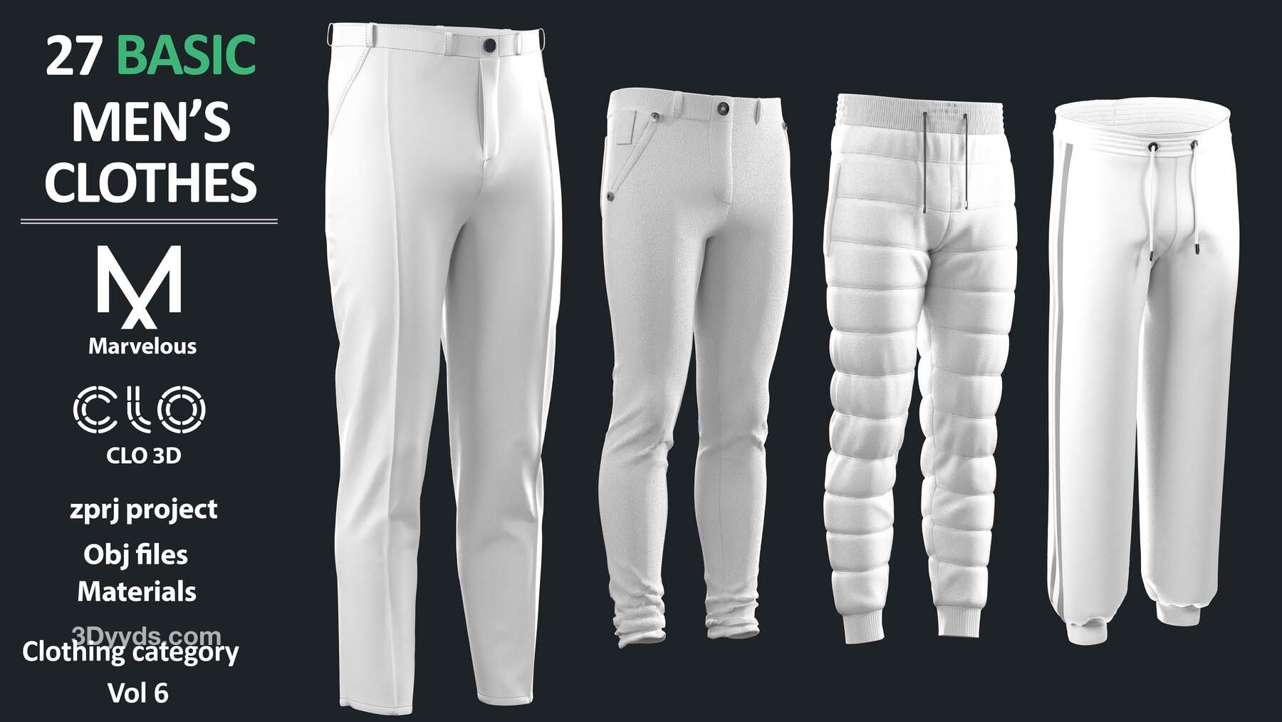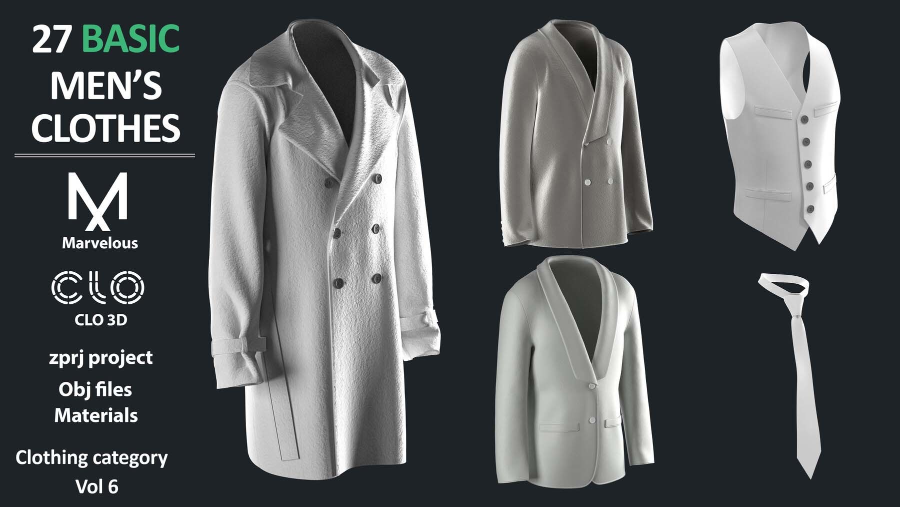 27个Marvelous Designer或Clo3D项目文件ZPRJ(A Pose)+ 材质