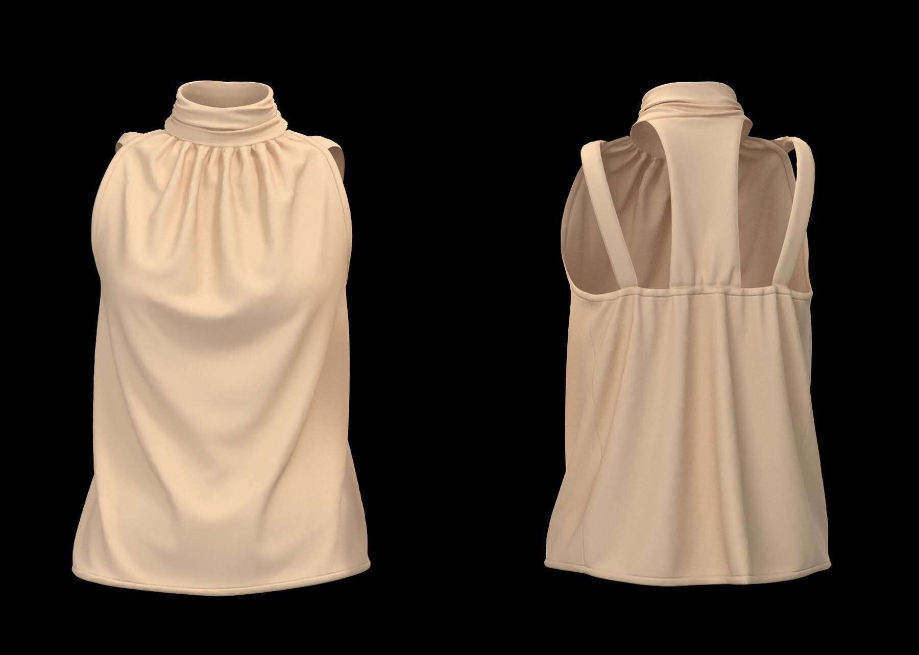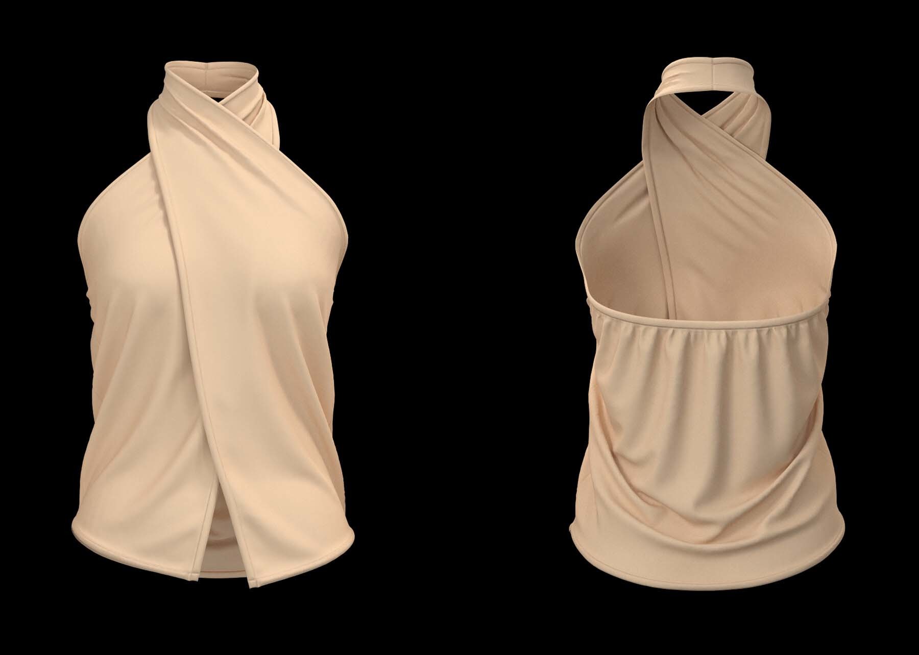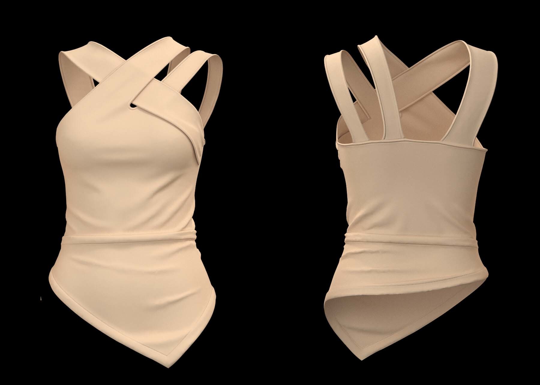 这些女性上衣模型是在 Clo3D(7.1)软件中创建和渲染的,使用了四边形网格。