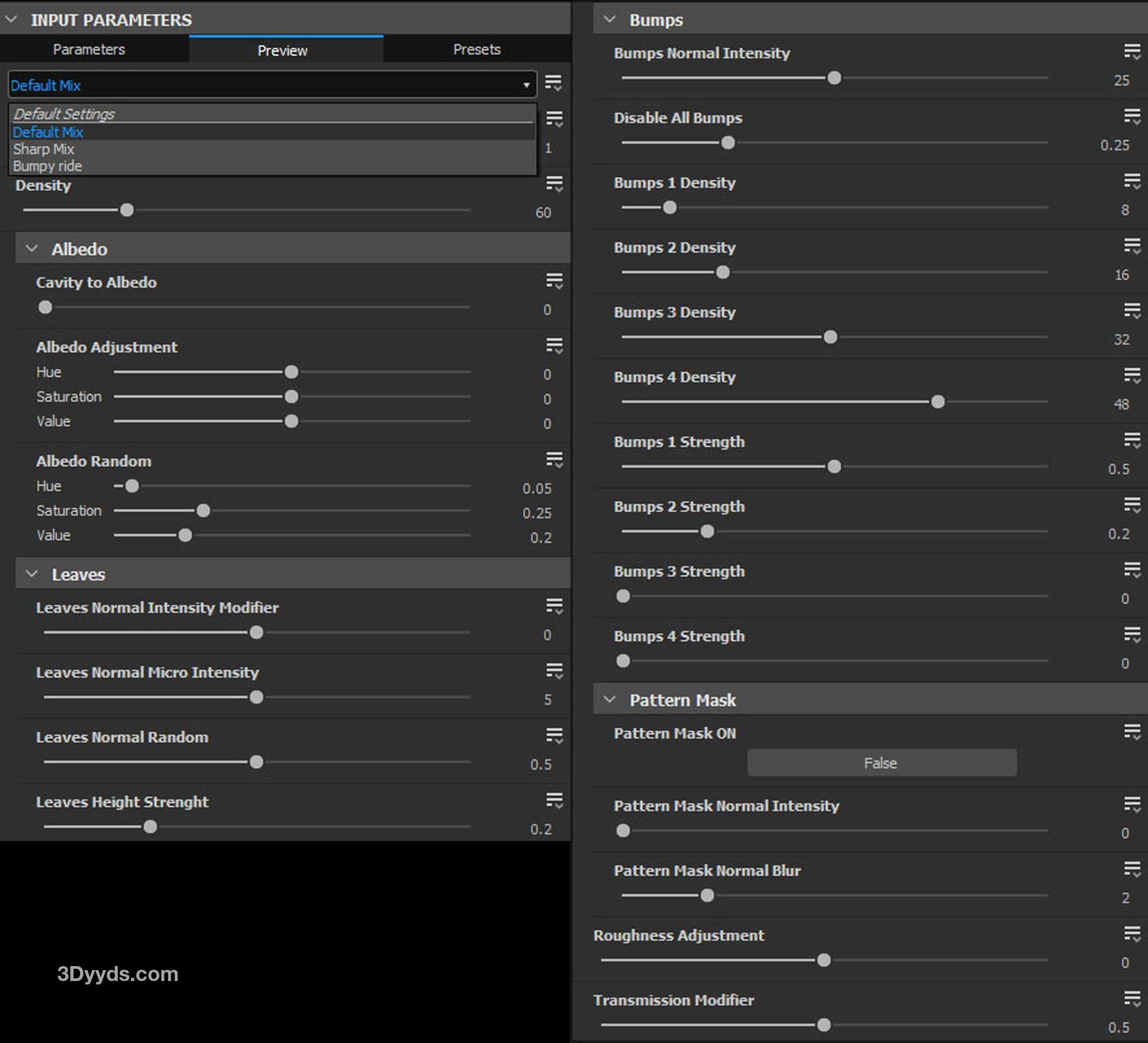 Substance Designer/Painter 的苔藓材质,具有公开参数: