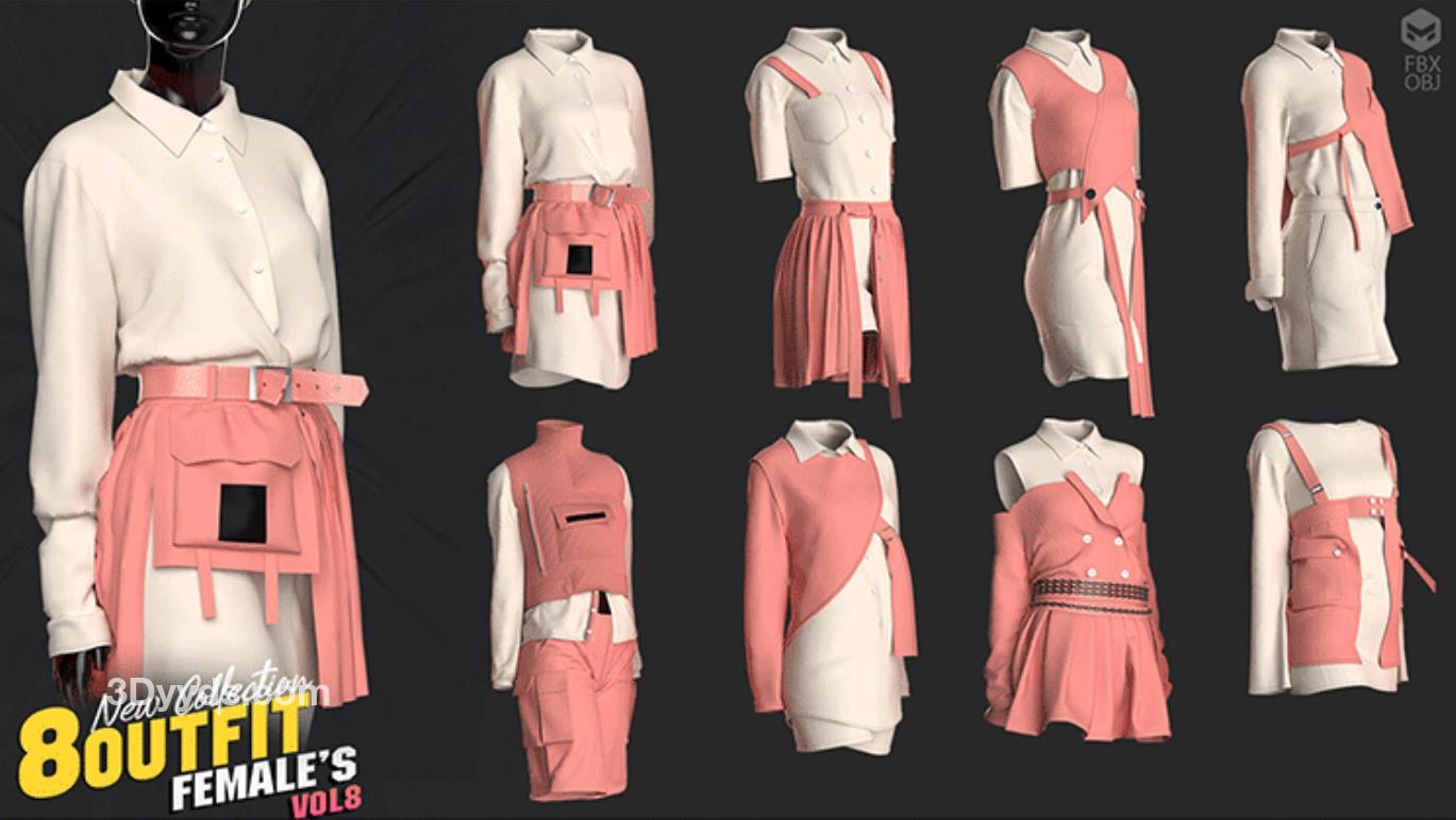 fbx-obj-zprj-8款女性衬衫短裙短裤套装