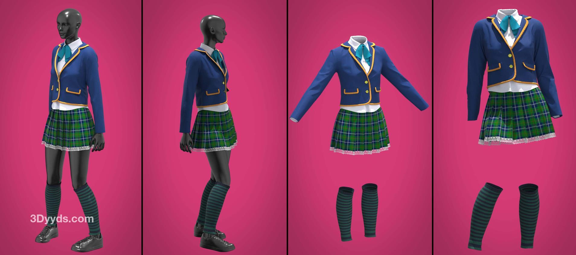 png-fbx-obj-zprj-女性校服套装长筒袜