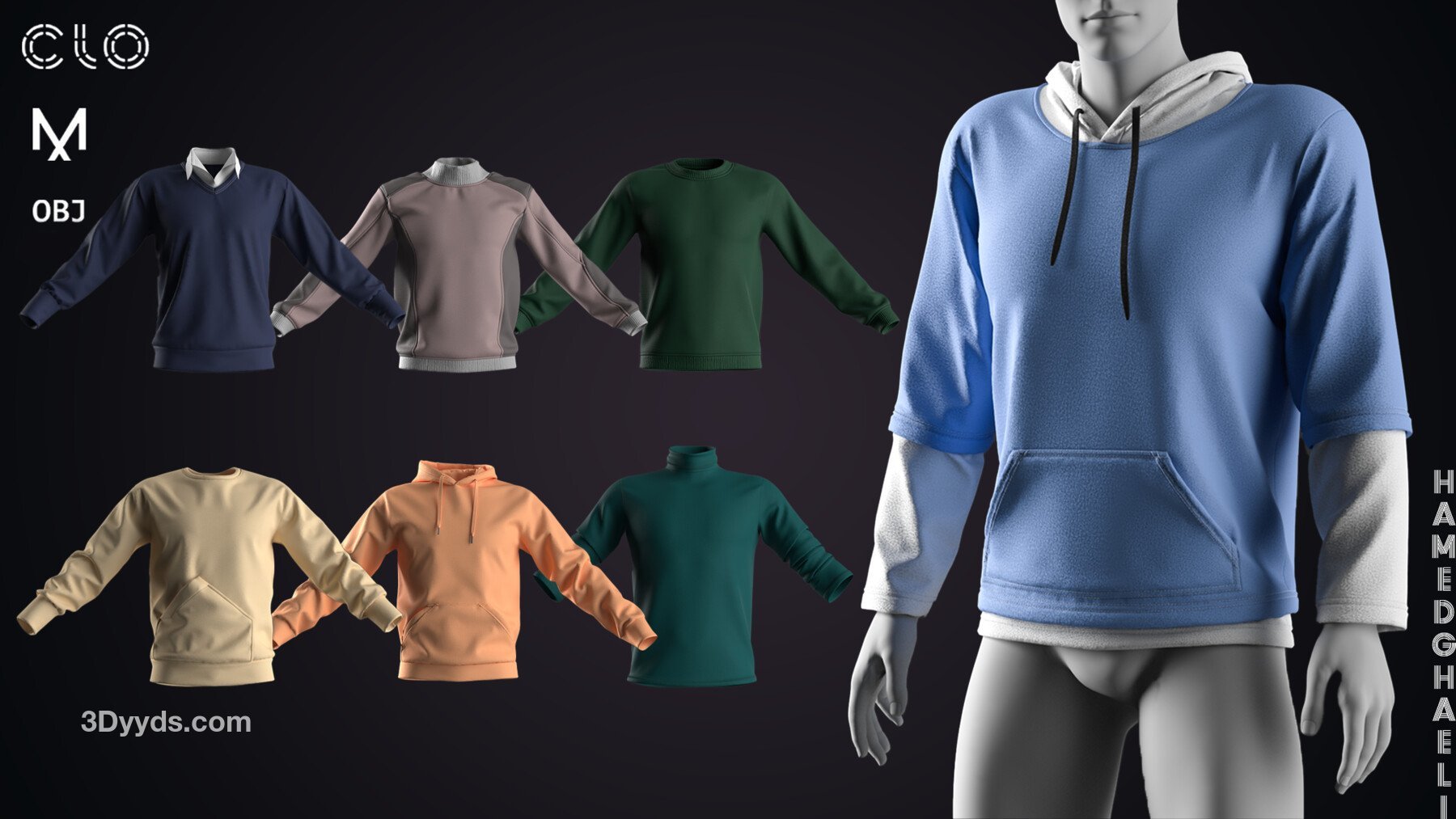 这是一个包含 7 种男士卫衣和连帽衫的套件。