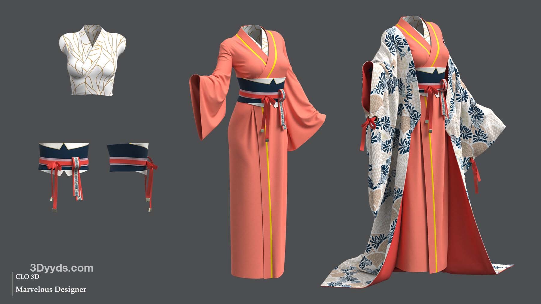 Marvelous Designer/CLO3D 文件(A 站姿,无顶缝,CLO3D 纹理)