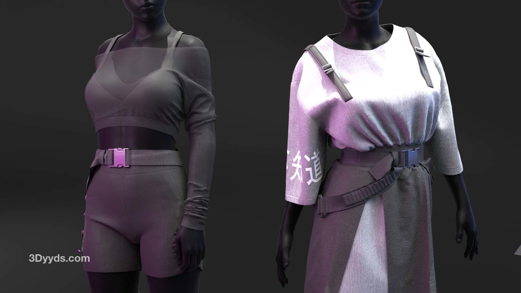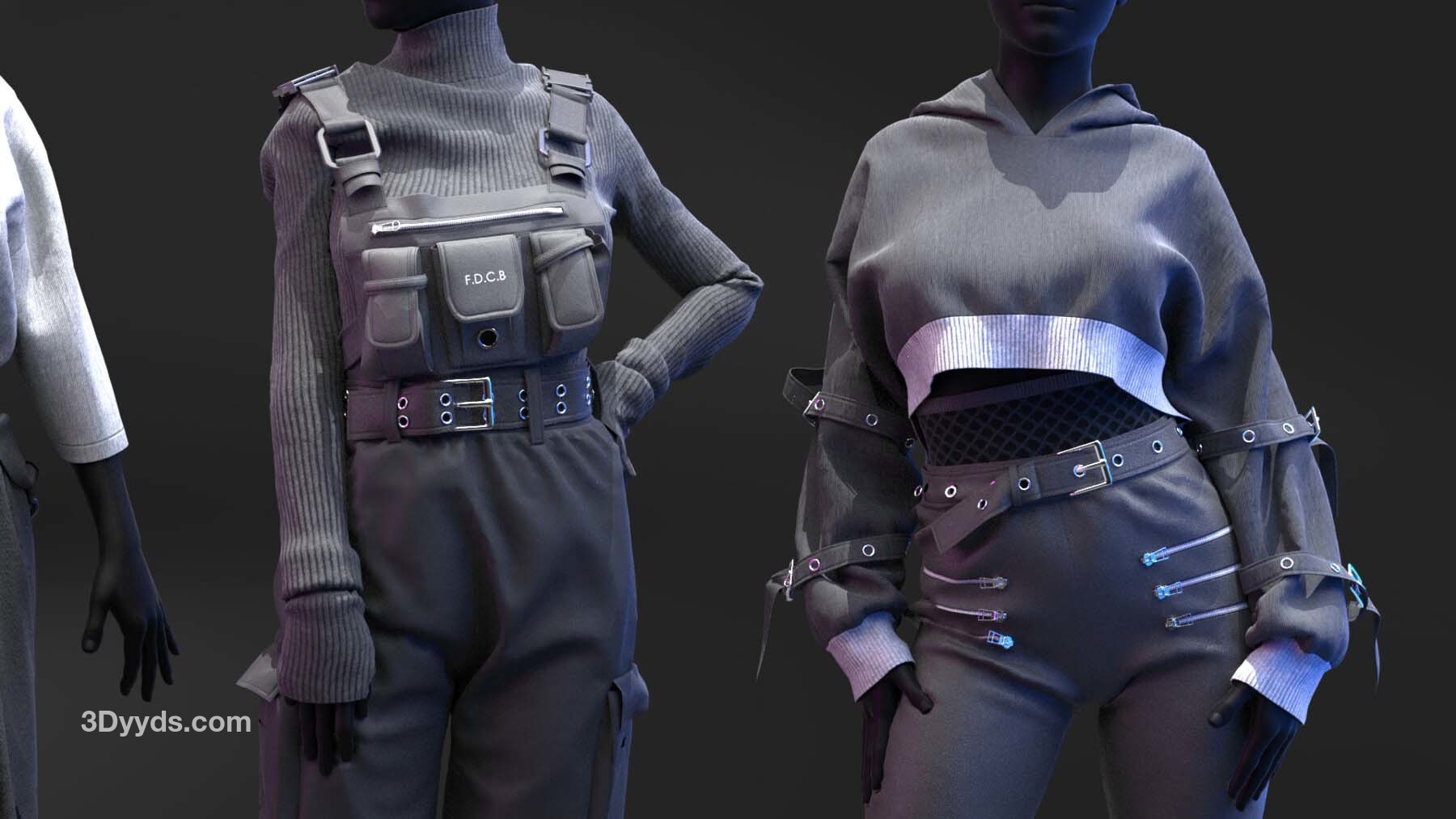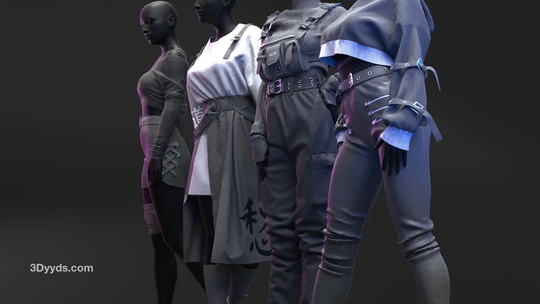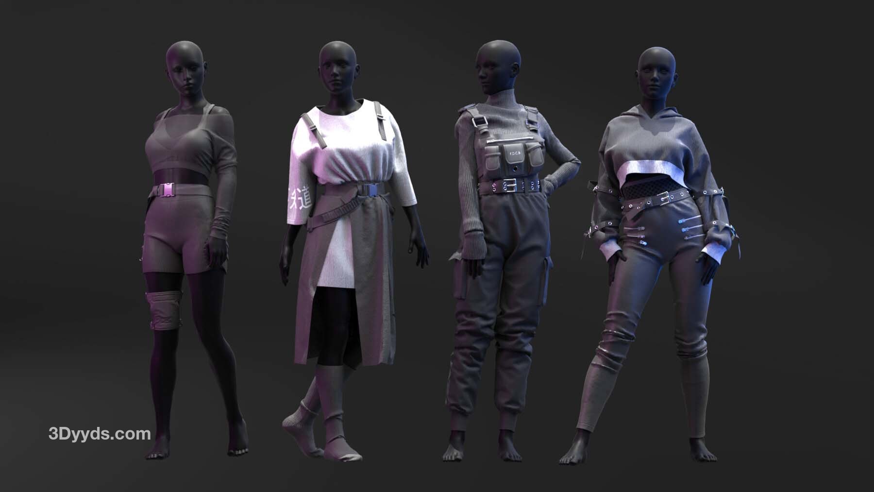 jpg-png-fbx-obj-zprj-4套女性灰色系时尚套装衬衫裤子