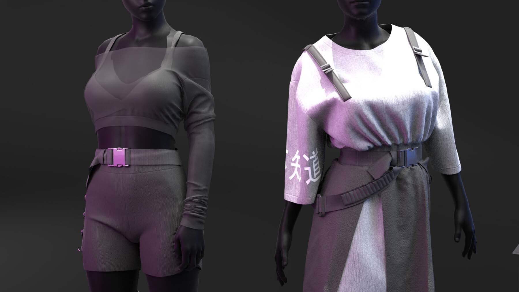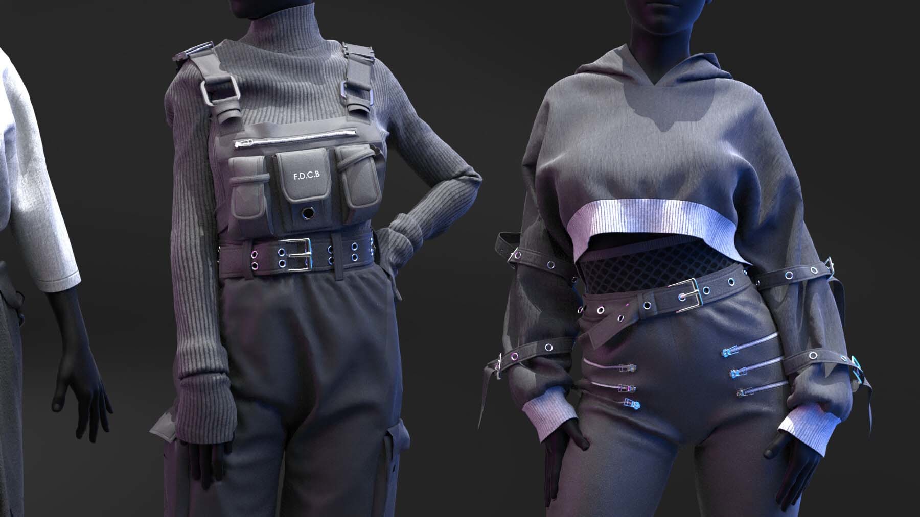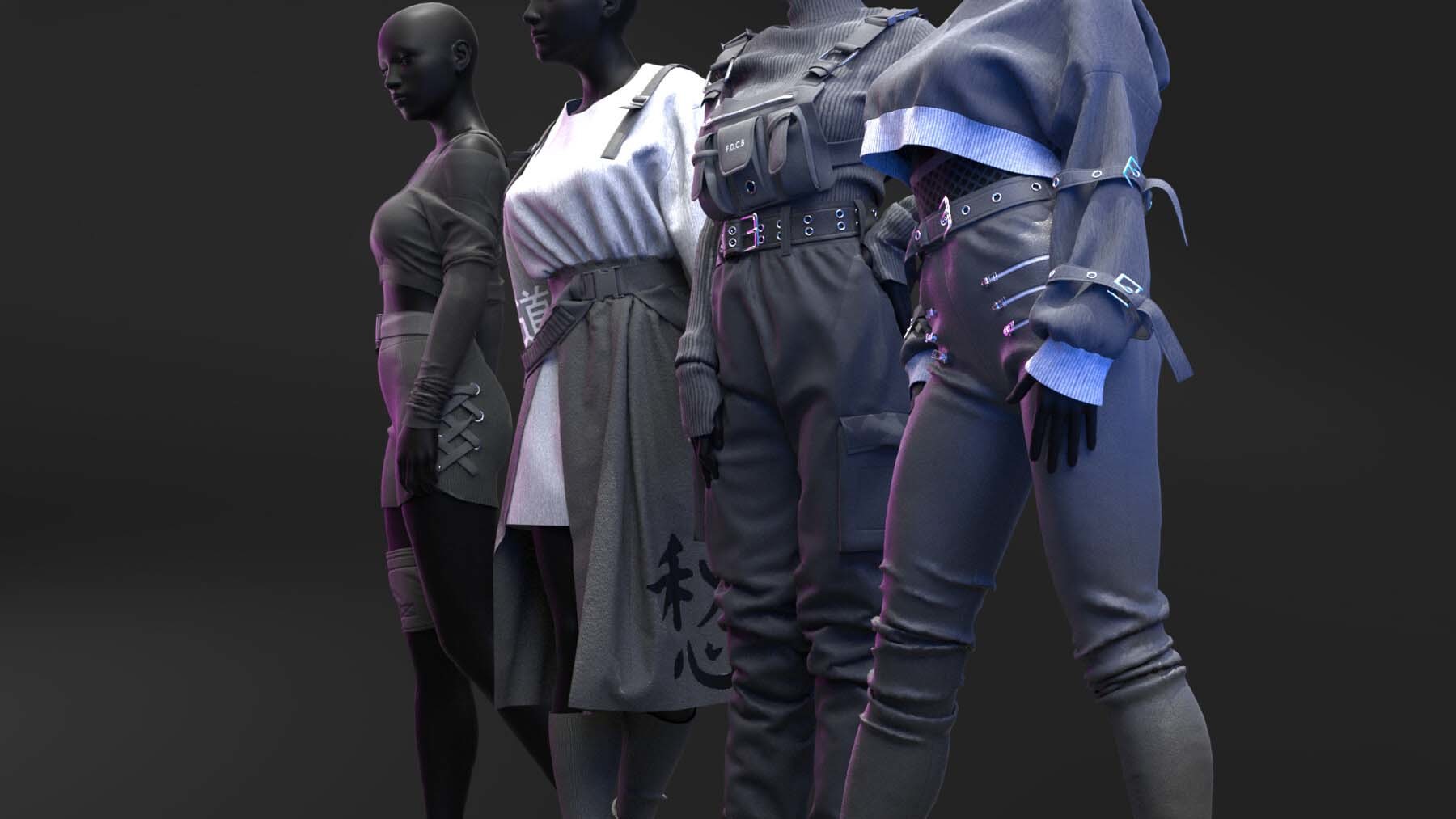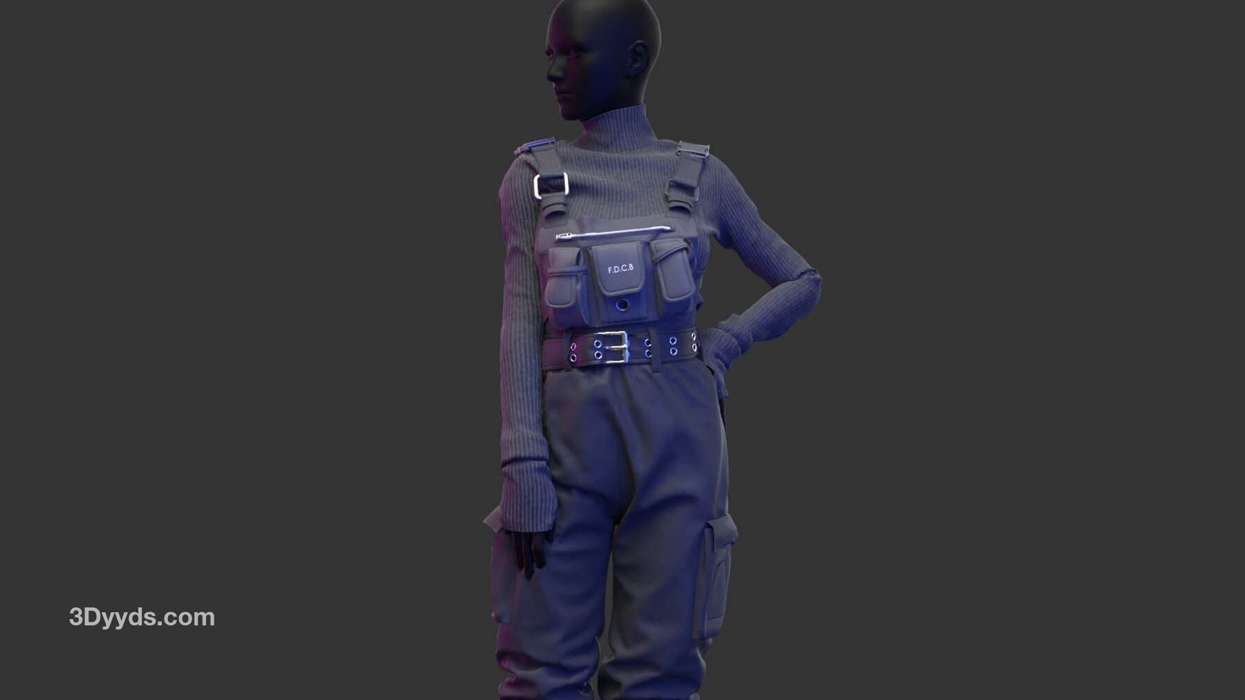 jpg-png-fbx-obj-zprj-4套女性灰色系时尚套装衬衫裤子