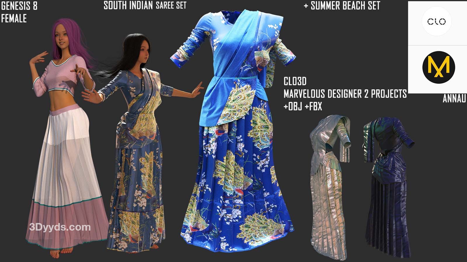 jpg-png-fbx-obj-zprj-南印度纱丽套装裙子连衣裙