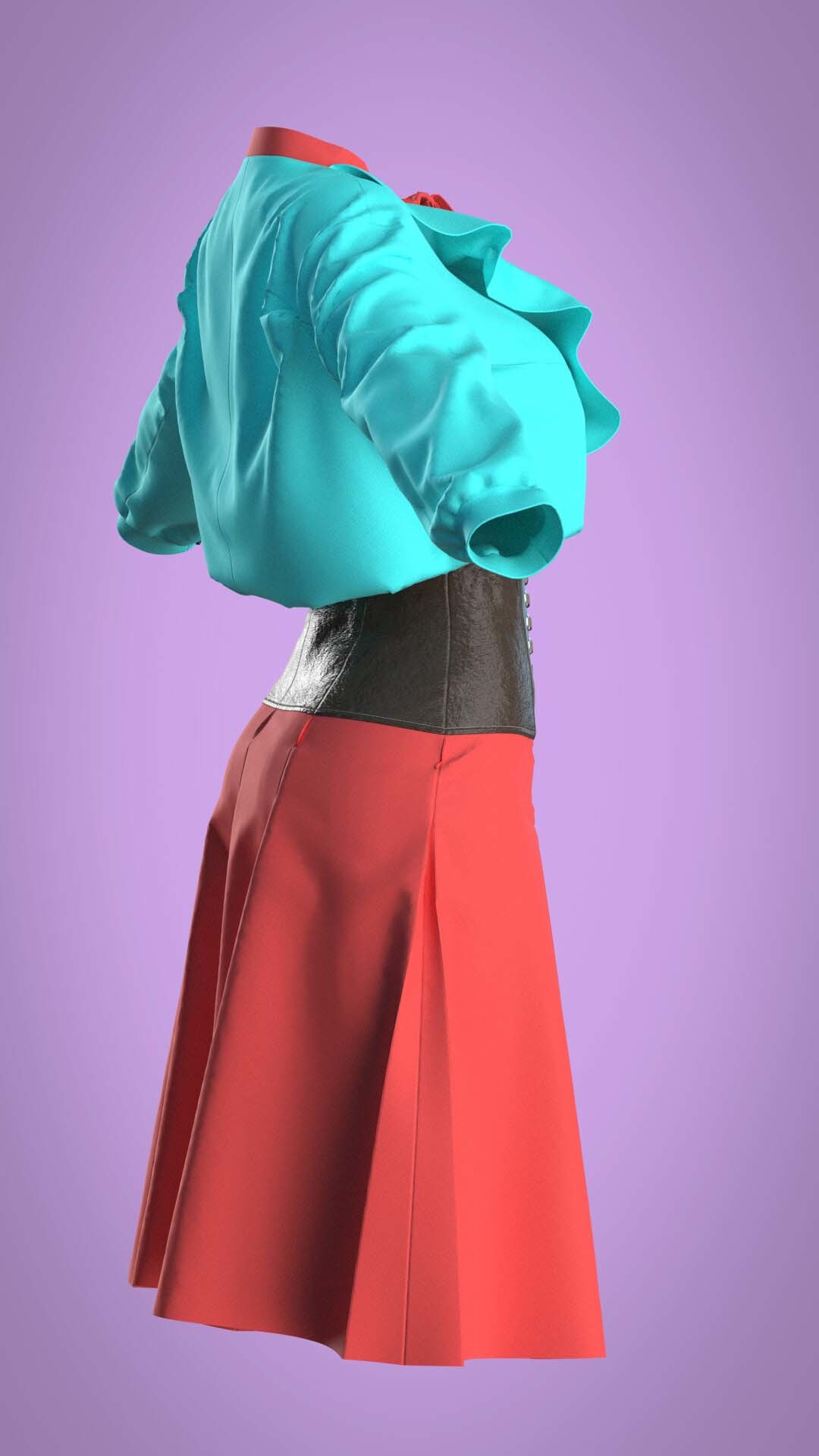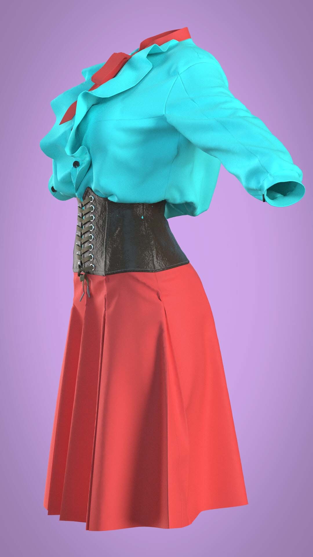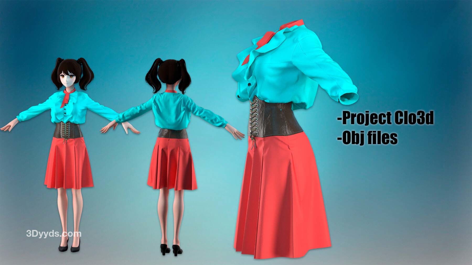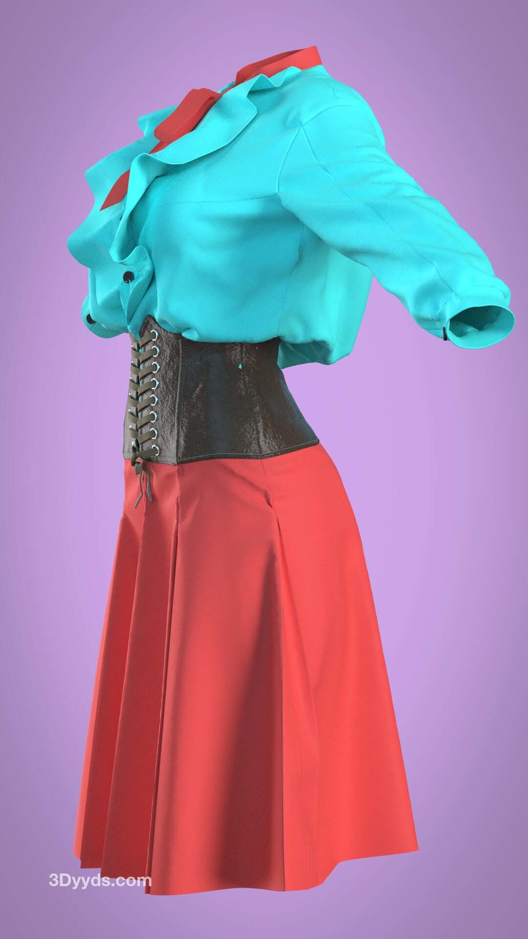 MD282日韩风制服套装长袖衬衫束腰短裙裙子