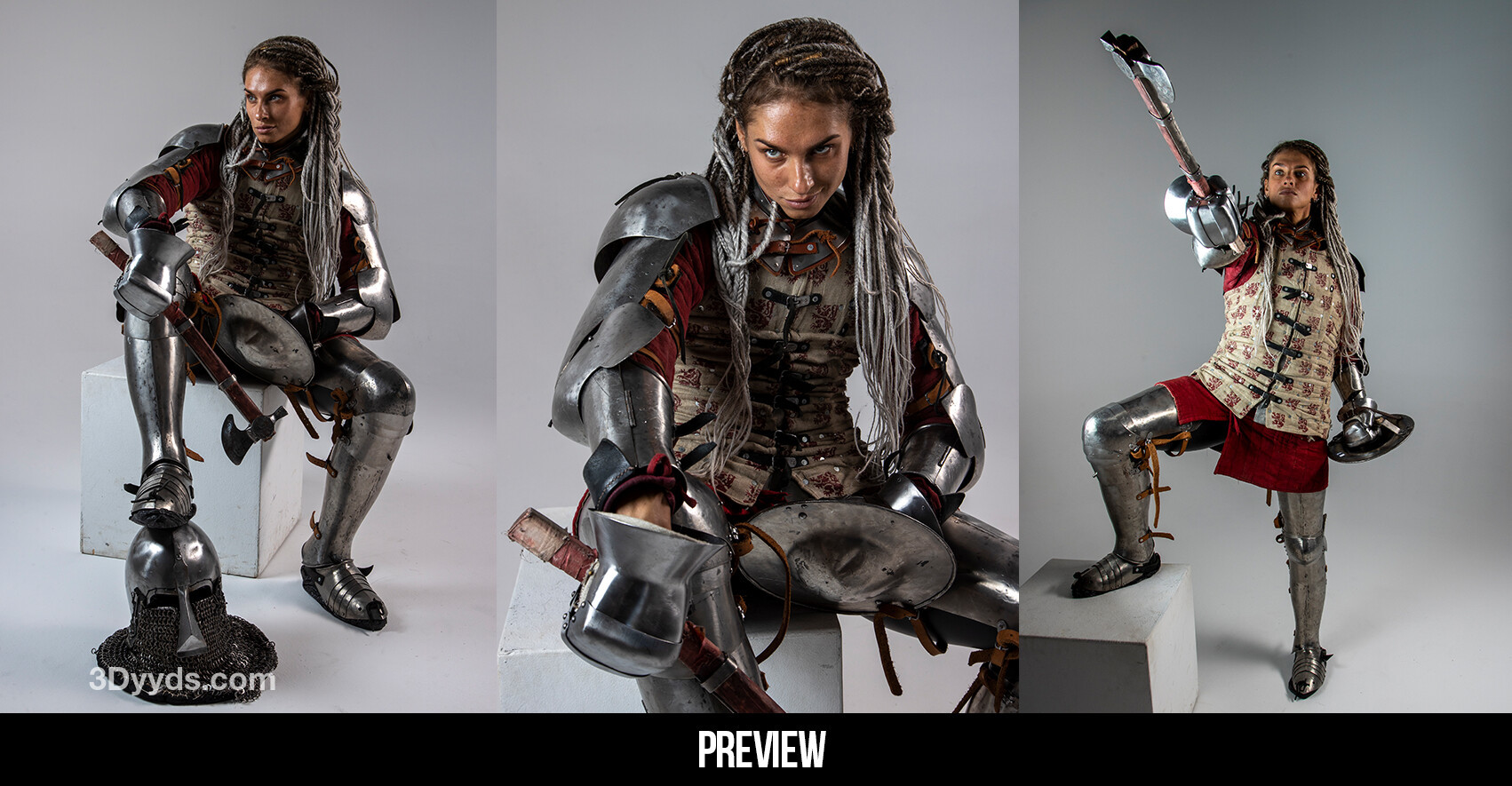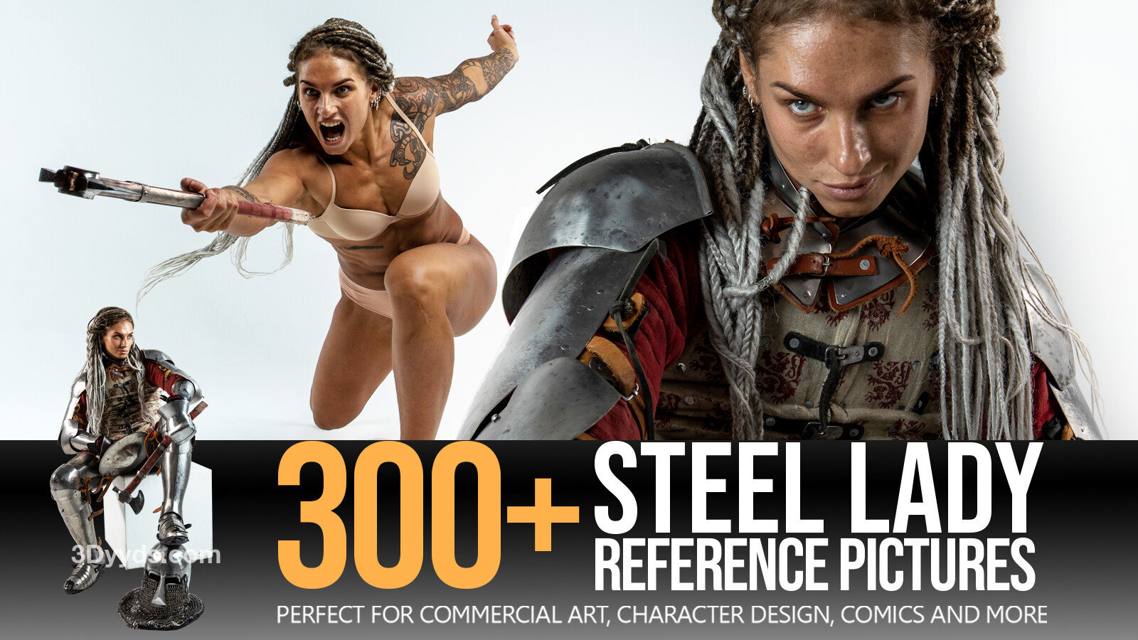 此版本包含 300 多张高分辨率参考图片,其中包含女骑士角色,包括穿着服装的图片以及以人物为中心的图片。该包还包含 T 和 A 姿势以及一些肖像特写。对于任何从事角色概念、史诗战斗插图、海报艺术和书籍封面设计的艺术家来说,这都是一个很棒的包。