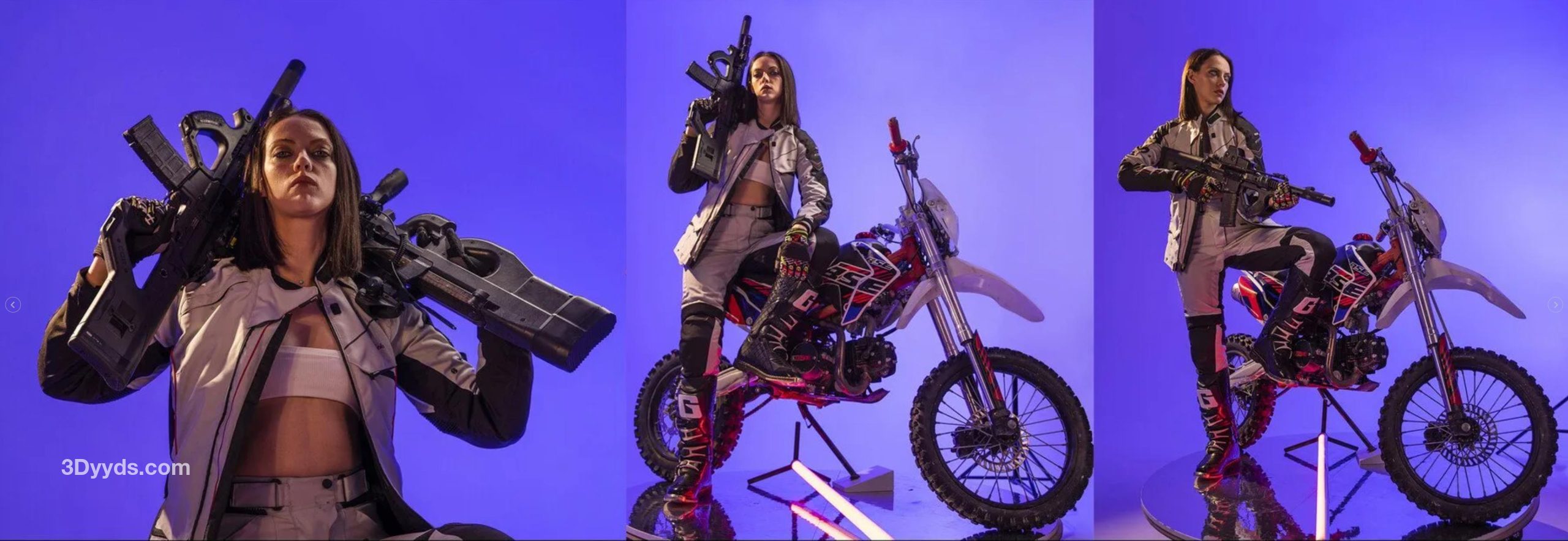 此版本包含 800 多张高分辨率参考图片,其中有一位大胆的女性角色骑着摩托车。该包包含各种角度、不同类型的武器、动态姿势以及旋转姿势、不同的灯光设置、T 形和 A 形姿势等等。如果您正在寻找新的灵感和明亮的图像