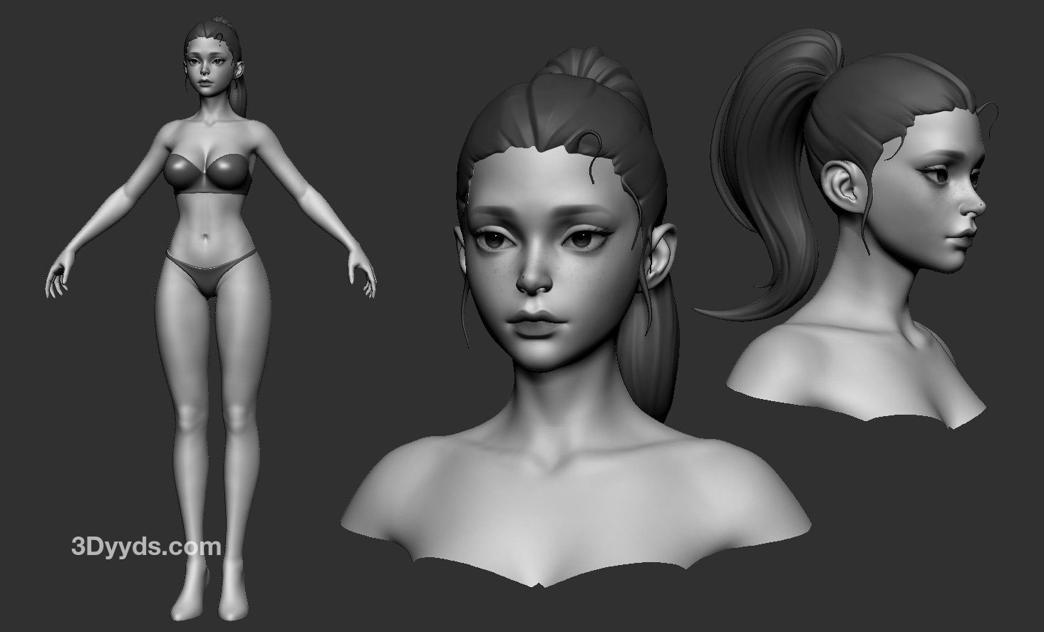 Zbrush女性萝莉模特身体模型雕刻CG模型