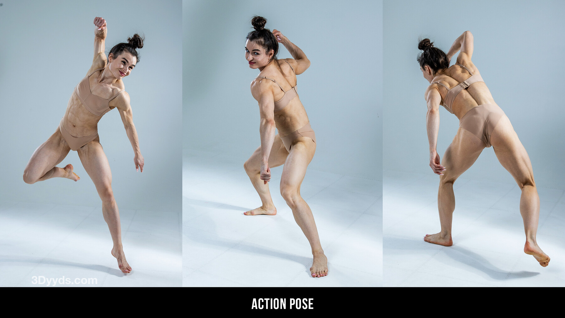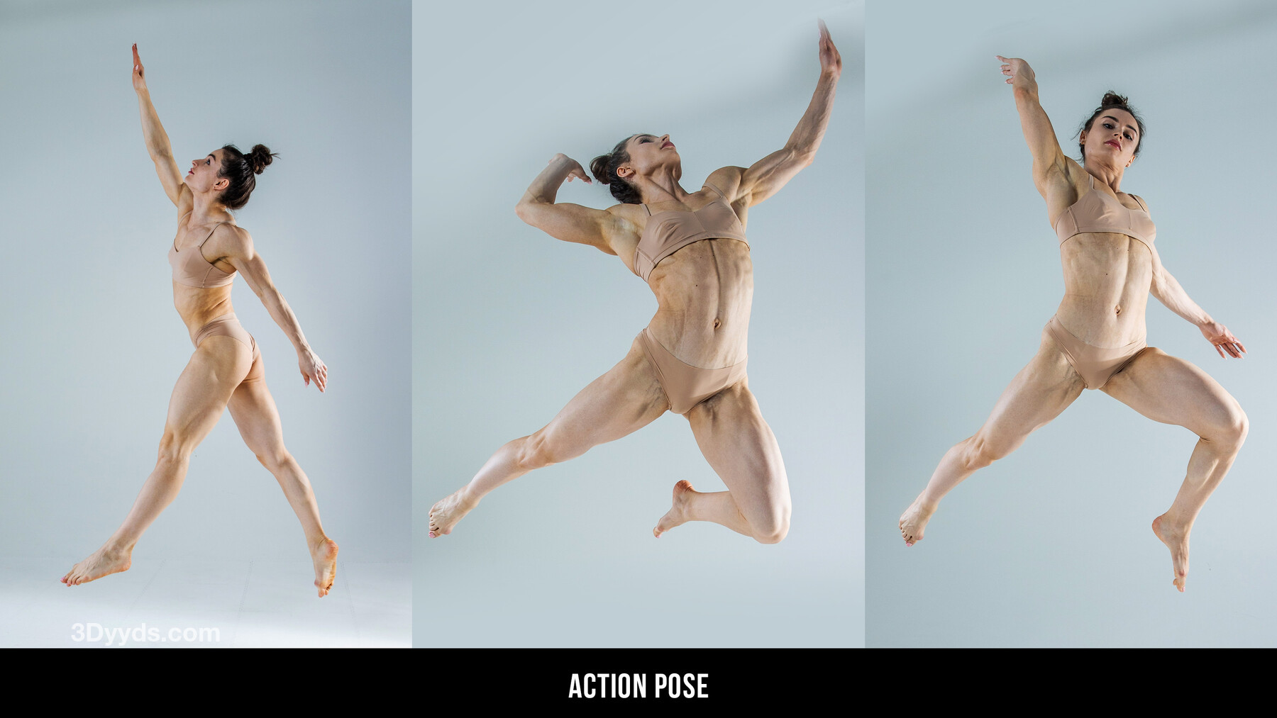 此包包含 650 多张高分辨率动作参考图片。包中包括 T 姿势和 A 姿势,以及全套动态参考图片,这些图片将成为研究解剖学、手势绘画、角色设计等的绝佳工具。姿势包括跳跃、奔跑、打斗和躺下。查看预览!