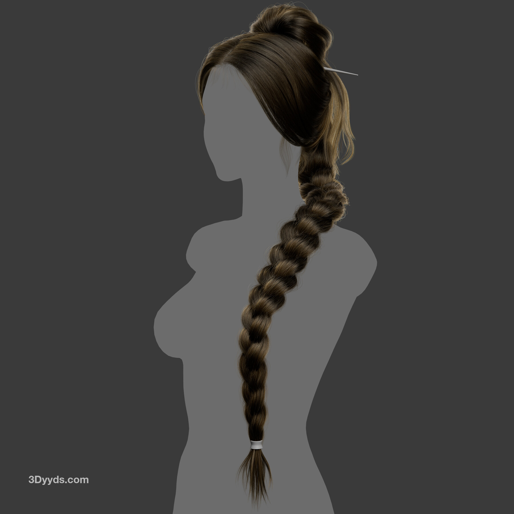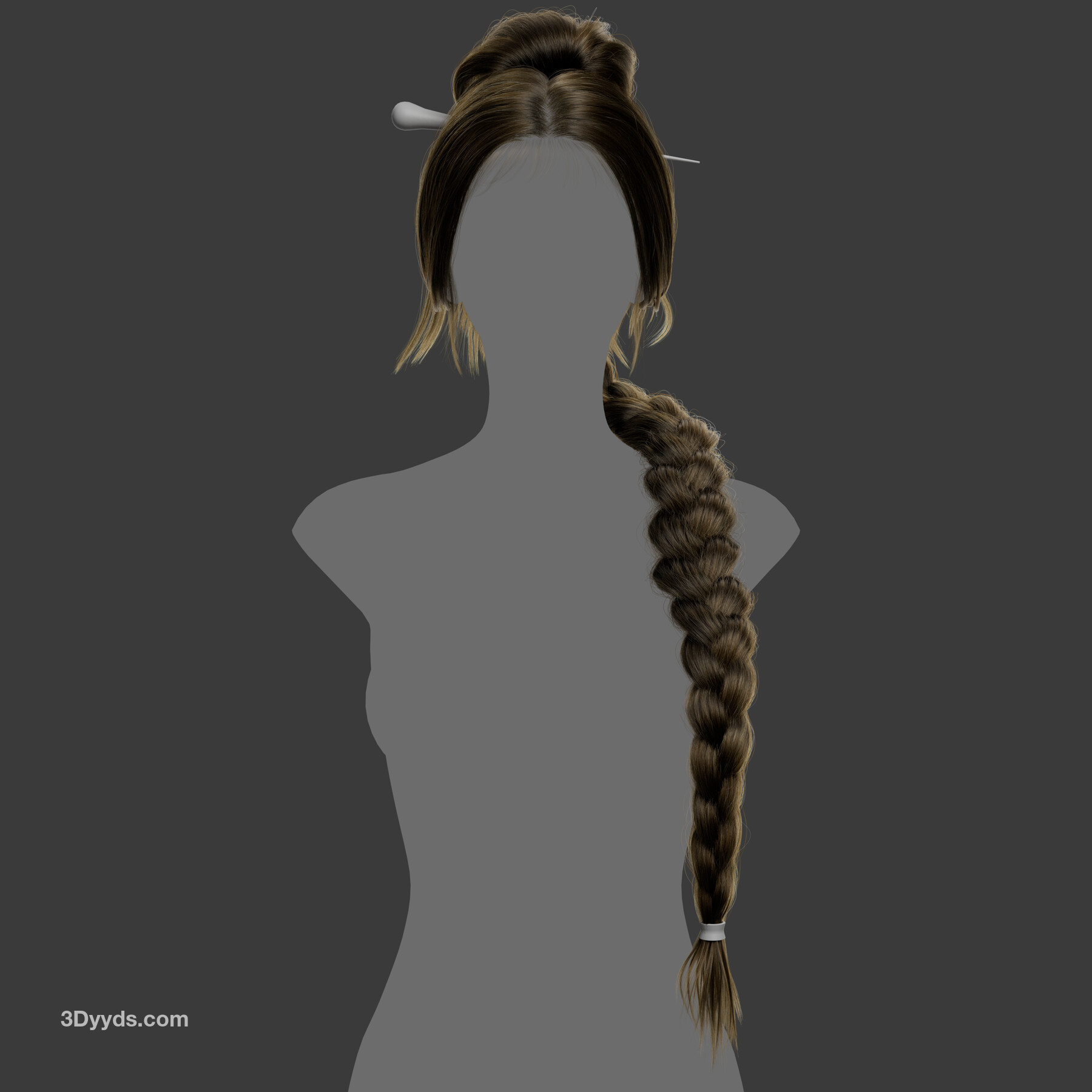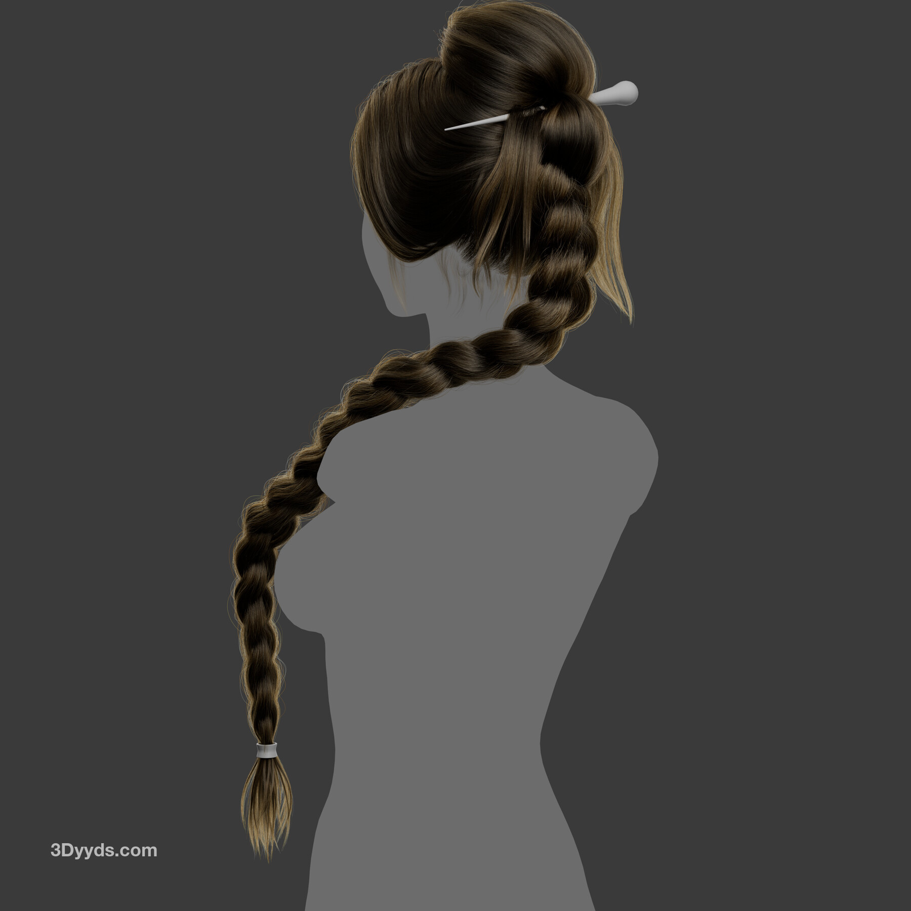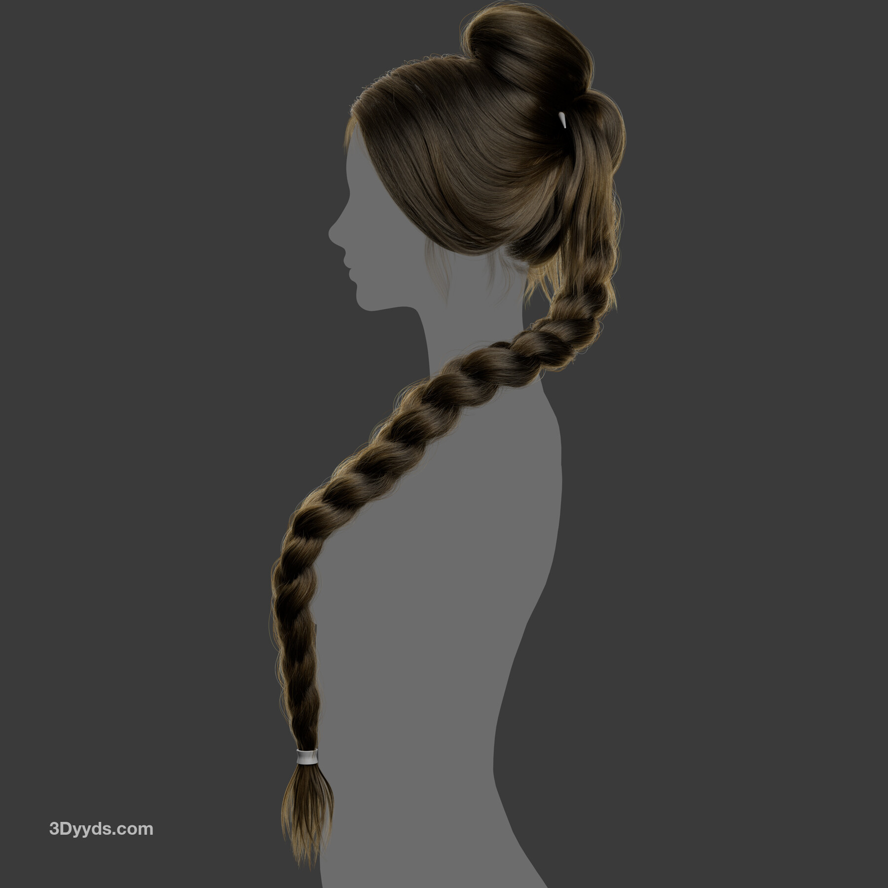 Xgen毛发01女生女士马尾麻花辫头发模型