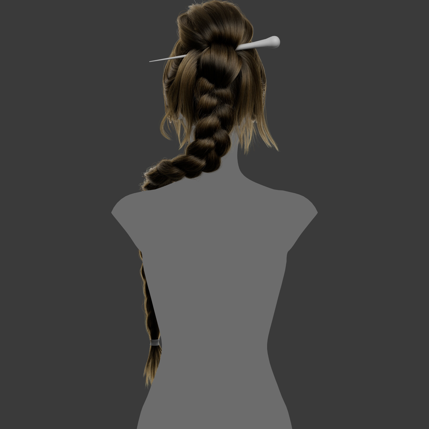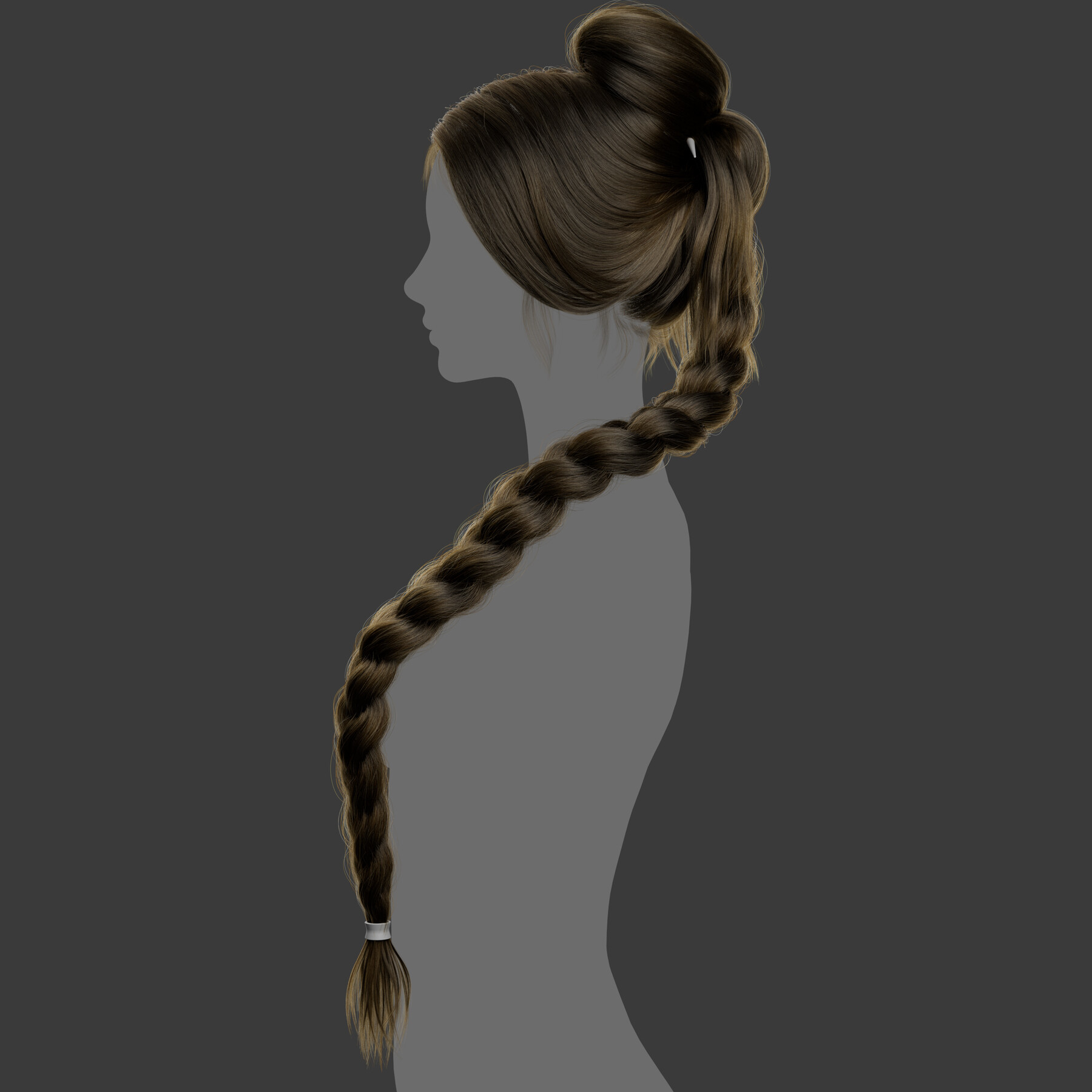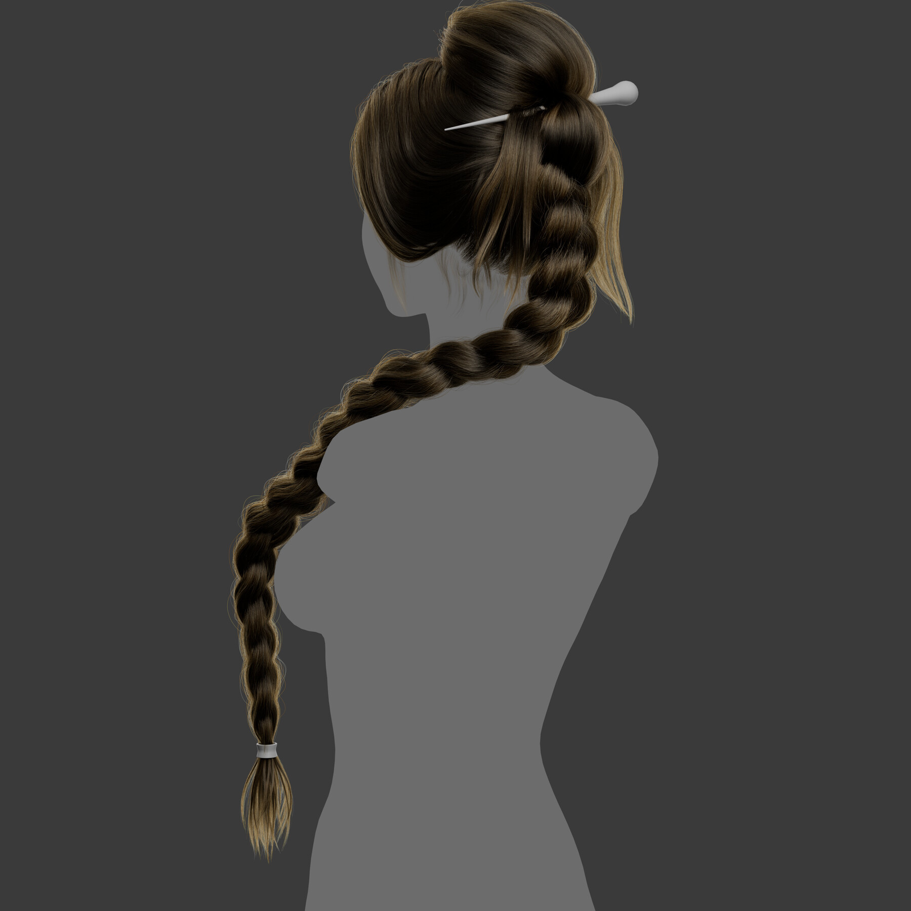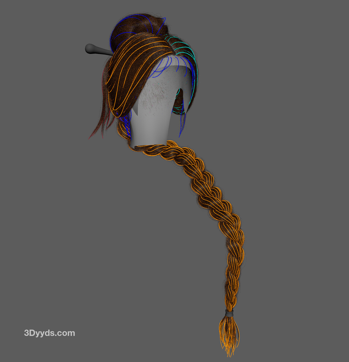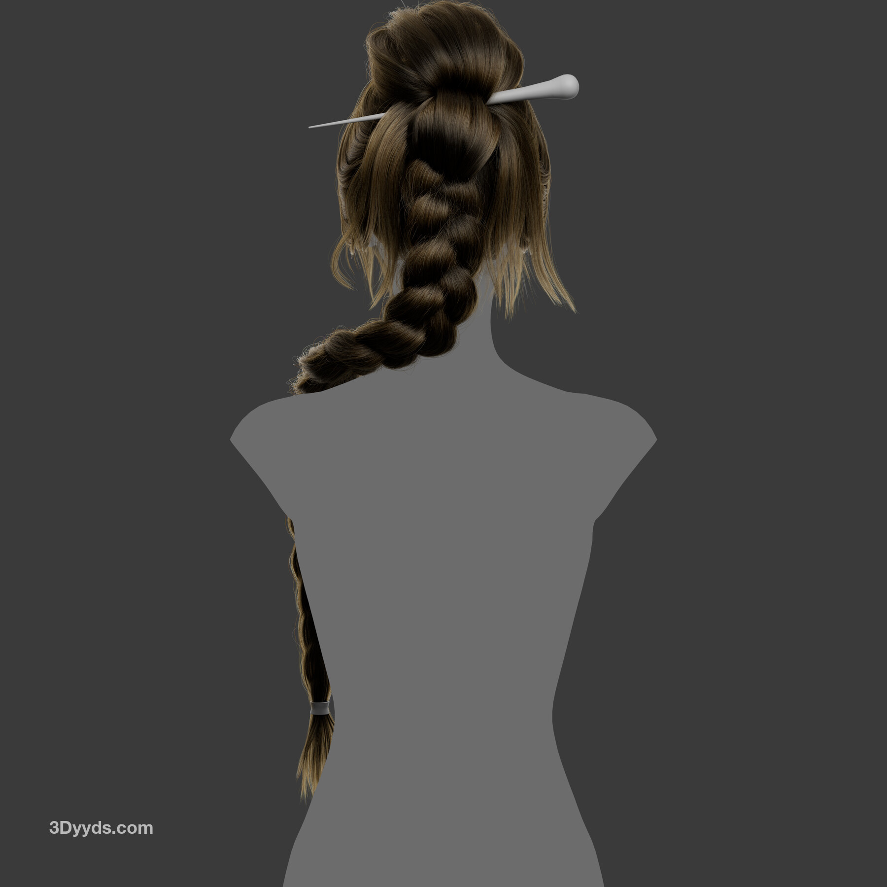 Xgen毛发01女生女士马尾麻花辫头发模型
